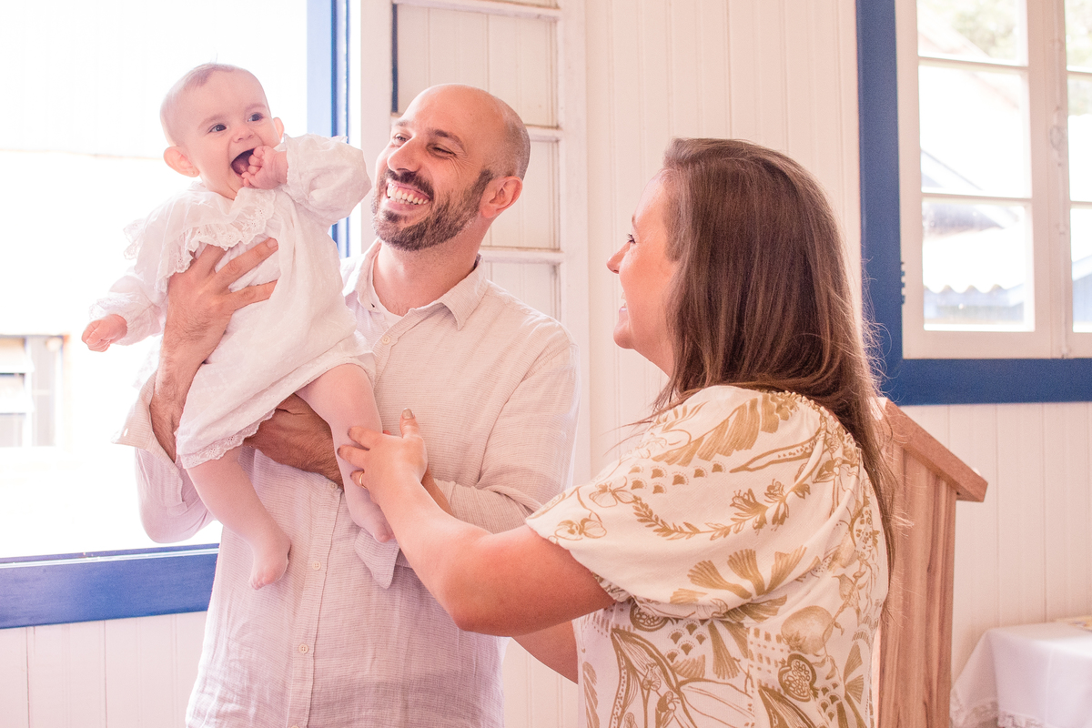 Conheci a Paula e o Cassiano, pais da Teresa, há muito tempo. Lá no começo da minha carreira, foram uns dos primeiros clientes que eu tive. Após quase seis anos aqui estamos, nos encontrando e comemorando o batizado da pequena ao lado da priminha, a Maria. Foi repleto de sentimentos, emocionante e singelo - singelo pela simplicidade, pela sintonia, pela tranquilidade, pelos tons brancos e por todos ali emanarem o que há de melhor.