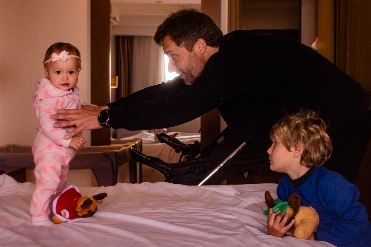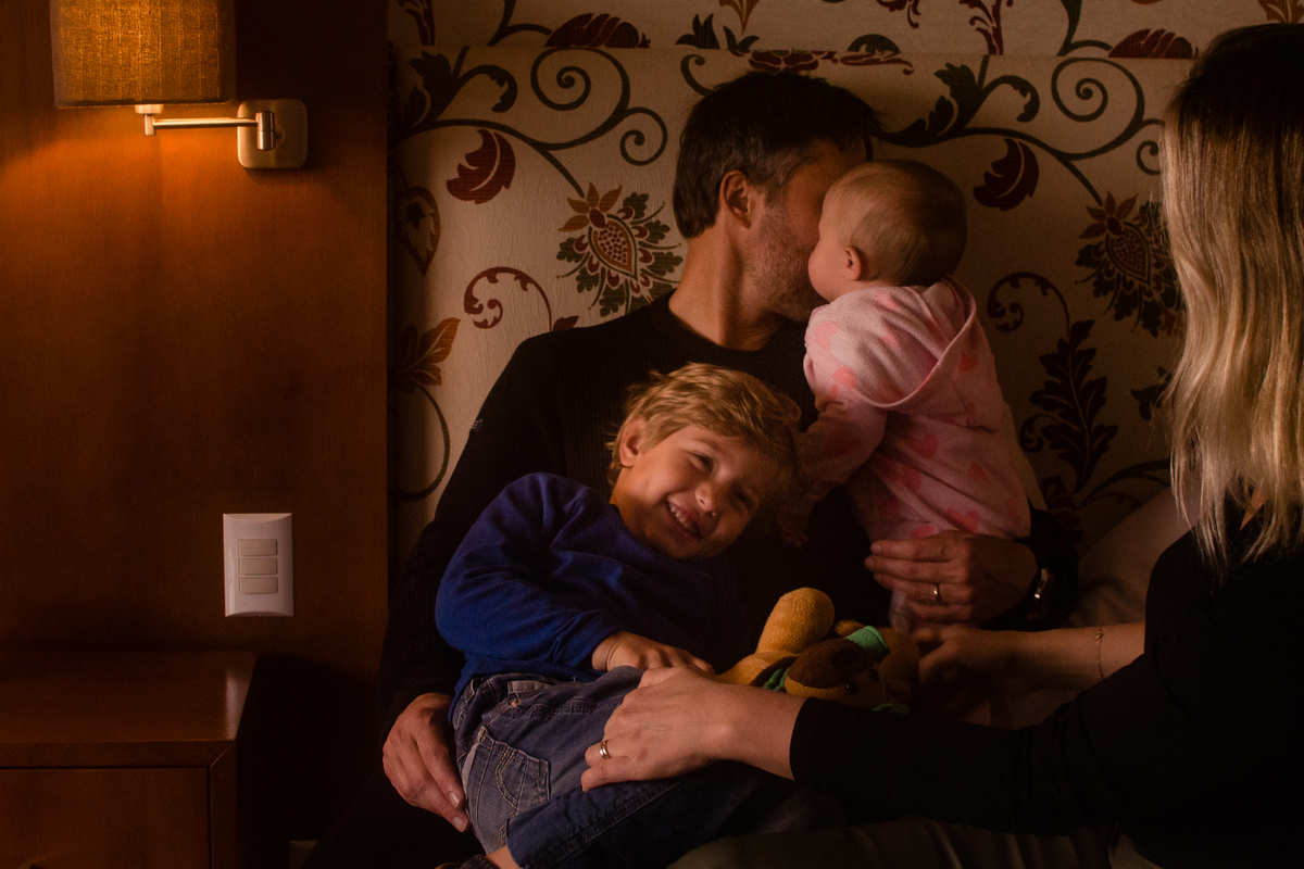 Falando com a Elisa, o nosso princípio era um ensaio externo, curtindo alguns pontos turísticos da cidade, usando e abusando do pôr do sol, tendo bastante espaço pras crianças correrem e aproveitarem ao máximo esse momento. Não rolou num dia. Não rolou no outro. Nossa última opção era nos rendermos aos planos de São Pedro, que trouxe muito frio e chuva para aquele dia.