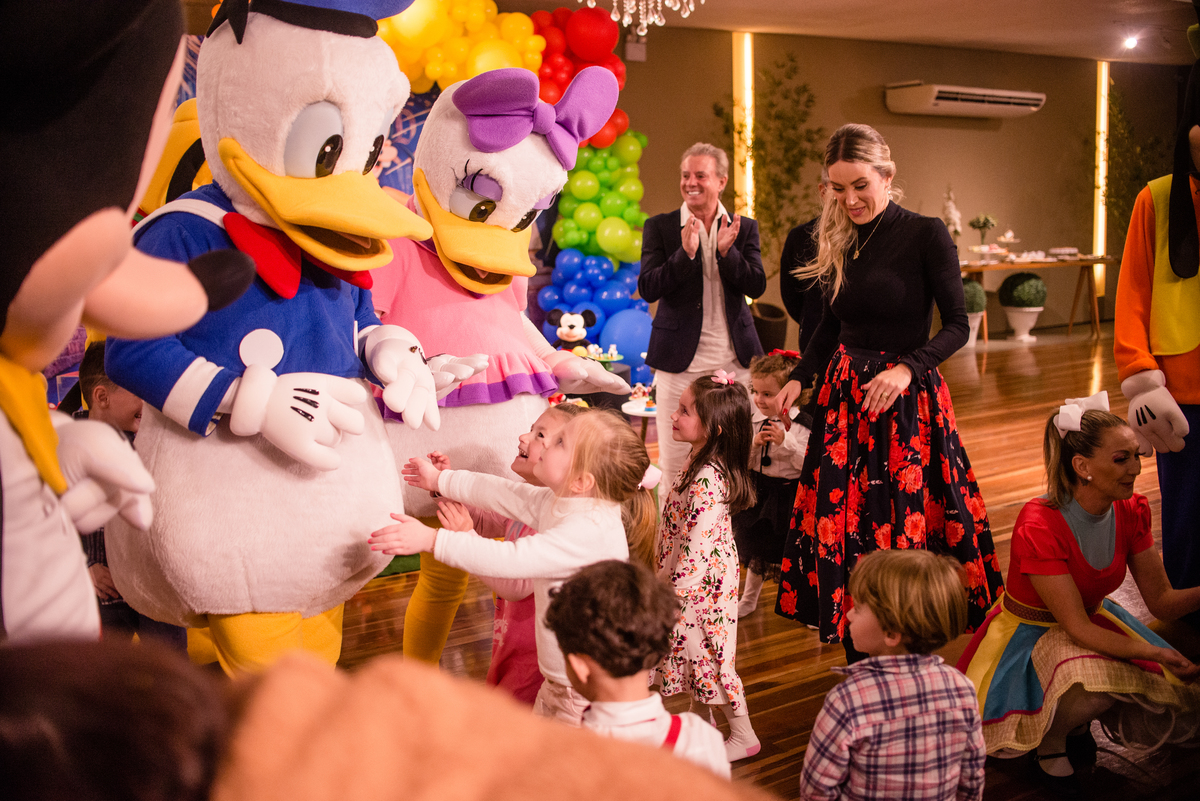 Brincamos muito, nos divertimos demais, a alegria foi contagiante e os pequenos mal esperavam pelo o que estava por vir - o Mickey surgiu com toda a sua turma para fazer parte da festa. O rostinho deles é impagável, vejam nas fotos como esse e todos os demais momentos foram muito especiais.