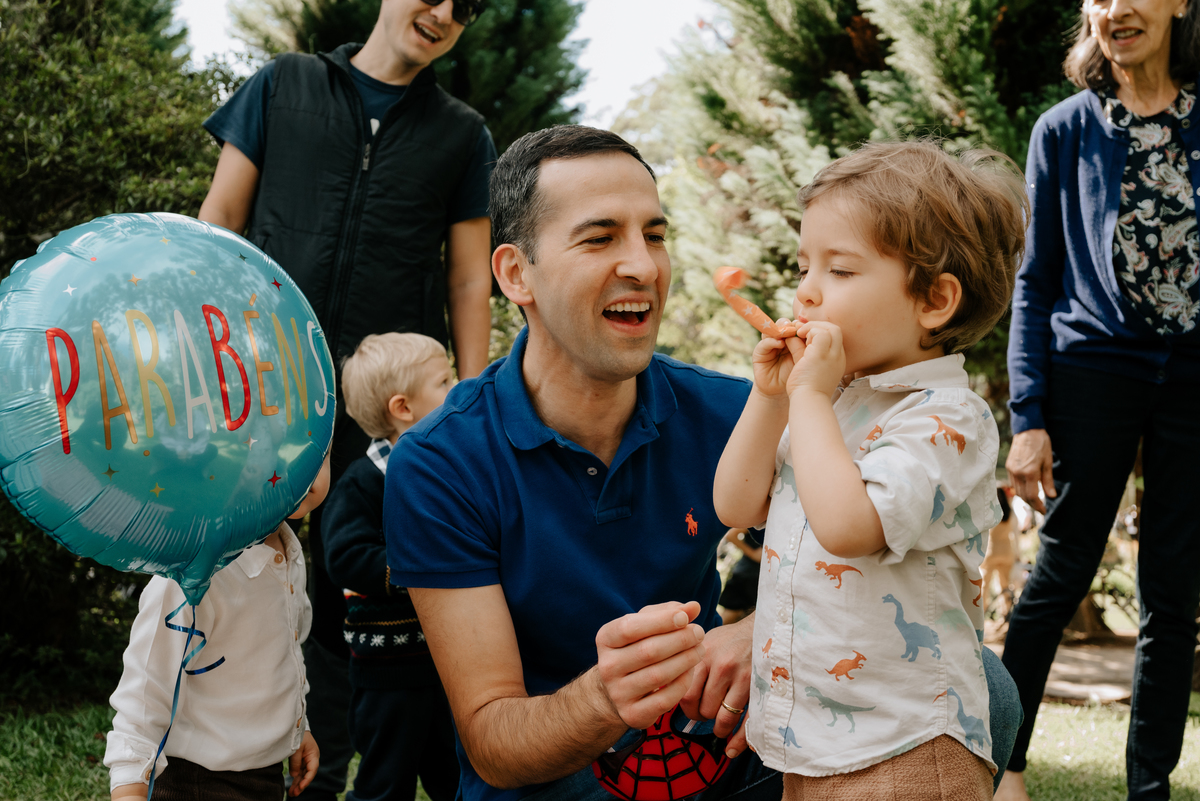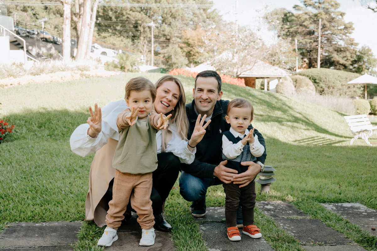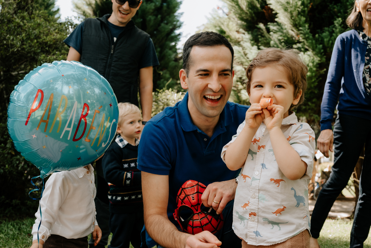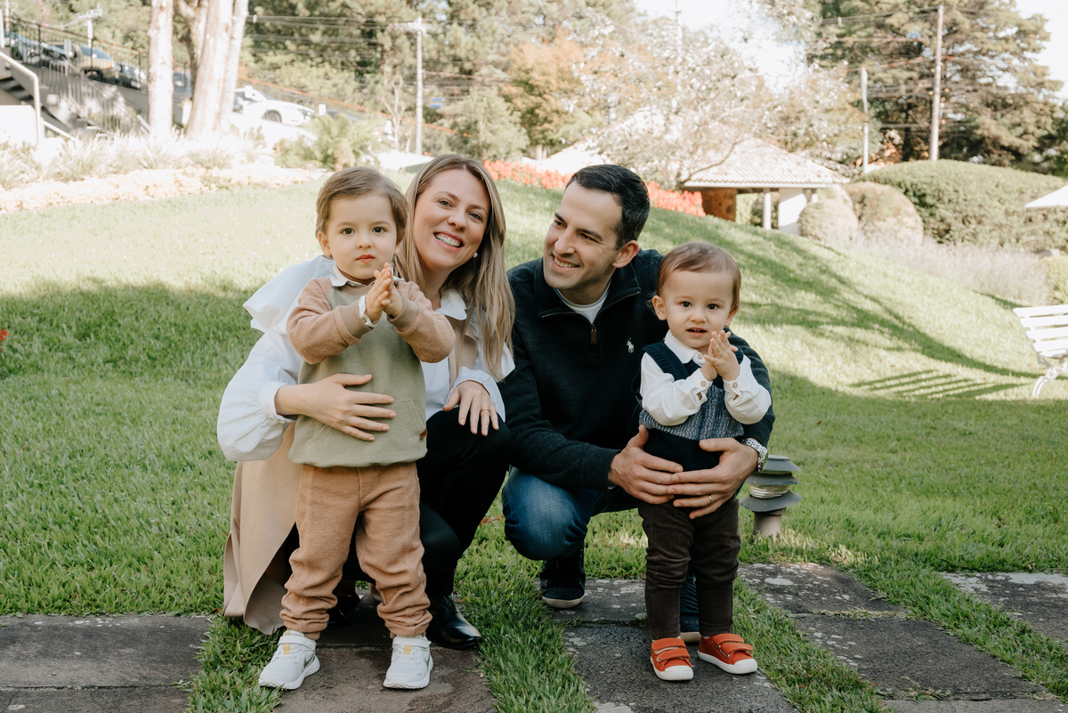 Eles vieram de Santa Catarina pra comemorar o terceiro aniversário do Luís Eduardo, irmão do João e filho da Ariane e do Eduardo.