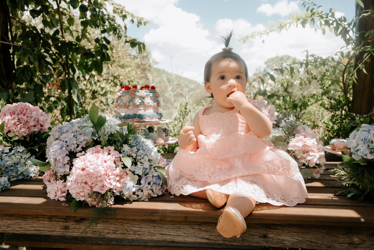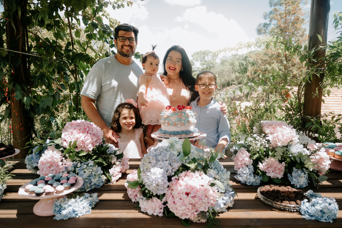 O primeiro aninho da Olívia, caçula do Bruno e da Nalanda, irmã mais nova do Heitor e da Mariana, foi LINDO. Delicado e lindo.