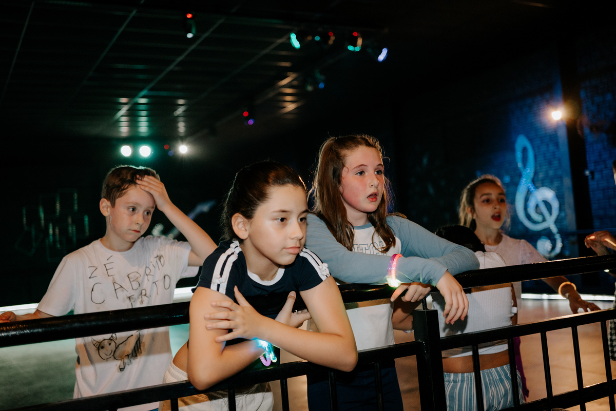 - Olhares de orgulho dos pais vendo os filhos superando o medo