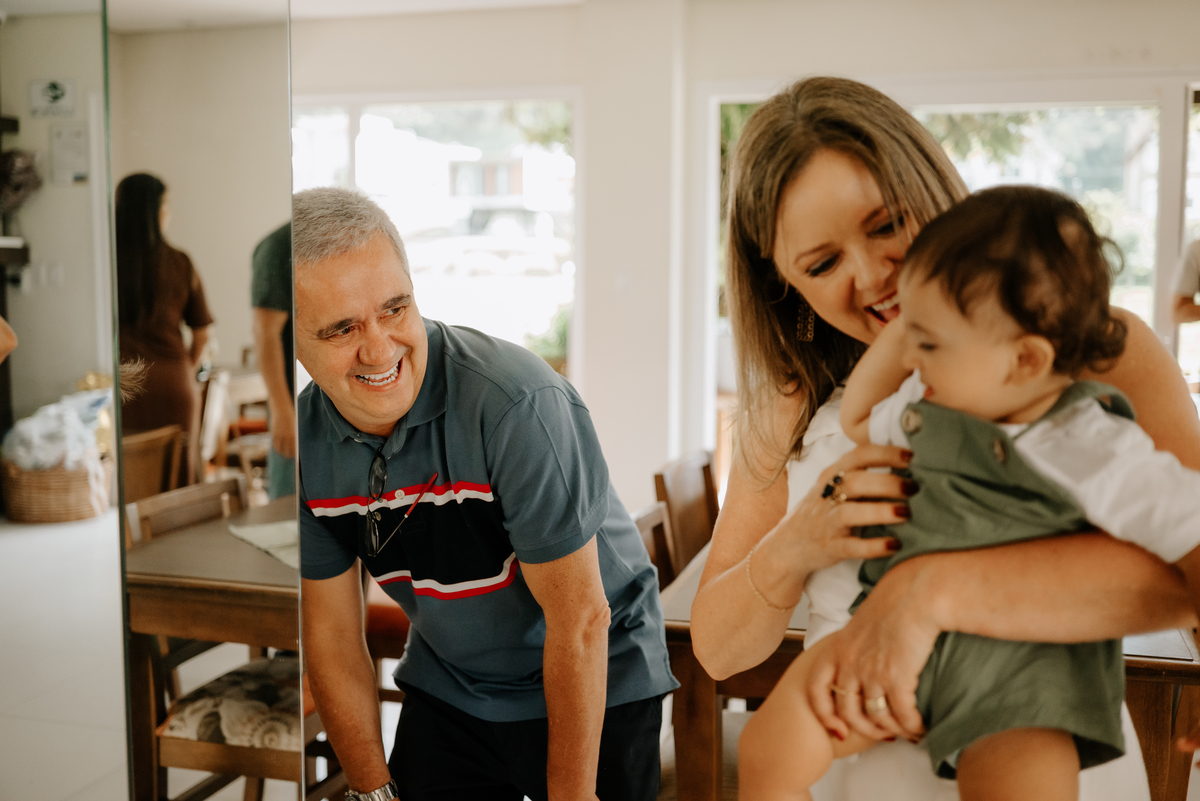 O smash the cake é um momento íntimo, silencioso, focado apenas no bebê e na família.