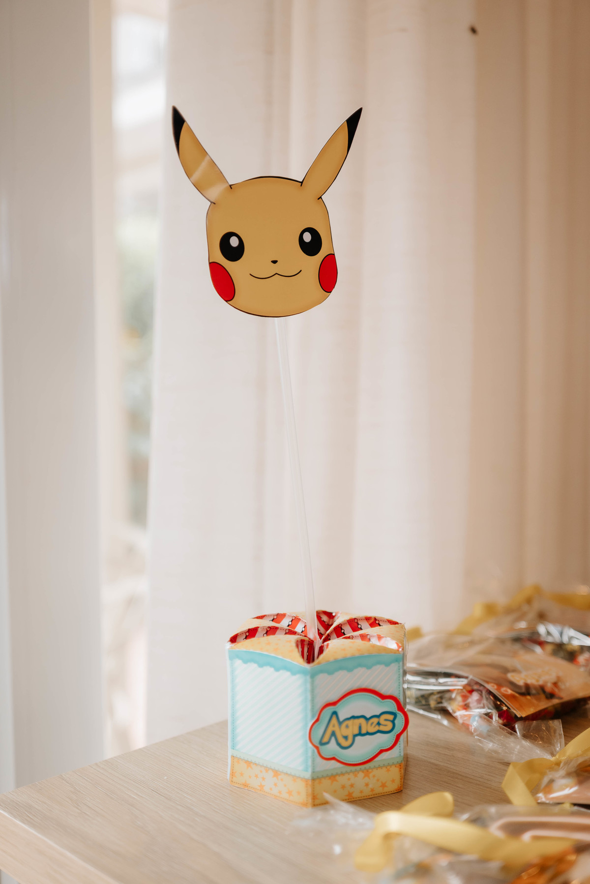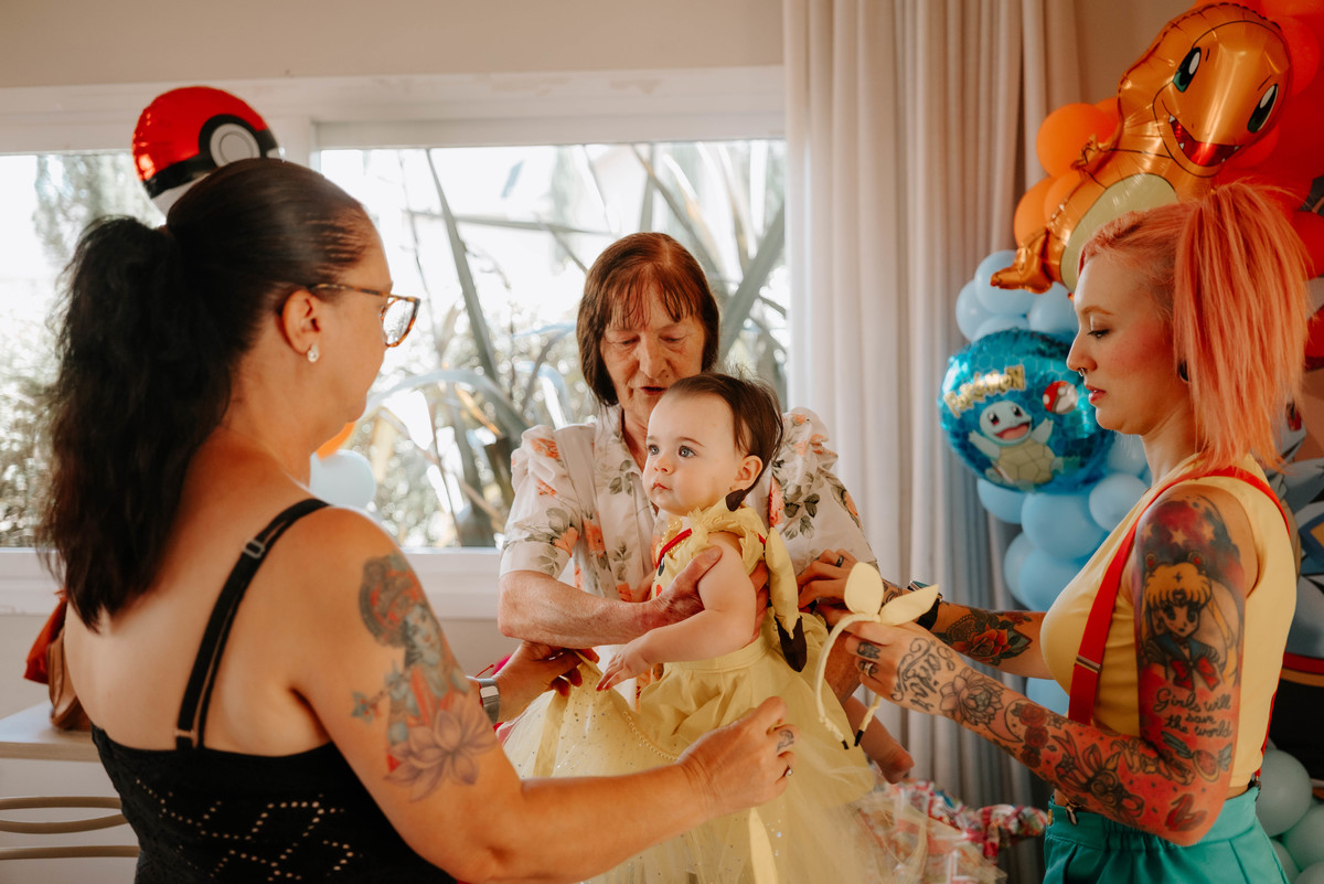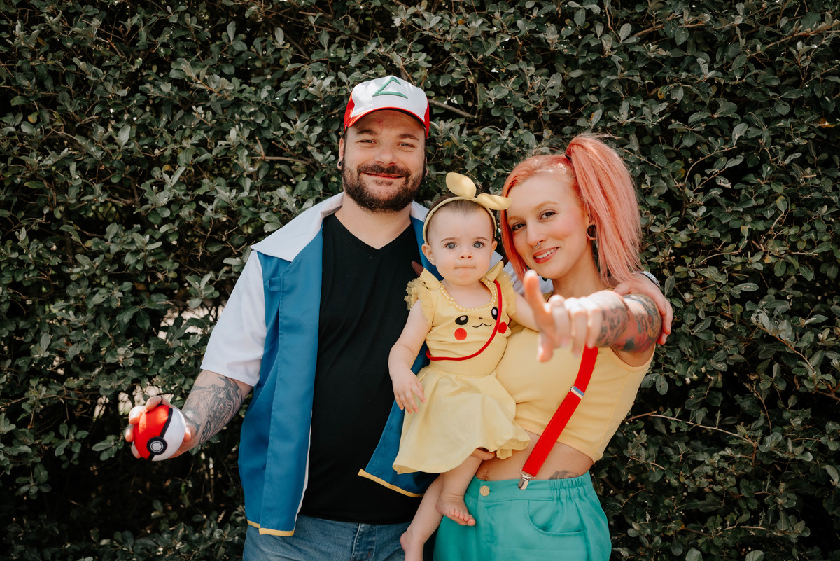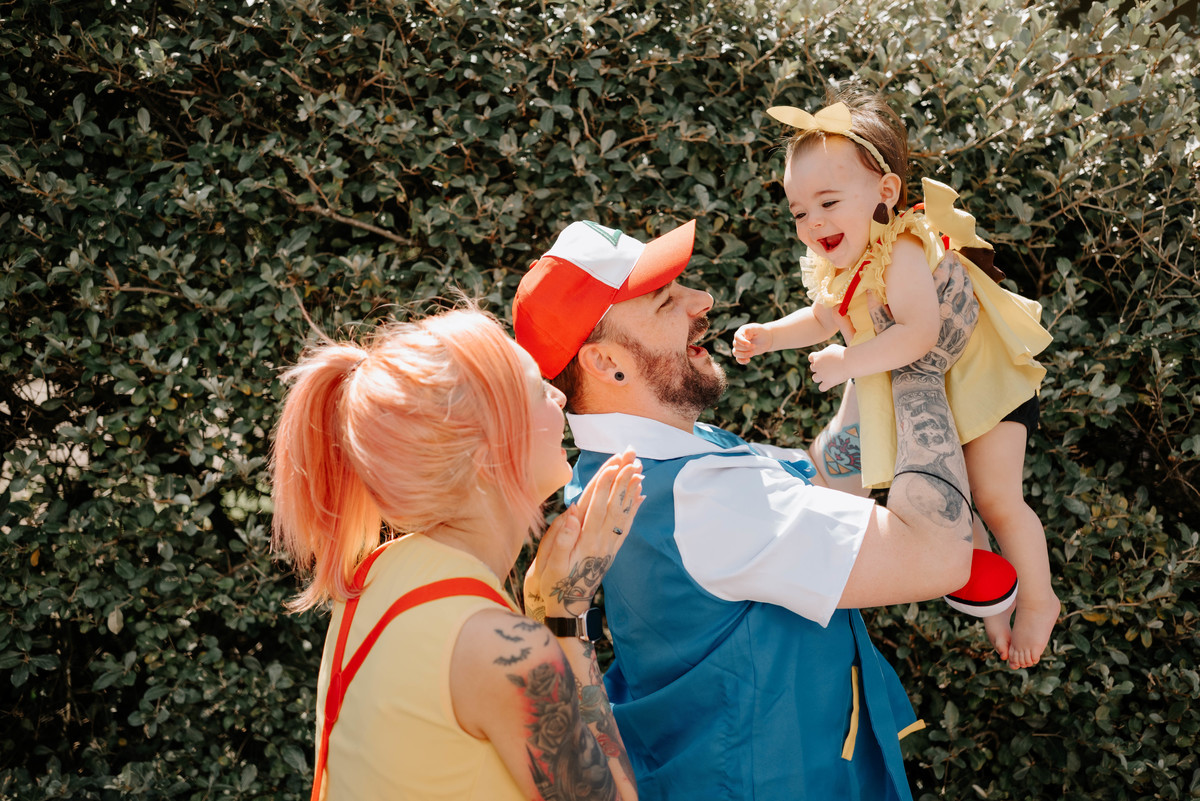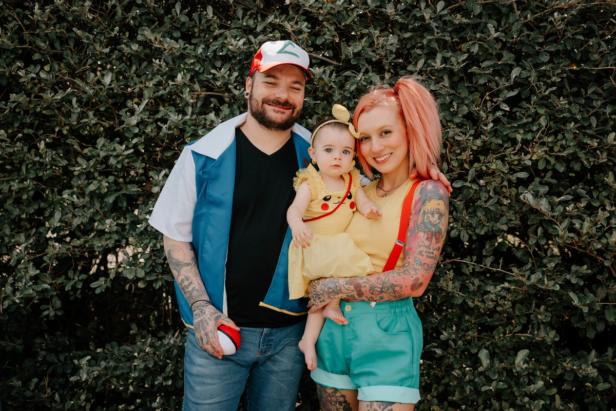 Os pais da Agnes são apaixonados pelo universo geek e fazem cosplays incríveis. Então a temática escolhida para celebrar o primeiro aninho dela foi Pokémon — cheia de cores, personagens e muitos detalhes que refletiam perfeitamente a personalidade da família.