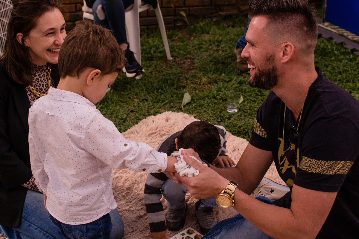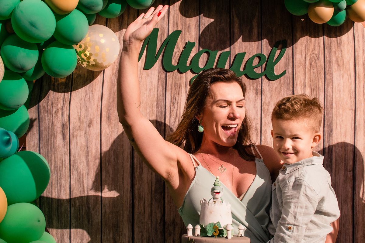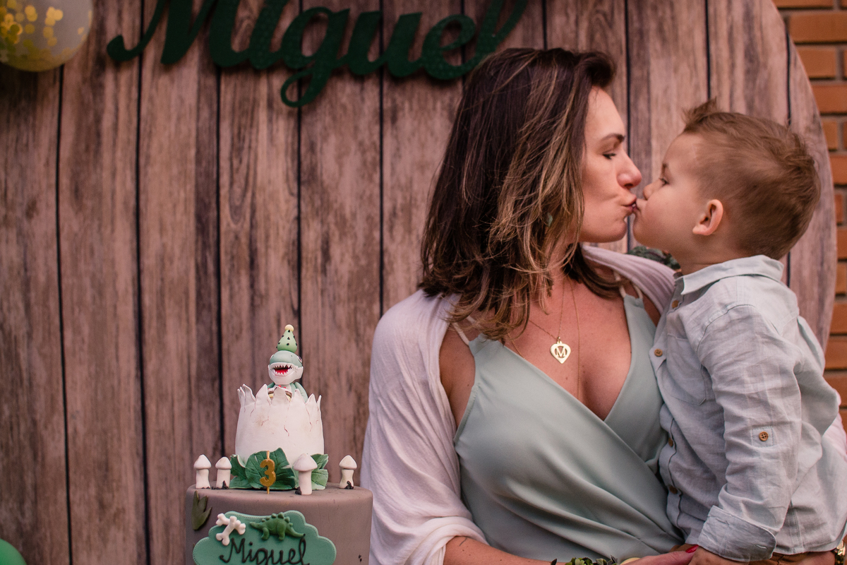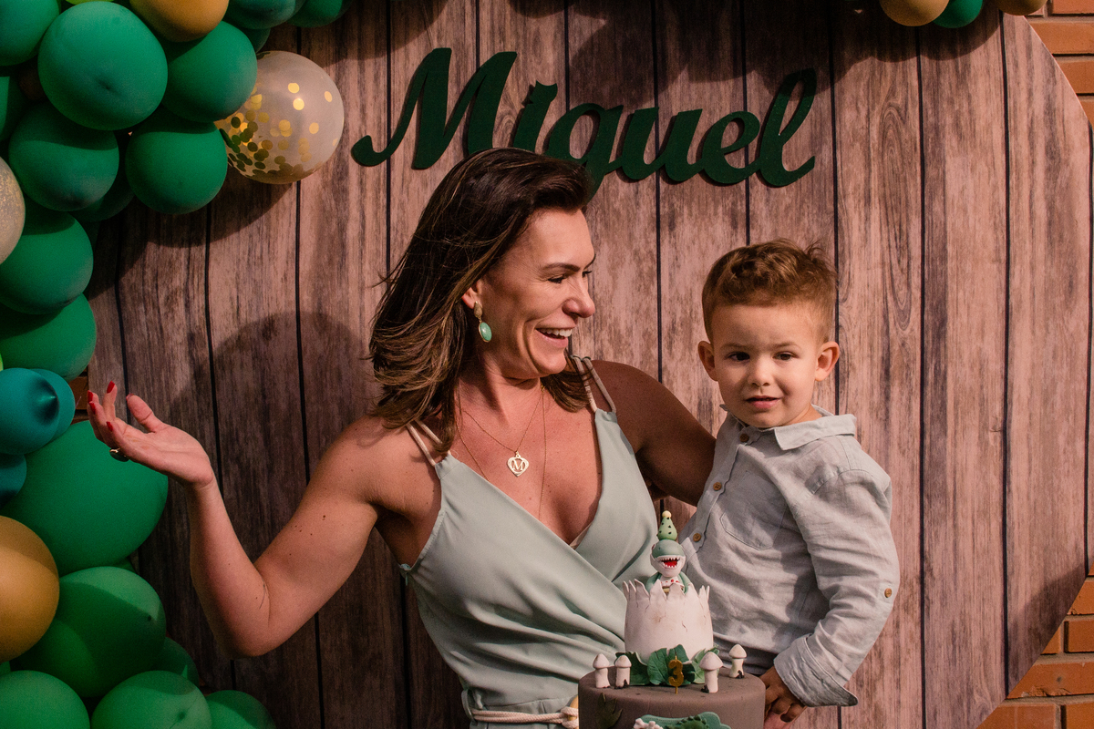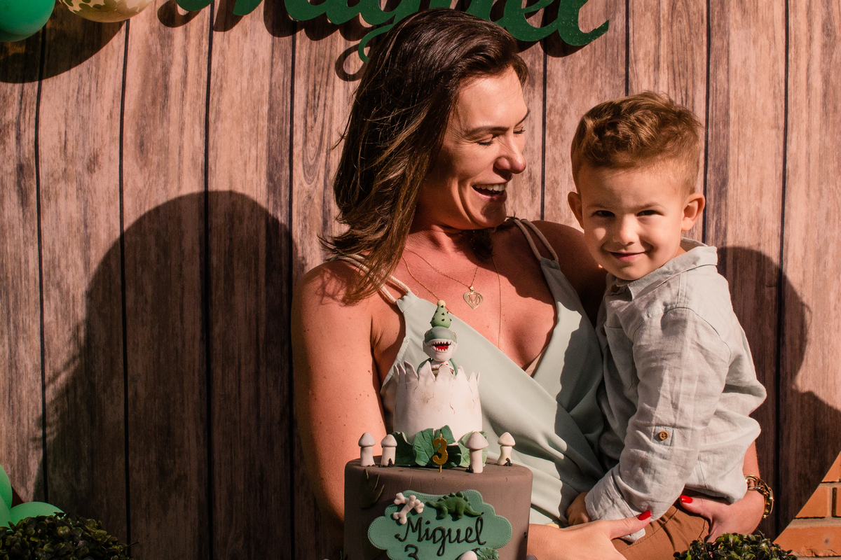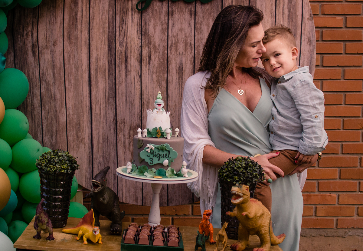 Após aquele período nos vimos apenas uma vez, quase 4 anos atrás, quando ela estava grávida. A partir dali não, nenhum contato, até agora. Fui convidada para fotografar o terceiro aniversário do Miguel - garoto que sorri com o olhar, super corajoso e apaixonado por dinossauros - pasmem, com essa idade ele já sabe o nome de muitos, até mesmo se são carnívoros ou herbívoros.