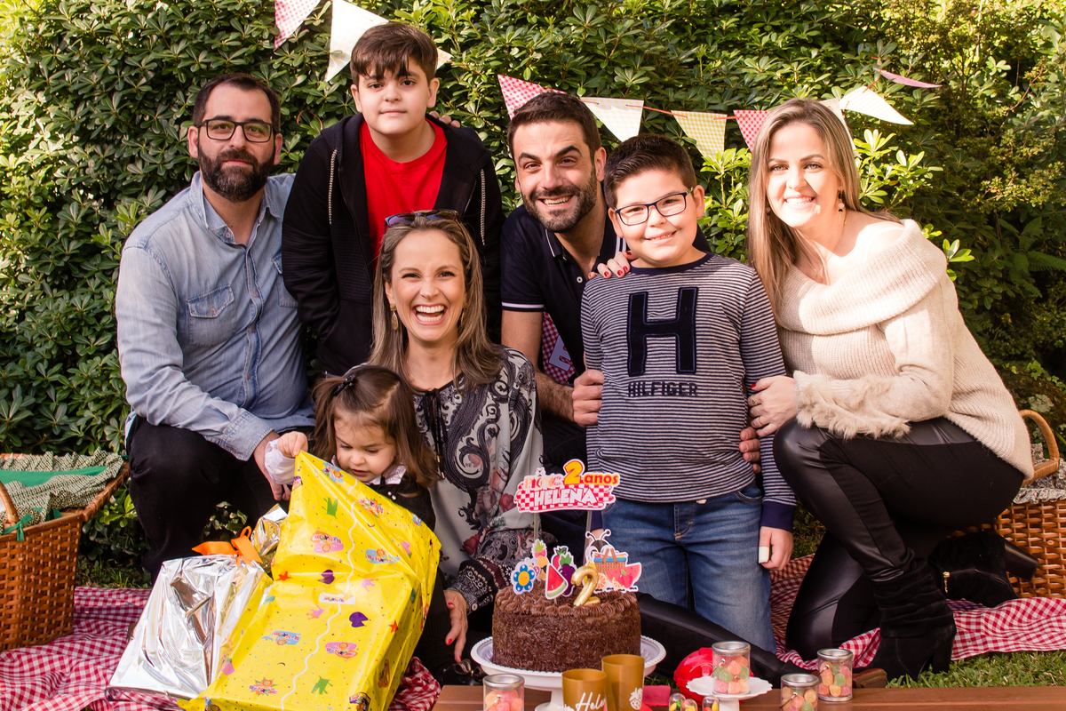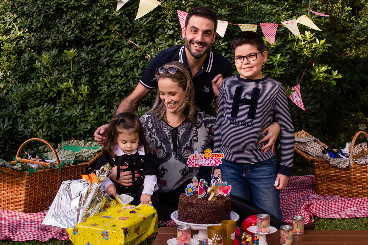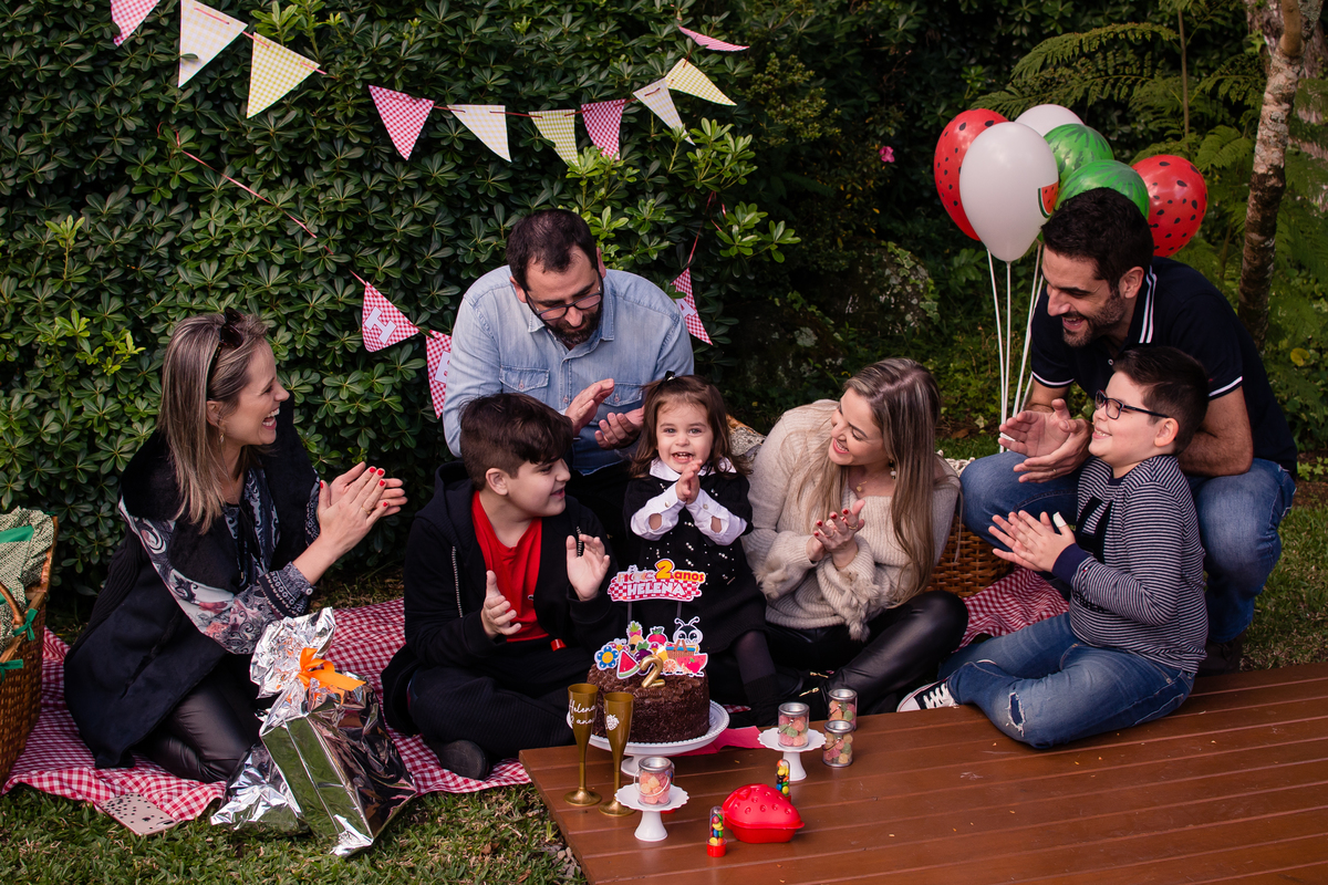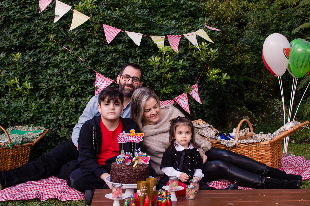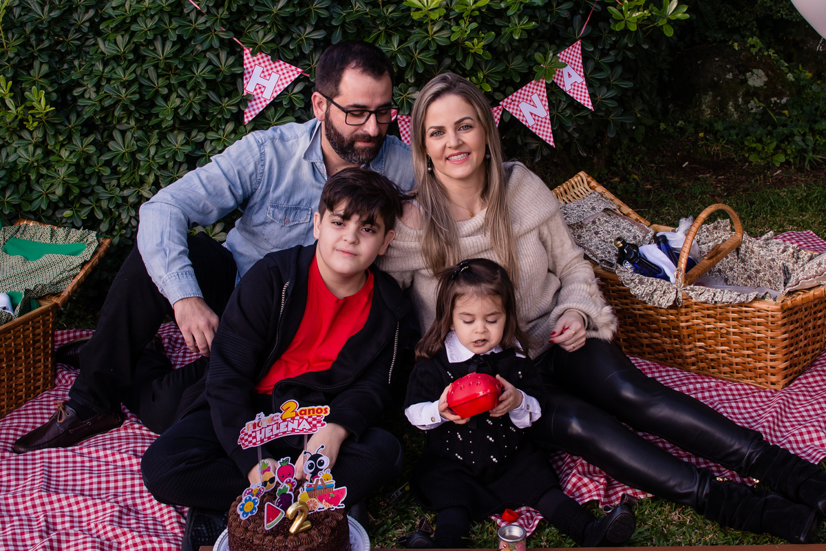 A família Dalcin, de Santa Maria/RS, escolheu Gramado como destino para a comemoração dos 2 aninhos da Helena. Seus dindos, além do primo Davi, bem como seu irmão Pedro e os pais Jeferson e Fernanda, realizaram um picnic no jardim do Hotel Alpestre.
