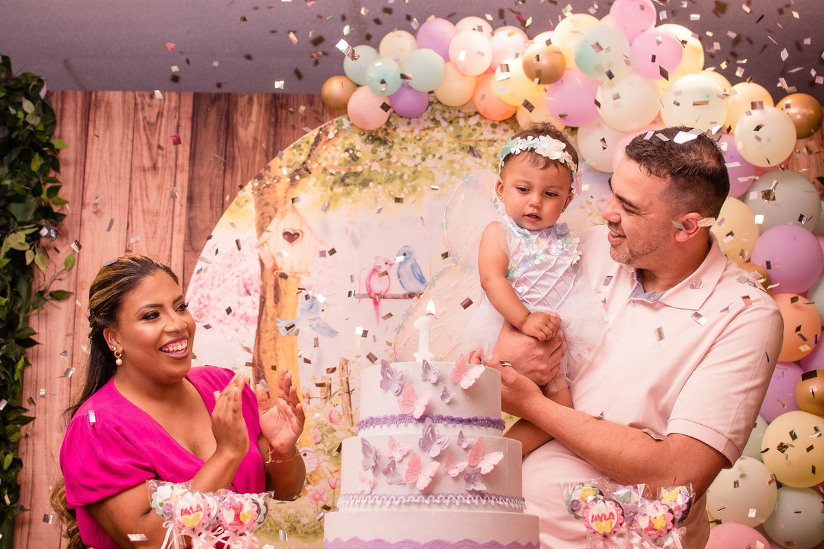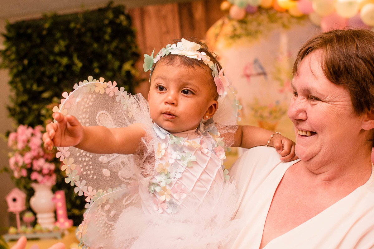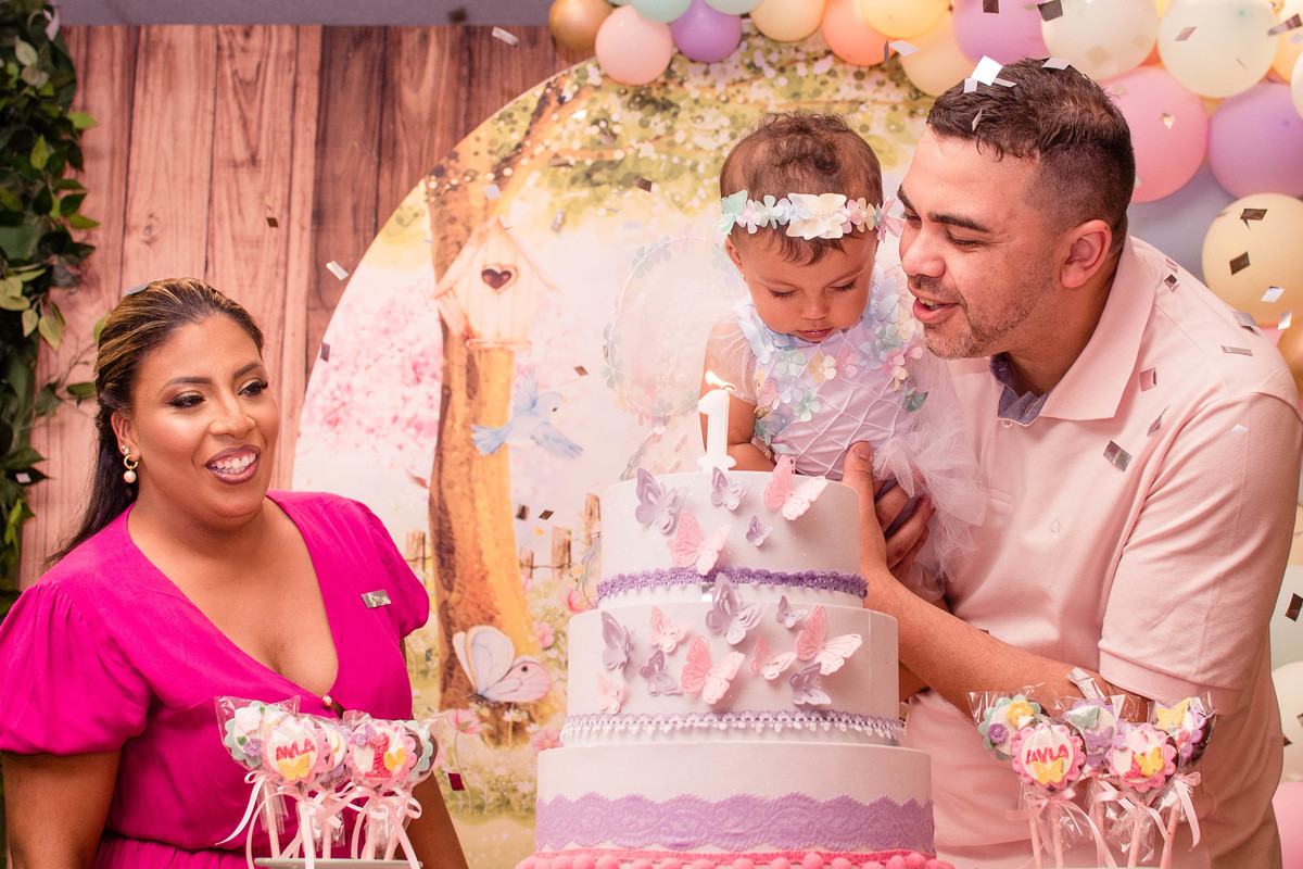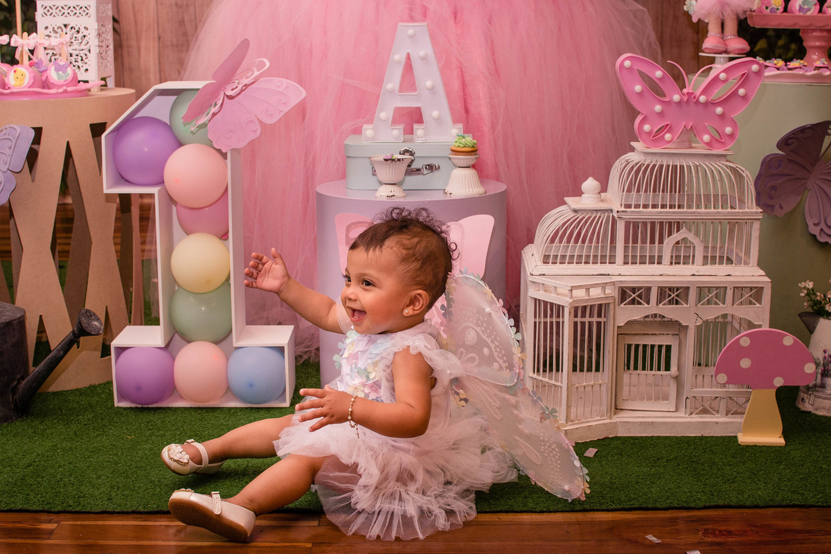 Com o tema borboleta, a borboletinha mais linda aproveitou e muito a bagunça em torno dela. Afinal, que criança não gosta de bagunça, né?