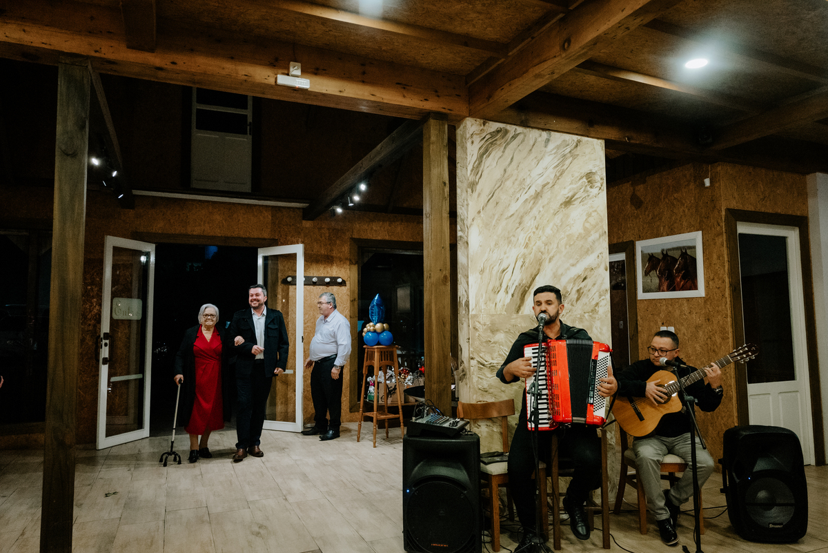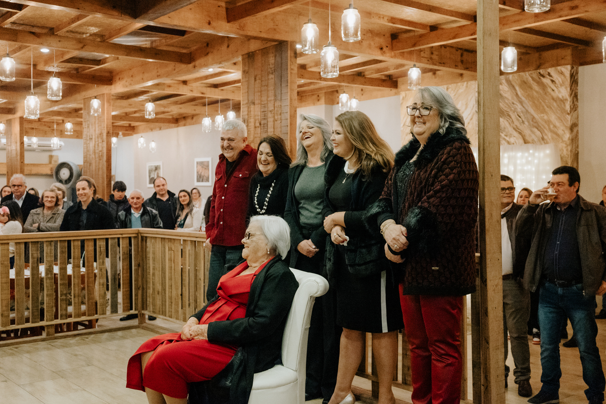 Fizemos o ensaio no dia do aniversário dela, dia 29 de junho. Já no dia 1º de julho foi a grande festa, tão planejada, cada detalhe pensado com muito amor e carinho pelos seus filhos, netos e bisnetos.