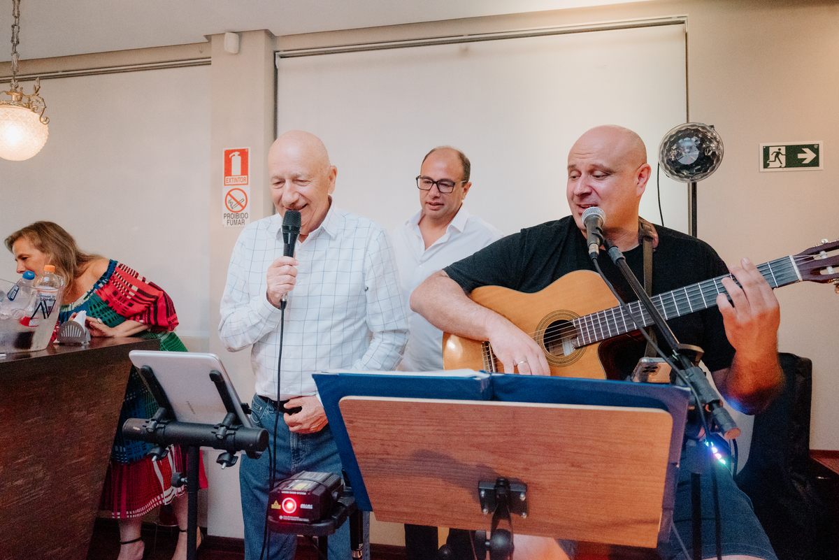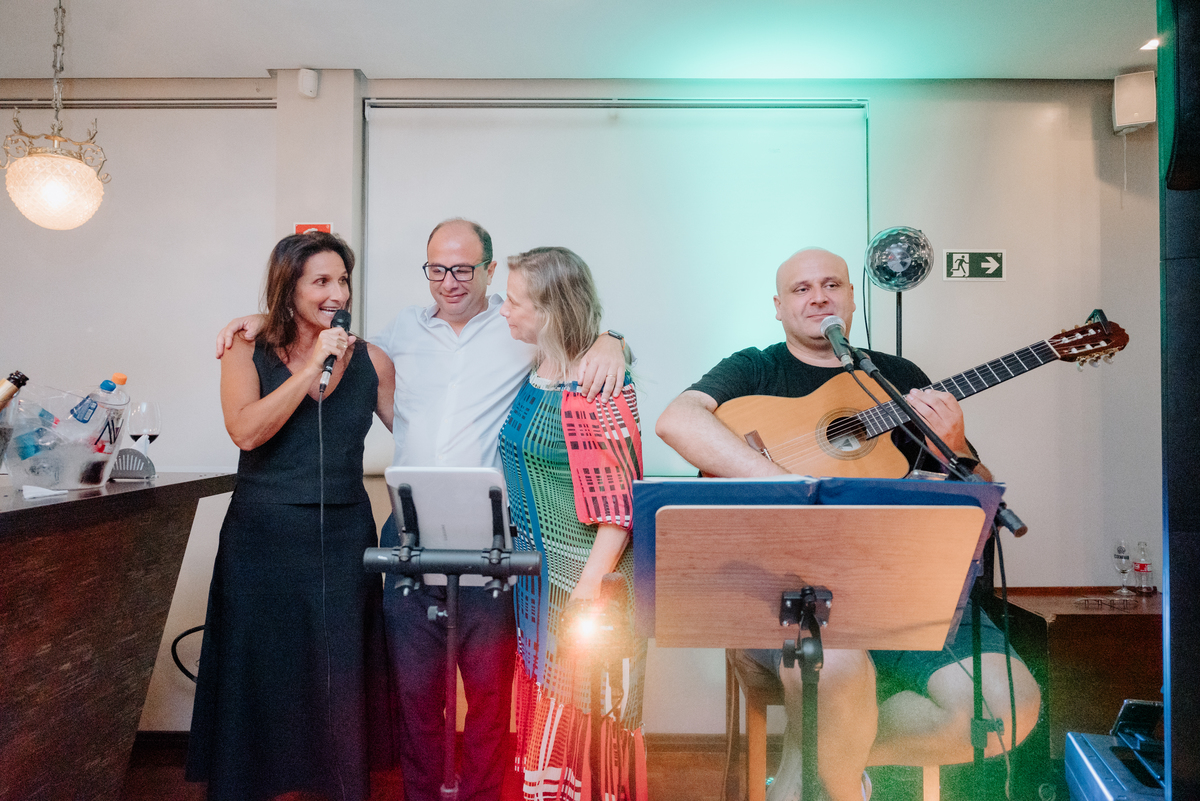 Após um cardápio delicioso, a festa seguia. Ele disse que ama festas, que adora a animação, e dessa vez comemoraria da forma como mais gosta: com amigos e um karaokê. Assim foi, após o jantar eles escolhiam suas músicas preferidas e cantavam pra alegrar ainda mais a noite.