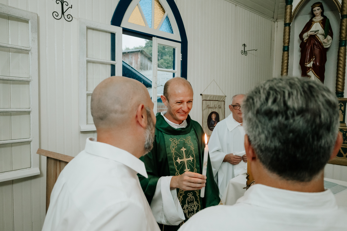 Como fotógrafa nascida e criada na Serra Gaúcha, tenho um amor profundo e uma conexão genuína com essa região, o que me permite oferecer uma visão única e personalizada em cada ensaio ou evento que registro. A Igreja São Valentin, com seu charme histórico e simplicidade acolhedora, se tornou o cenário ideal para o batizado de Bento, refletindo a serenidade e a espiritualidade do momento.