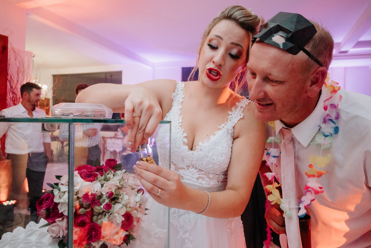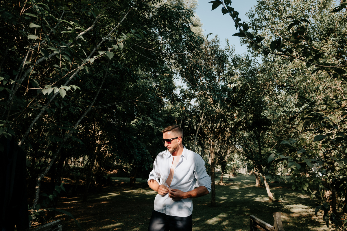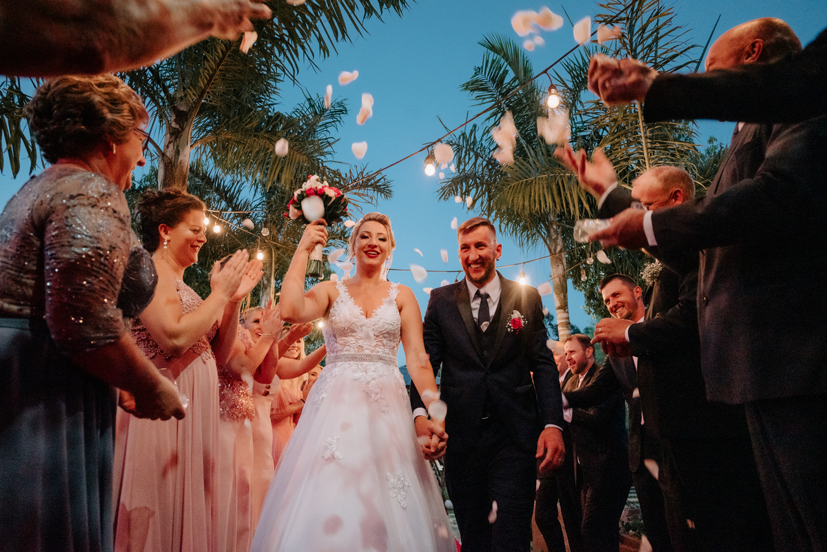 Chegou o dia do casamento. Estava quente, sol brilhando, céu azul e poucas nuvens. Ao chegar por lá o termômetro marcava 35ºC, sensação ainda mais alta. O calor do afeto fazia tudo ainda ser mais especial.