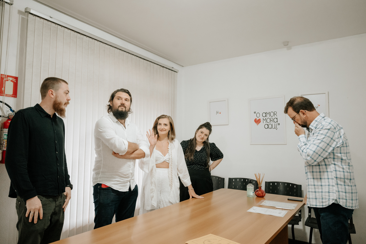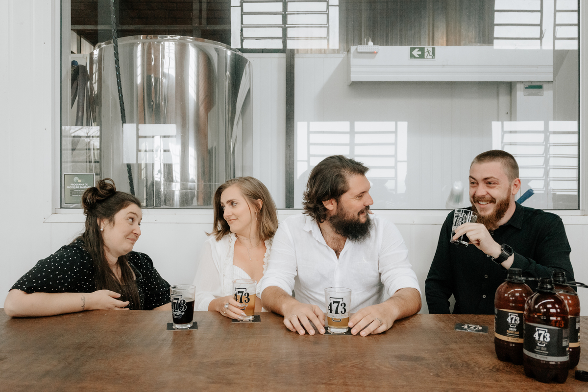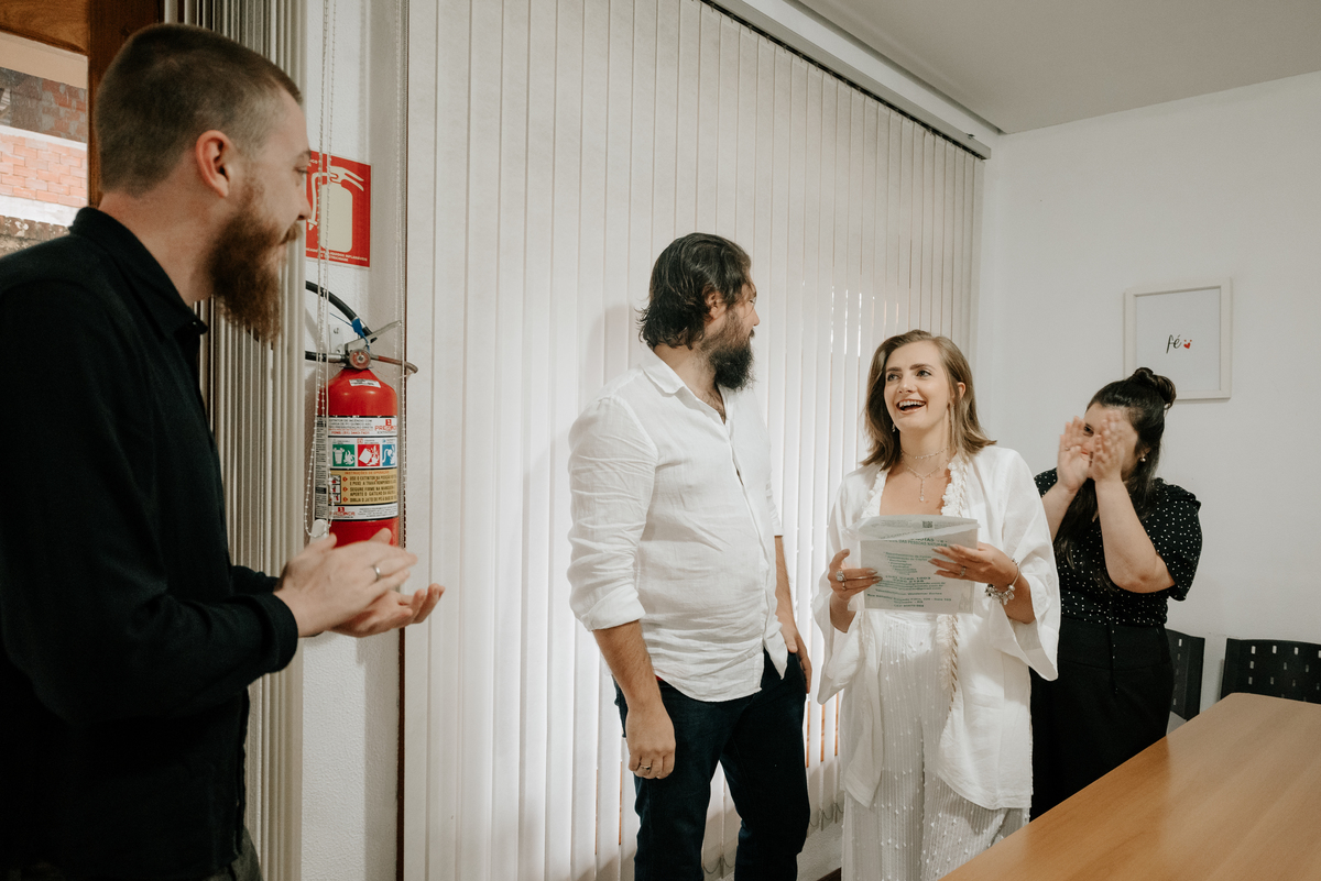 Começamos pelo cartório, lá a família toda estava reunida, emocionados e com sorrisos de orelha à orelha. Partimos para a casa deles, que fica junto à cervejaria onde são sócios, lá provei a melhor cerveja que já tomei, direto do tanque e na temperatura ideal (até ganhei algumas de presente e, nossa, que delícia). Depois de uns bons drinks, nos encontramos com a cachorrada do casal - os filhos amados e super receptivos, me senti em casa, já que também possuímos seis cachorros por aqui.