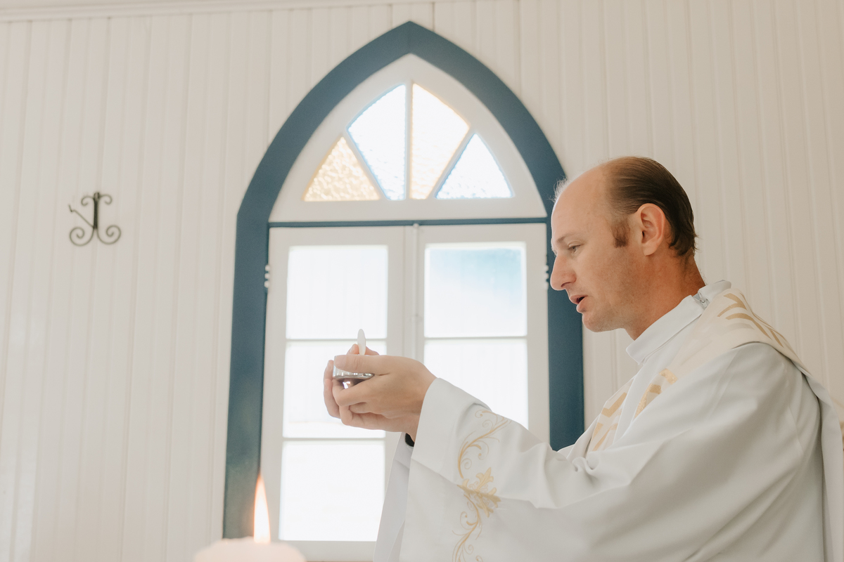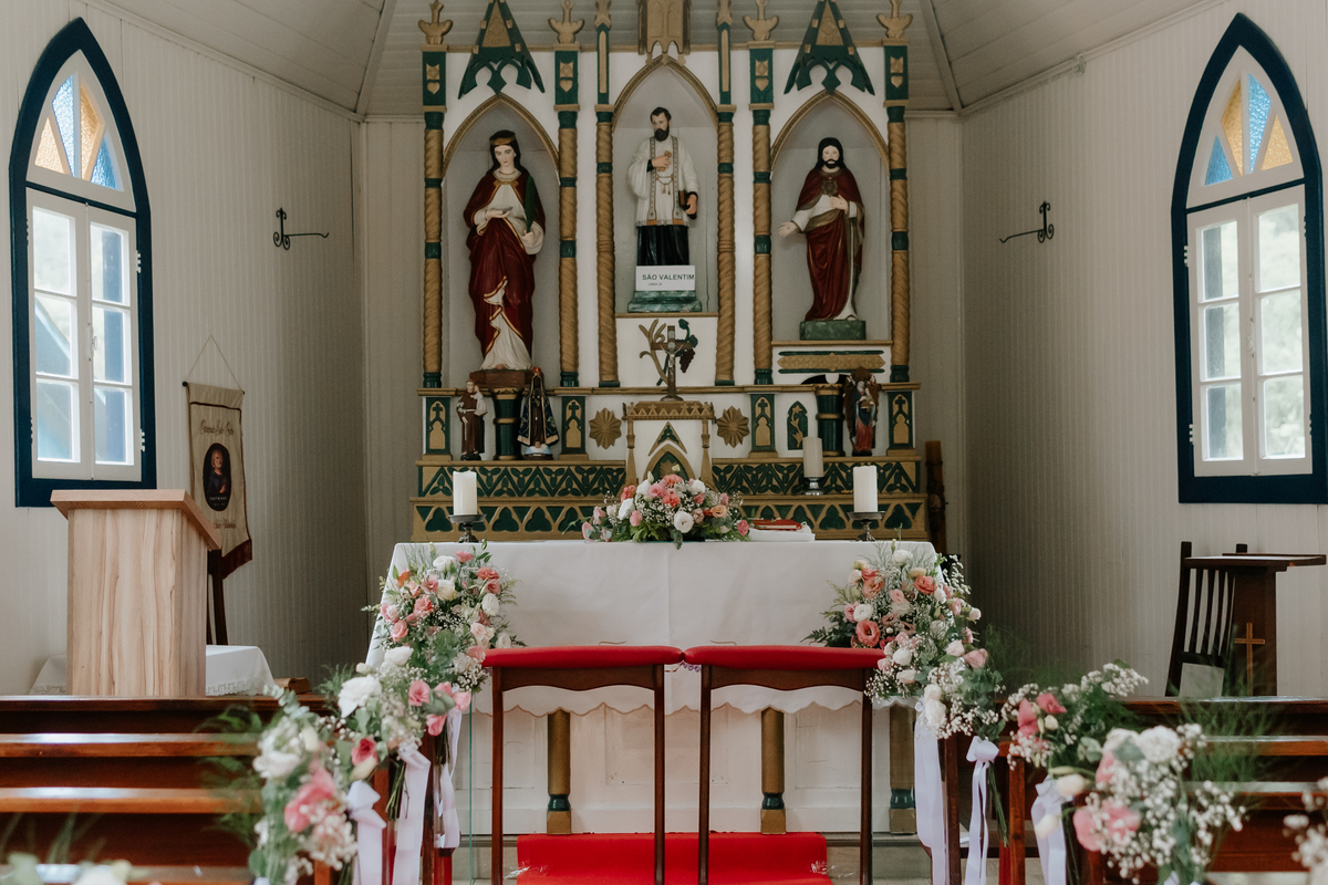A Igreja São Valentin, com sua beleza rústica e aconchegante, foi o cenário perfeito para o casamento dos dois, que optaram por uma cerimônia íntima, rodeados por poucos, mas importantes convidados. A simplicidade e a profundidade dos votos trocados refletiram a essência do relacionamento deles, e o clima acolhedor da serra fez toda a diferença.