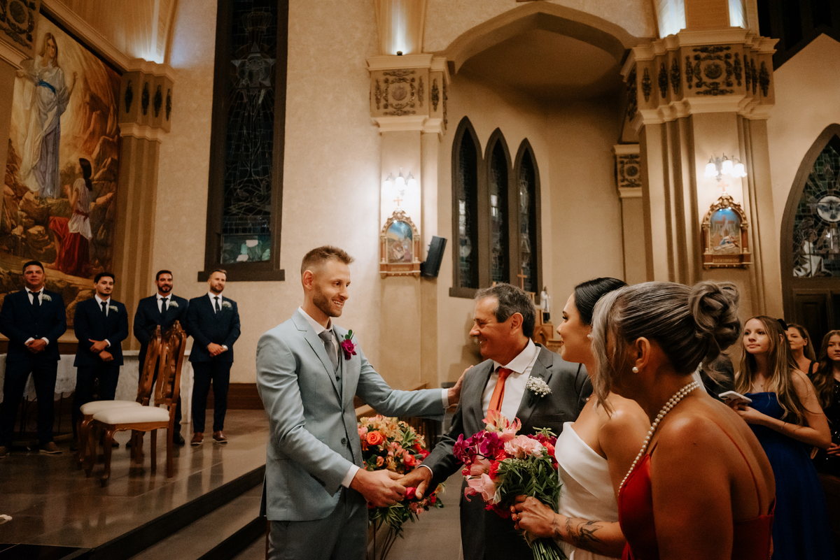 A confiança que Ká e Douglas depositaram em mim foi essencial para que as fotos transmitissem não apenas a beleza estética do evento, mas também a emoção e o amor genuíno que estavam presentes. O casamento na Igreja de Canela, com sua arquitetura imponente e acolhedora, e a festa no Sesi, com toda sua energia vibrante, foram os cenários perfeitos para capturar cada sorriso, cada olhar, cada detalhe que tornou esse dia único.
