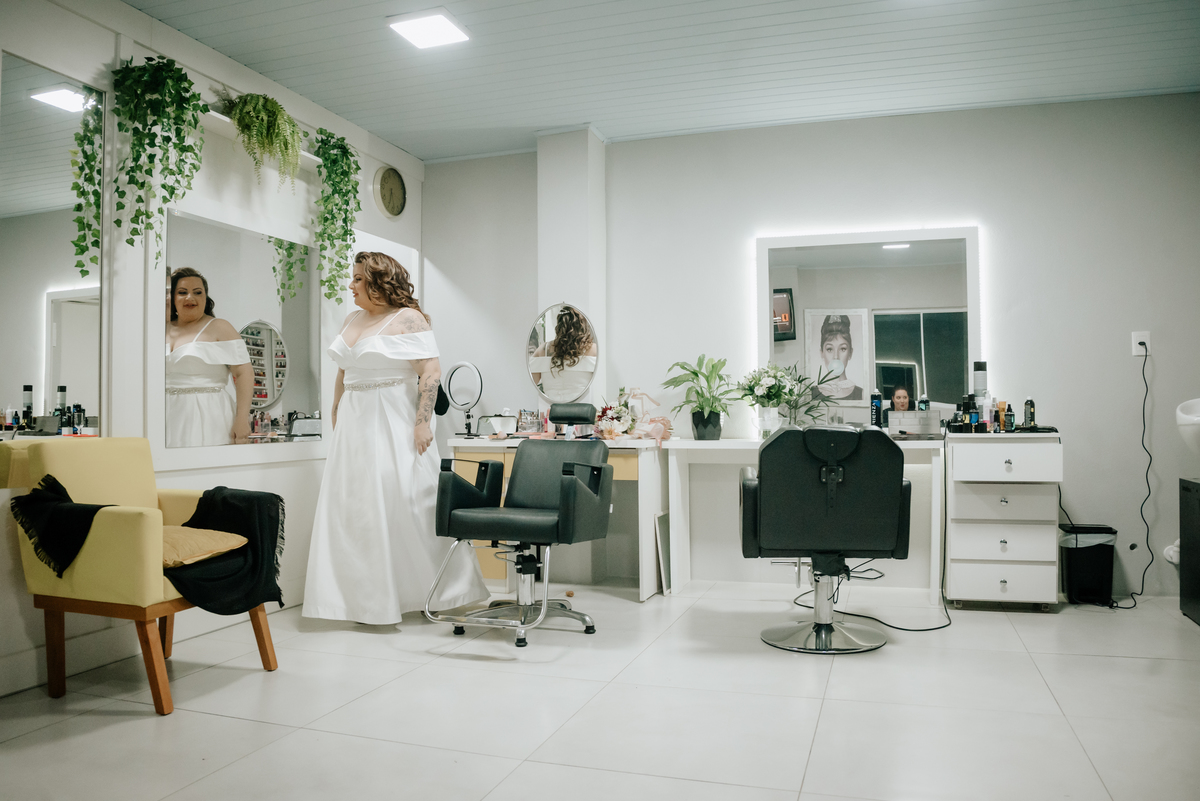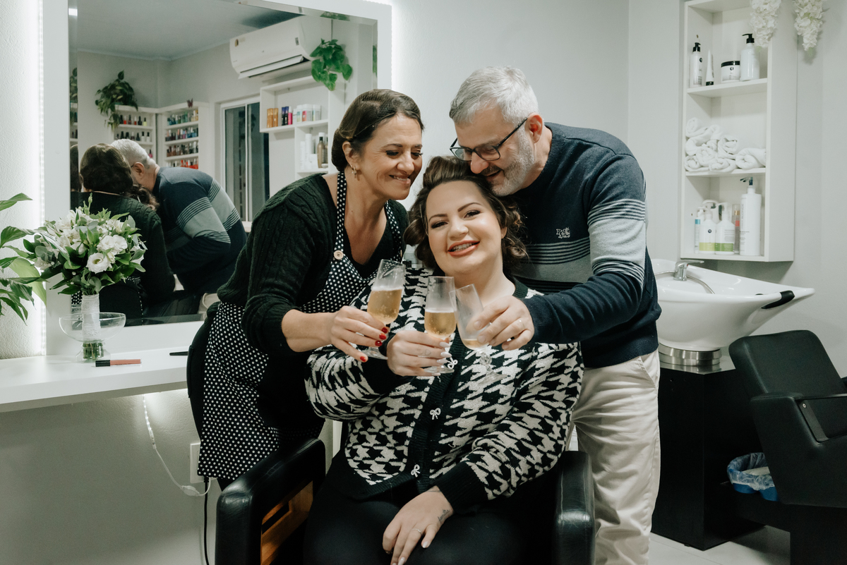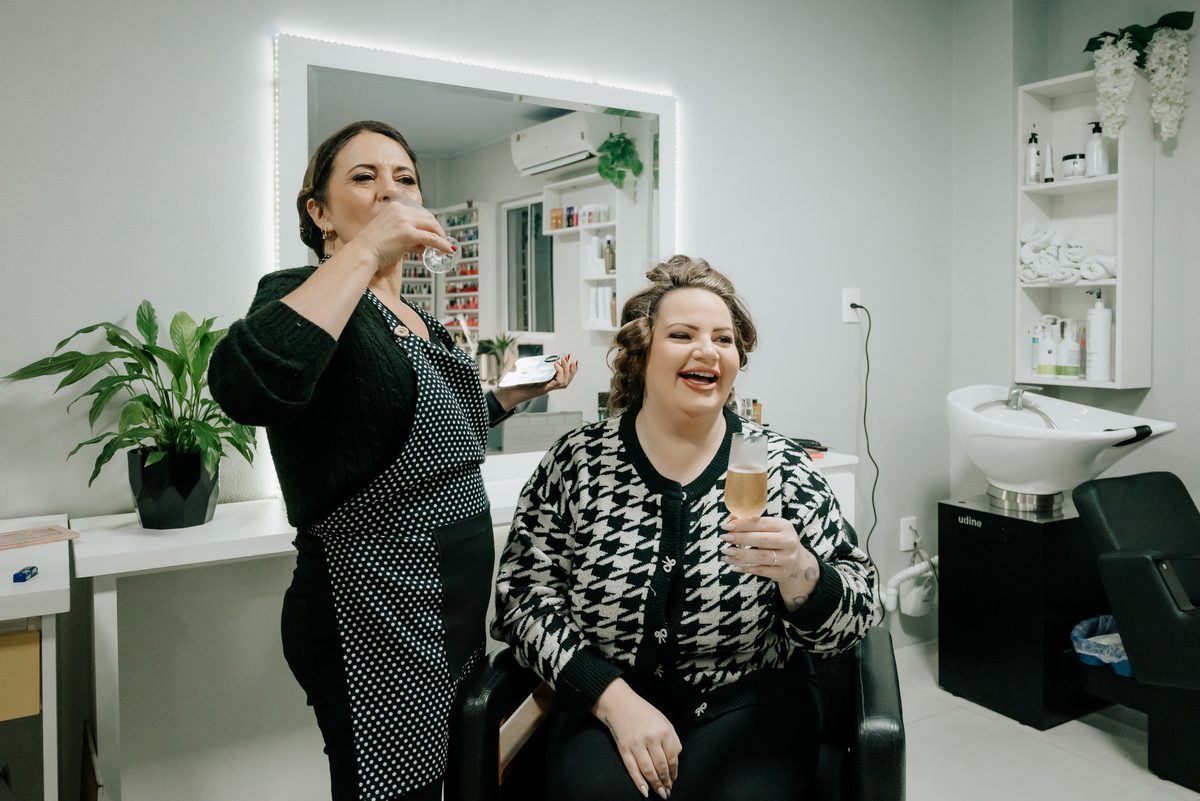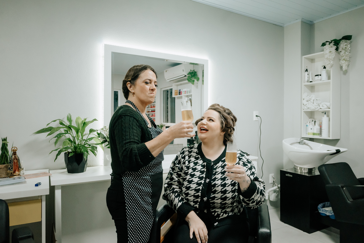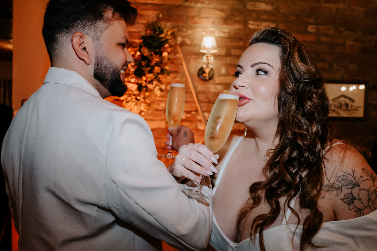 Desde o início, tudo foi diferente — e lindo. A mãe da noiva foi quem a arrumou, em um momento íntimo e cheio de emoção. Os noivos se viram antes da cerimônia e foram juntos para o evento, celebrando o companheirismo que os une. A cerimônia aconteceu em um fondue acolhedor de uma amiga do casal, o que trouxe ainda mais proximidade e afeto ao momento.
