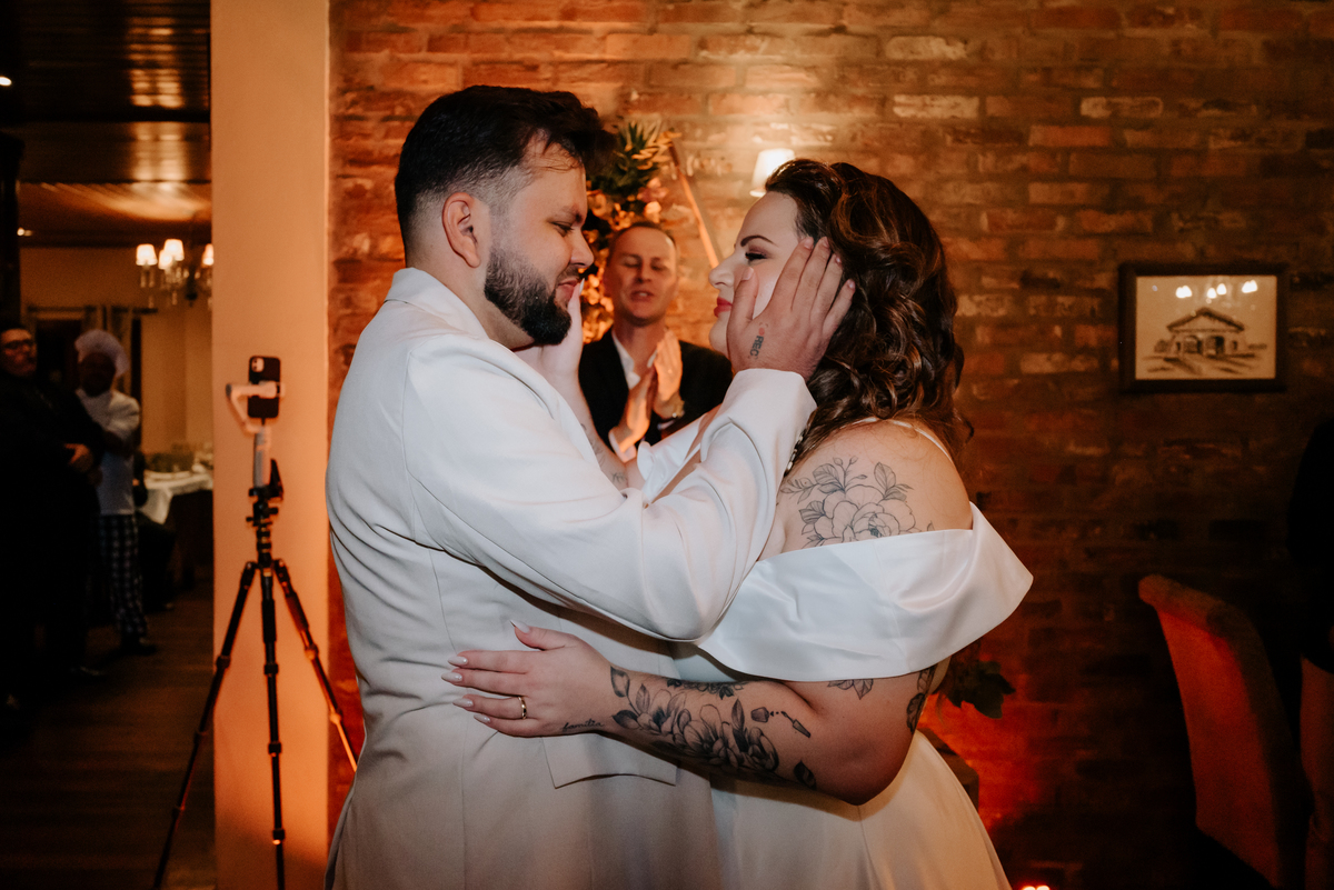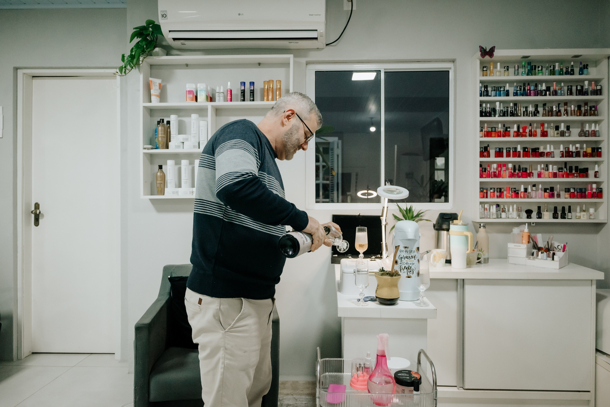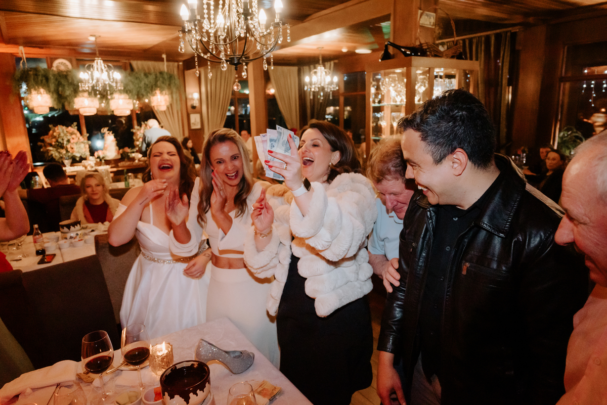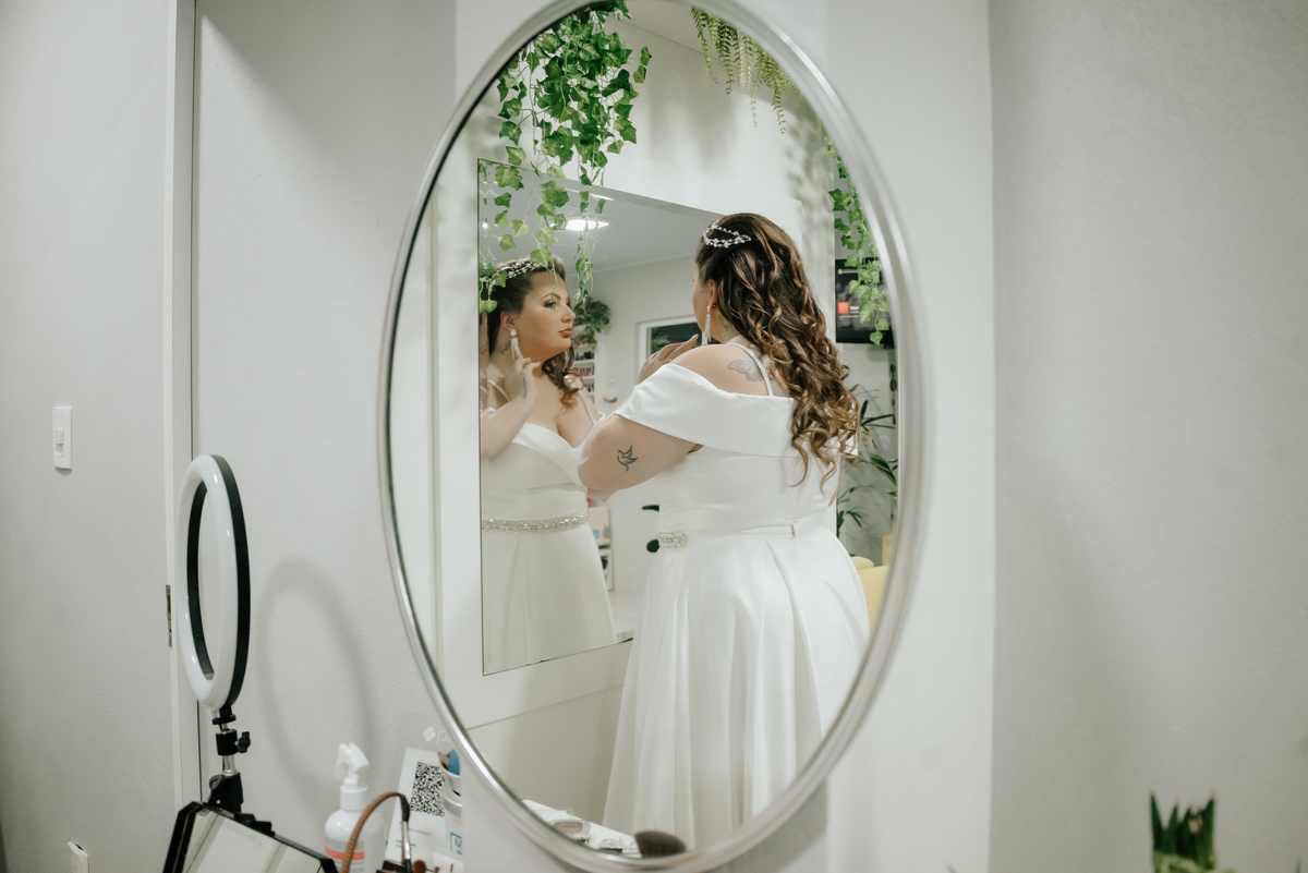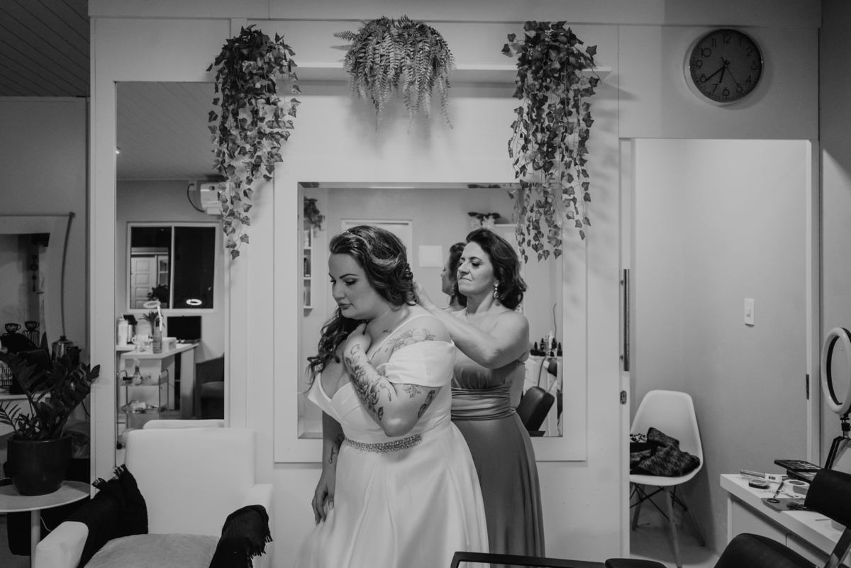 Desde o início, tudo foi diferente — e lindo. A mãe da noiva foi quem a arrumou, em um momento íntimo e cheio de emoção. Os noivos se viram antes da cerimônia e foram juntos para o evento, celebrando o companheirismo que os une. A cerimônia aconteceu em um fondue acolhedor de uma amiga do casal, o que trouxe ainda mais proximidade e afeto ao momento.