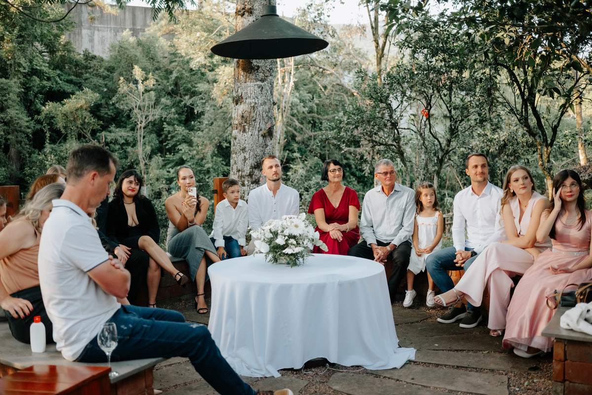 Celebrado no Nature Gramado, o grande protagonista do dia foi o amor vivido de forma leve e consciente. Eles escolheram um casamento pequeno, cercado apenas pelas pessoas mais importantes de suas vidas: pais, irmãos e sobrinhos. E, sinceramente? Foi simplesmente perfeito.