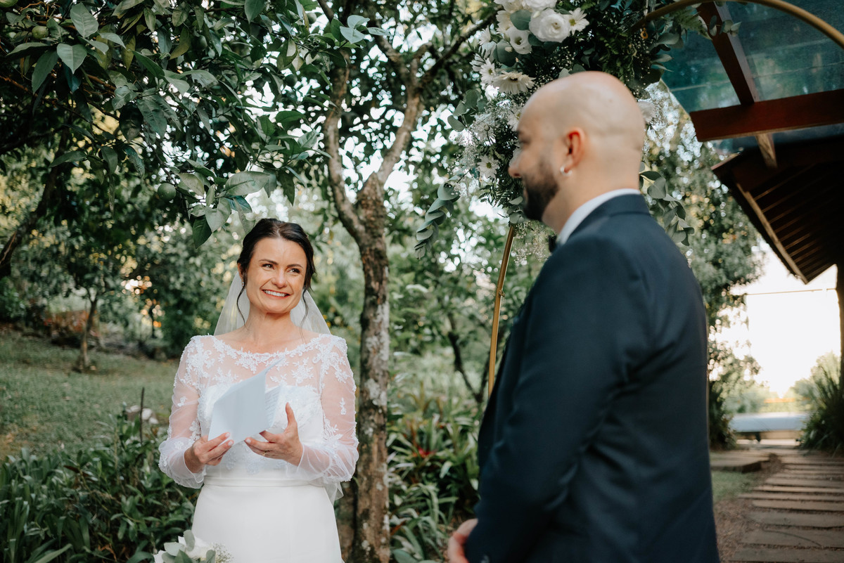 Existem histórias que não precisam de grandes plateias para serem inesquecíveis — elas brilham justamente pela verdade que carregam. O casamento da Fernanda e do Bruno foi exatamente assim: íntimo, emocionante e cheio de significado do começo ao fim.