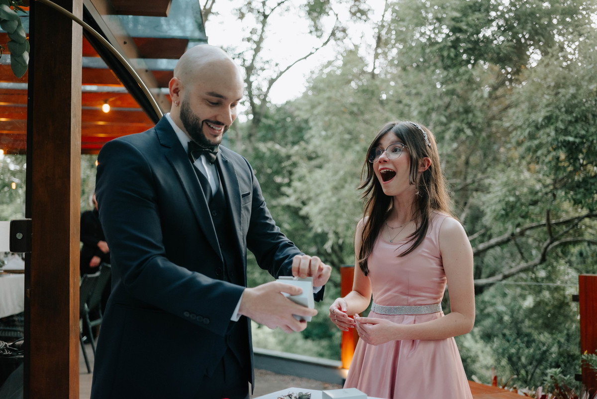 O cenário do Nature Gramado abraçou perfeitamente a proposta do casal: natureza ao redor, clima acolhedor e uma atmosfera de muita verdade.