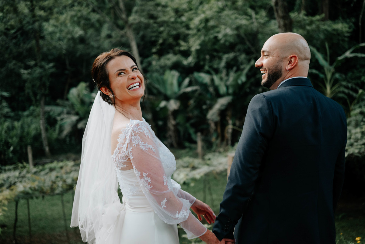 No ensaio, já era possível perceber a sintonia linda entre eles — olhares que se encontram fácil, risadas espontâneas e aquele carinho que transborda sem esforço. Quando o casamento chegou, tudo fluiu de forma natural, exatamente como a história deles merece.