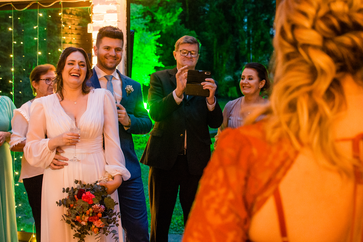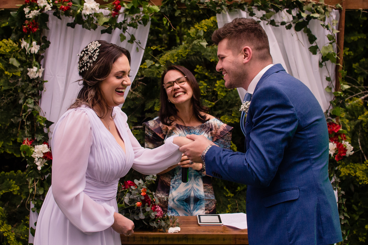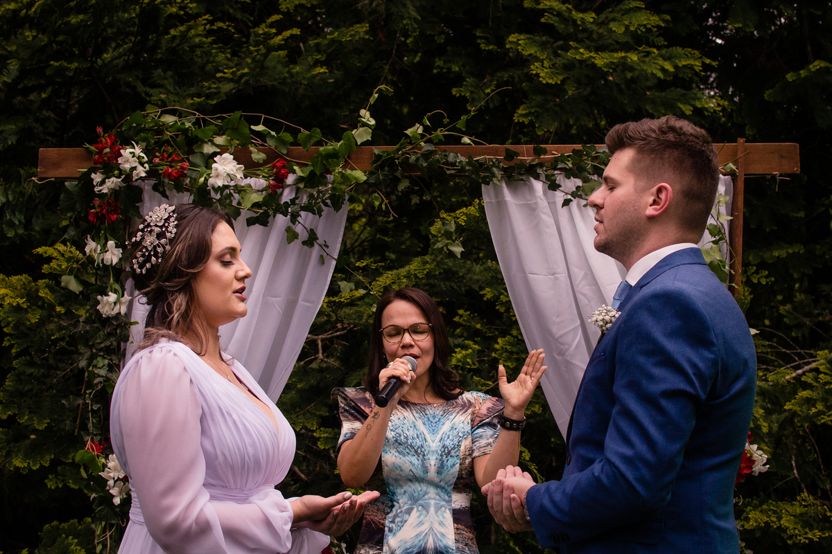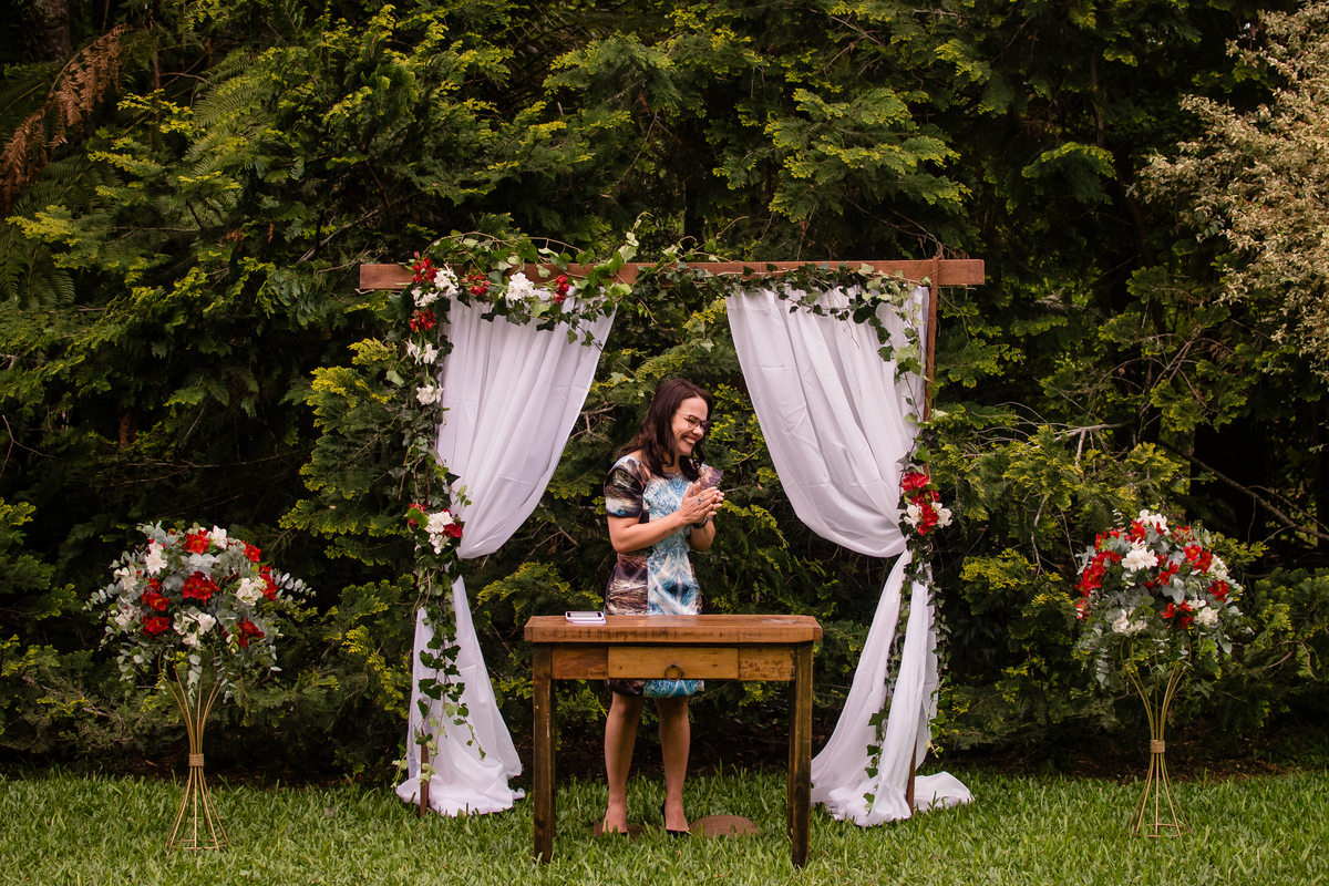 Começou. Ana chorando muito, do começo ao fim. Antes e após uma nova maquiagem. Chorei junto. Falaram dos avós, dos que estavam e não estavam mais entre nós, dos cachorros, dos futuros filhos, de tudo que há de mais bonito e intenso. A Ana, celebrante, tem o dom de tocar lá no fundo da alma. As Gurias, responsáveis pela decoração, corriam de um lado pra outro pra que nada desse errado. E não deu. Foi perfeito, perfeito mesmo. O clima era pra chover e não choveu. O céu ficou rosado. As fotos falam por si e quero que sintam toda a energia de cada uma delas.