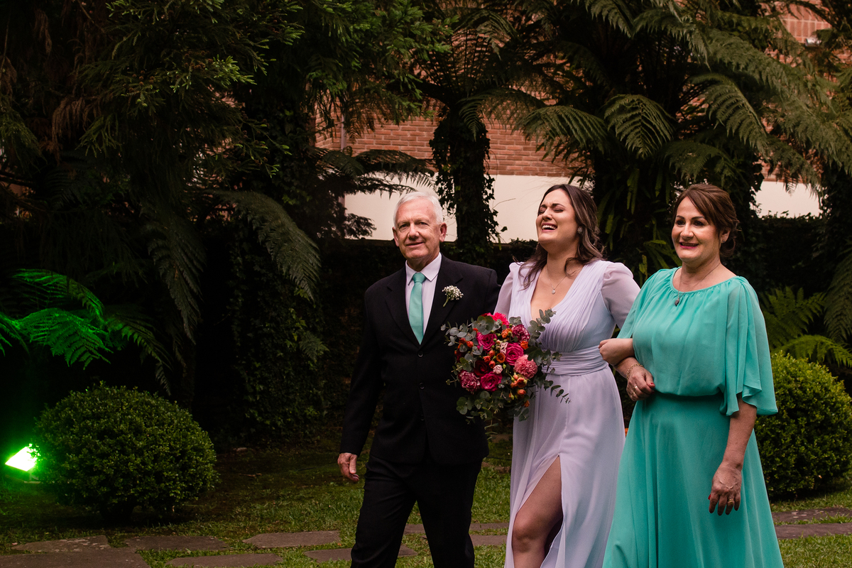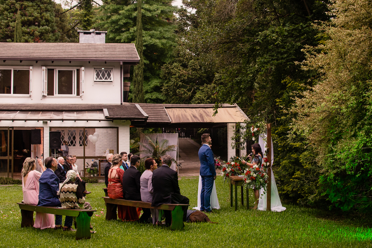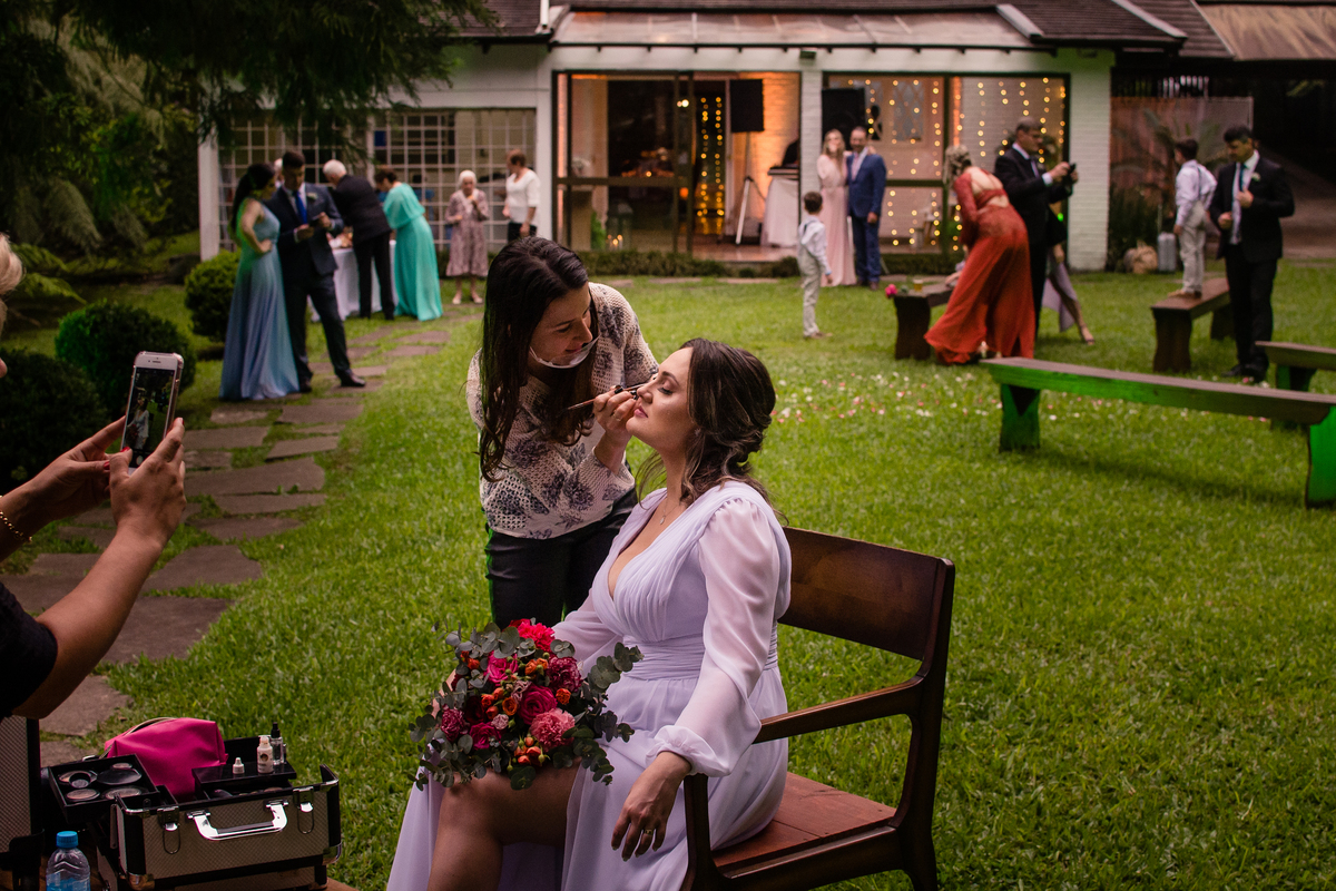 Parece que dessa forma, tudo flui de outra maneira, a gente vê o que antes não via e se entrega (assim como eles) pra que esse momento seja único - pra todos os envolvidos. Dessa vez, a família trocou um grande casamento repleto de convidados, por uma casa alugada em Gramado mantendo a união entre eles e todos ali presentes em cada momento do grande dia. Nada melhor. Amanhecer juntos, todos se arrumando ao mesmo tempo, banheiro sendo disputado, maquiagem aqui e finalização de cabelo ali, o noivo some, os cachorros animam e nos rodeiam, as crianças nem sabem o que está acontecendo, os avós encantados, os prestadores de serviços na correria e eu ali, fotografando tudo isso com meu coração transbordando sentimentos.