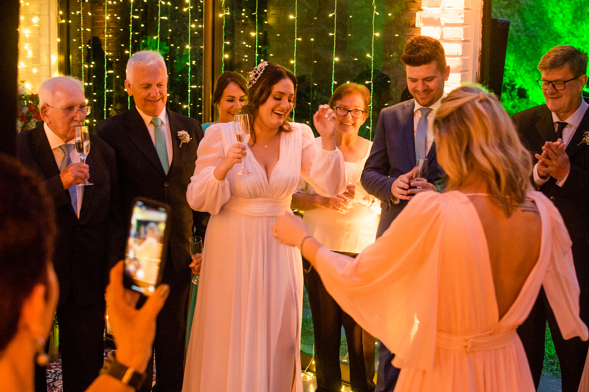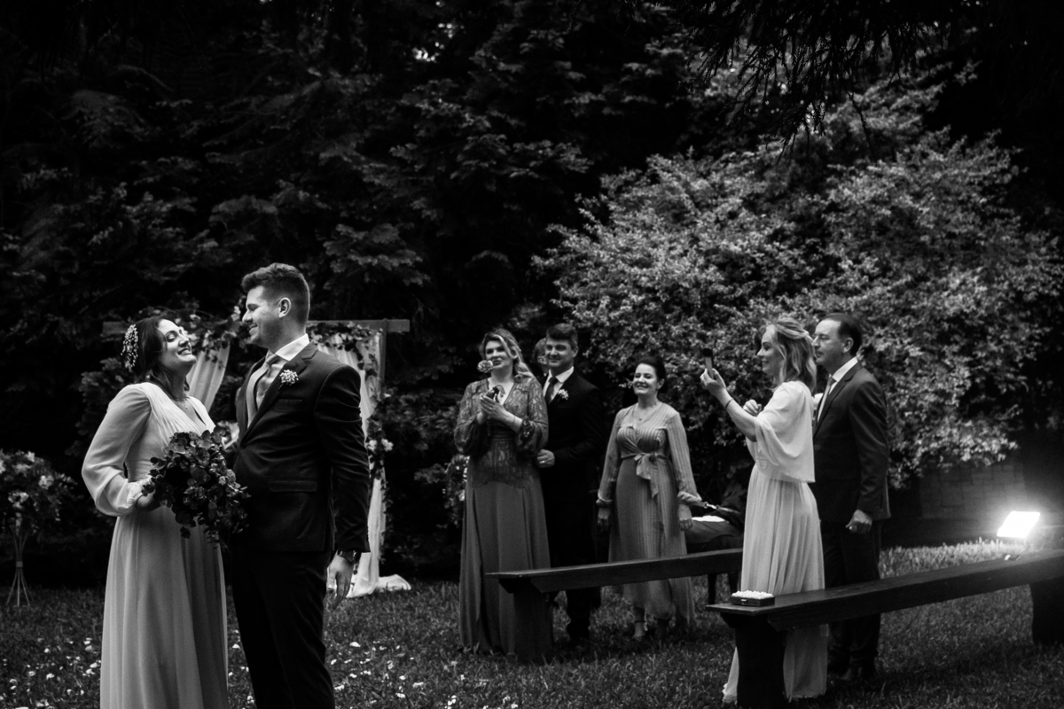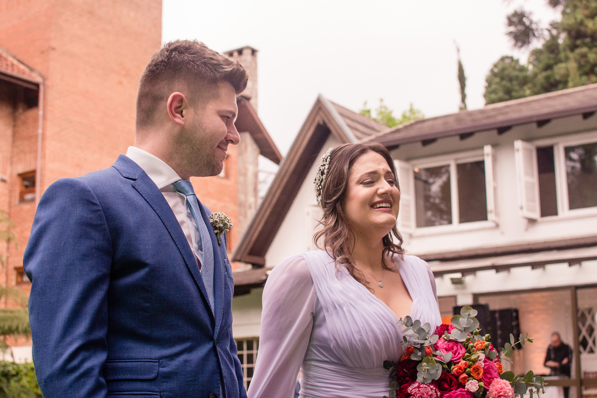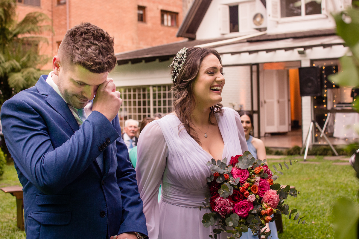 Parece que dessa forma, tudo flui de outra maneira, a gente vê o que antes não via e se entrega (assim como eles) pra que esse momento seja único - pra todos os envolvidos. Dessa vez, a família trocou um grande casamento repleto de convidados, por uma casa alugada em Gramado mantendo a união entre eles e todos ali presentes em cada momento do grande dia. Nada melhor. Amanhecer juntos, todos se arrumando ao mesmo tempo, banheiro sendo disputado, maquiagem aqui e finalização de cabelo ali, o noivo some, os cachorros animam e nos rodeiam, as crianças nem sabem o que está acontecendo, os avós encantados, os prestadores de serviços na correria e eu ali, fotografando tudo isso com meu coração transbordando sentimentos.