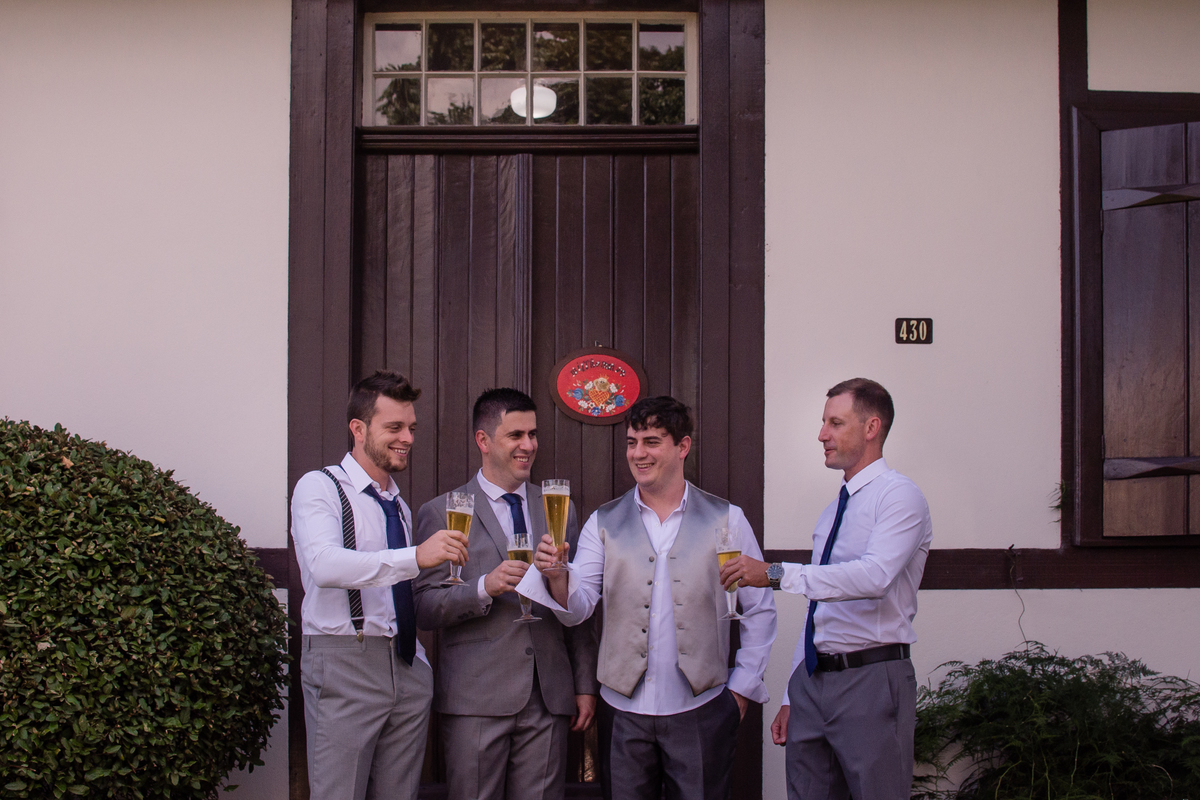 O dia amanheceu lindo, com temperatura amena. Eles alugaram uma casa histórica em Nova Petrópolis, toda em estilo enxaimel. Cheguei lá e a família toda reunida me emocionou logo de cara. As meninas unidas no segundo andar, maquiagem num lado e cabelo no outro, os meninos aproveitando o tempo restante. Entre subidas e descidas da escada fiz alguns registros que simbolizam muito desse dia tão especial.