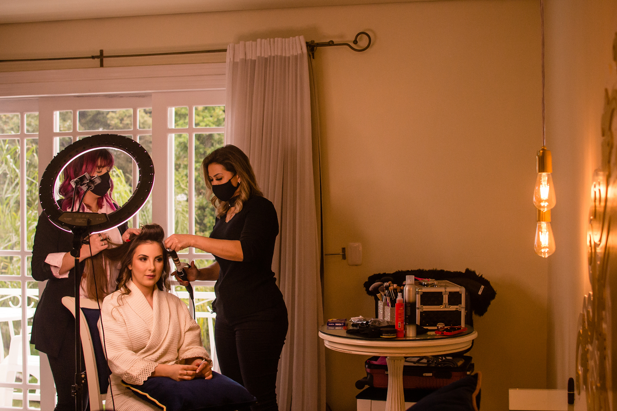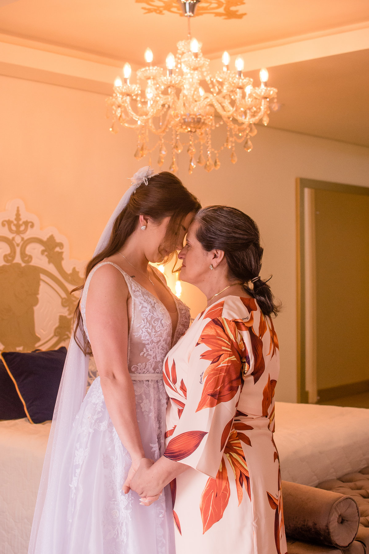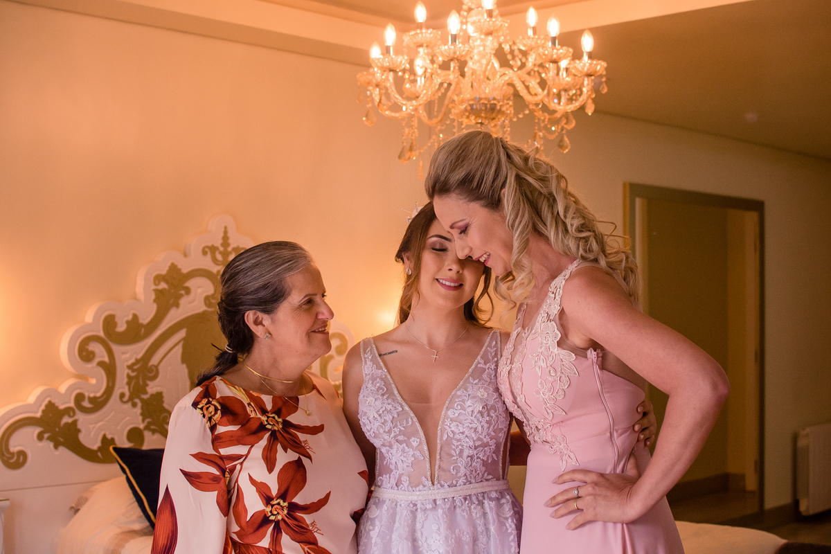 Em seguida foi o momento da Bruna, após colocar o vestido recebeu no quarto sua madrinha e sua madrasta, ambas extremamente sensíveis e emocionadas - elas carregam em si a força e a responsabilidade materna, já que homenagearam de uma linda forma a mãe da Bruna, já falecida. Ali o choro rolou solto e eu também não aguentei tamanha troca dos melhores sentimentos.
