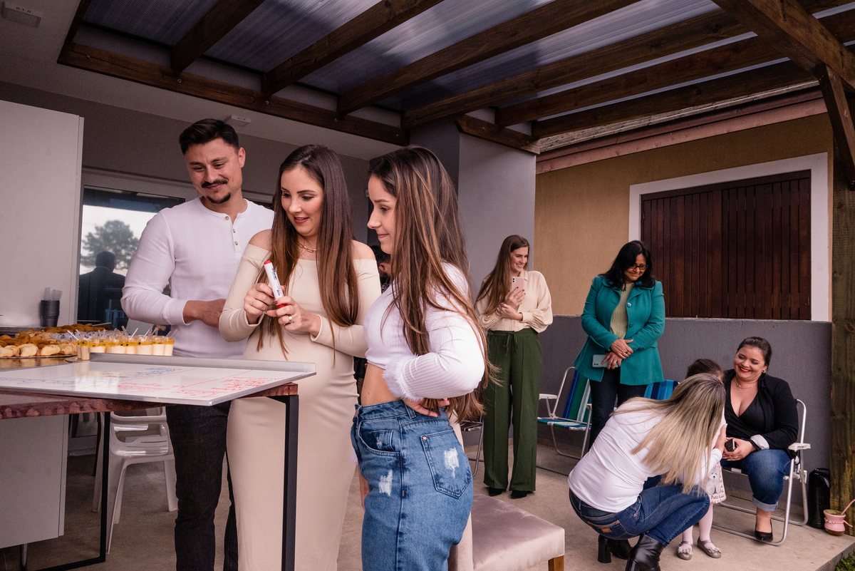 E aí está mais um lindo encontro meu com esse casal tão amado - me escolheram pra fotografar o pré wedding, o casamento, o primeiro ensaio como grávidos e, agora, a revelação desse bebê que chega pra completar.