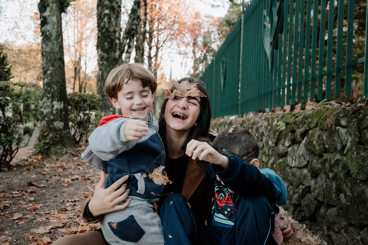 Pra finalizar a nossa sessão, a visita mais fofa que podíamos receber - os irmãos dela por parte de pai, o Lucas e o Miguel, que adoraram a bagunça com todas as folhas secas que encontramos - ah, essa turminha já foi fotografada antes, junto da Mônica, num ensaio lindo de dia das mães: veja aqui.