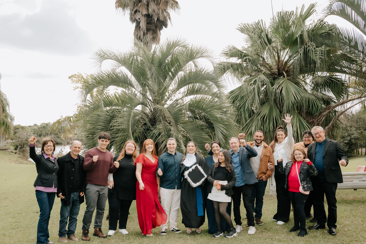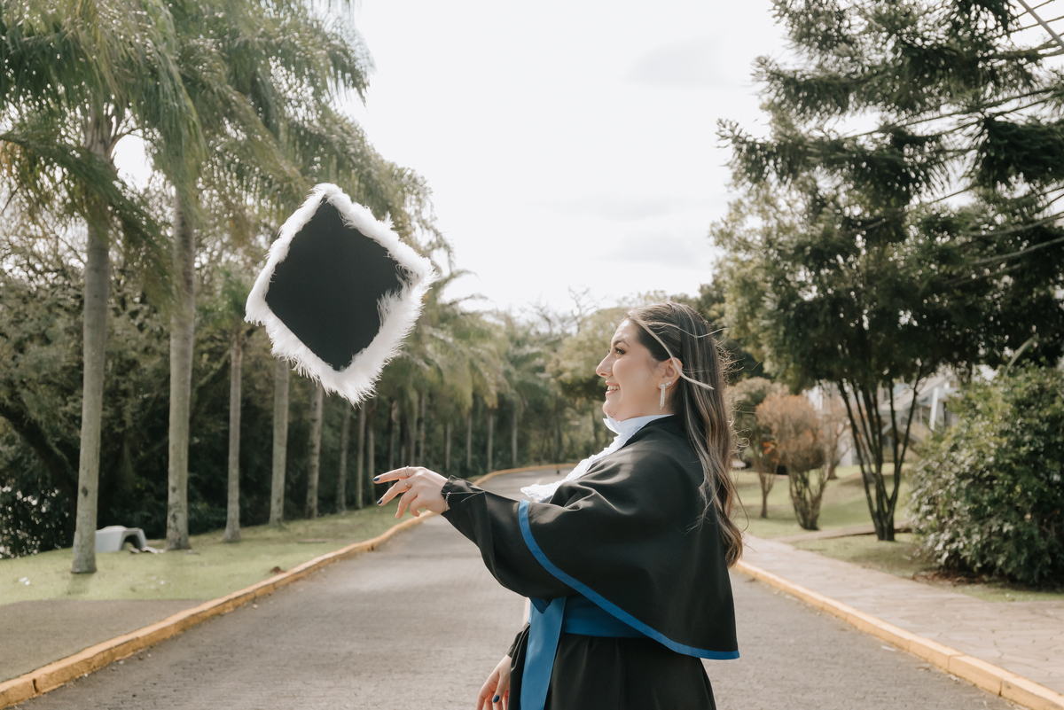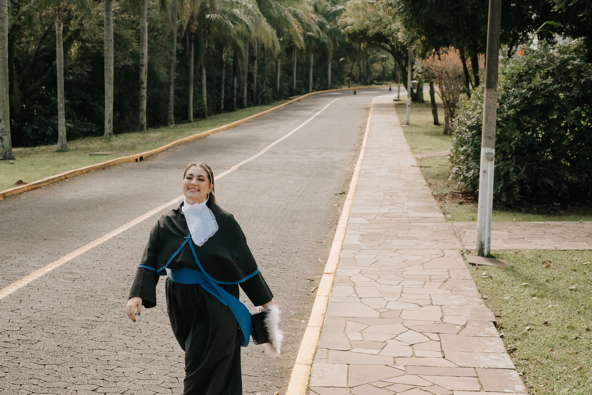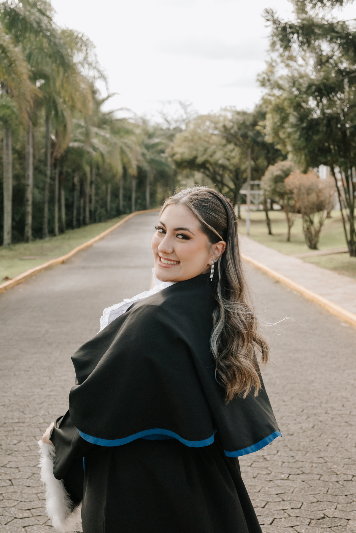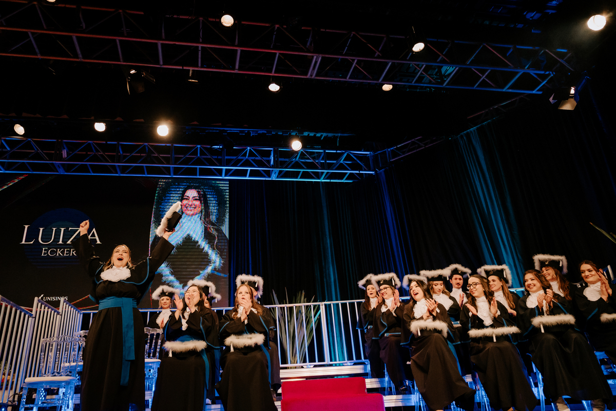 A cerimônia de colação de grau aconteceu na Unisinos, em São Leopoldo, reunindo colegas, professores e familiares em um momento de pura emoção. Cada olhar, abraço e sorriso carregava o peso de anos de dedicação, noites de estudo e o sonho finalmente realizado.