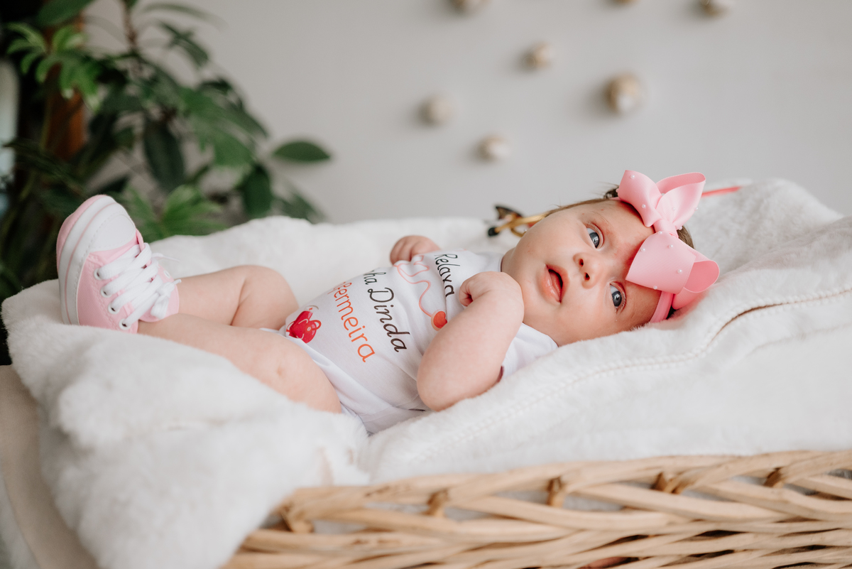 Cada etapa traz uma nova descoberta. Aos dois meses, Rebeca já começa a mostrar seus primeiros sorrisos, expressões curiosas e aquele jeitinho único que muda semana após semana. Registrar esse momento é guardar detalhes que passam rápido demais — e que, juntos, constroem uma memória completa da infância.