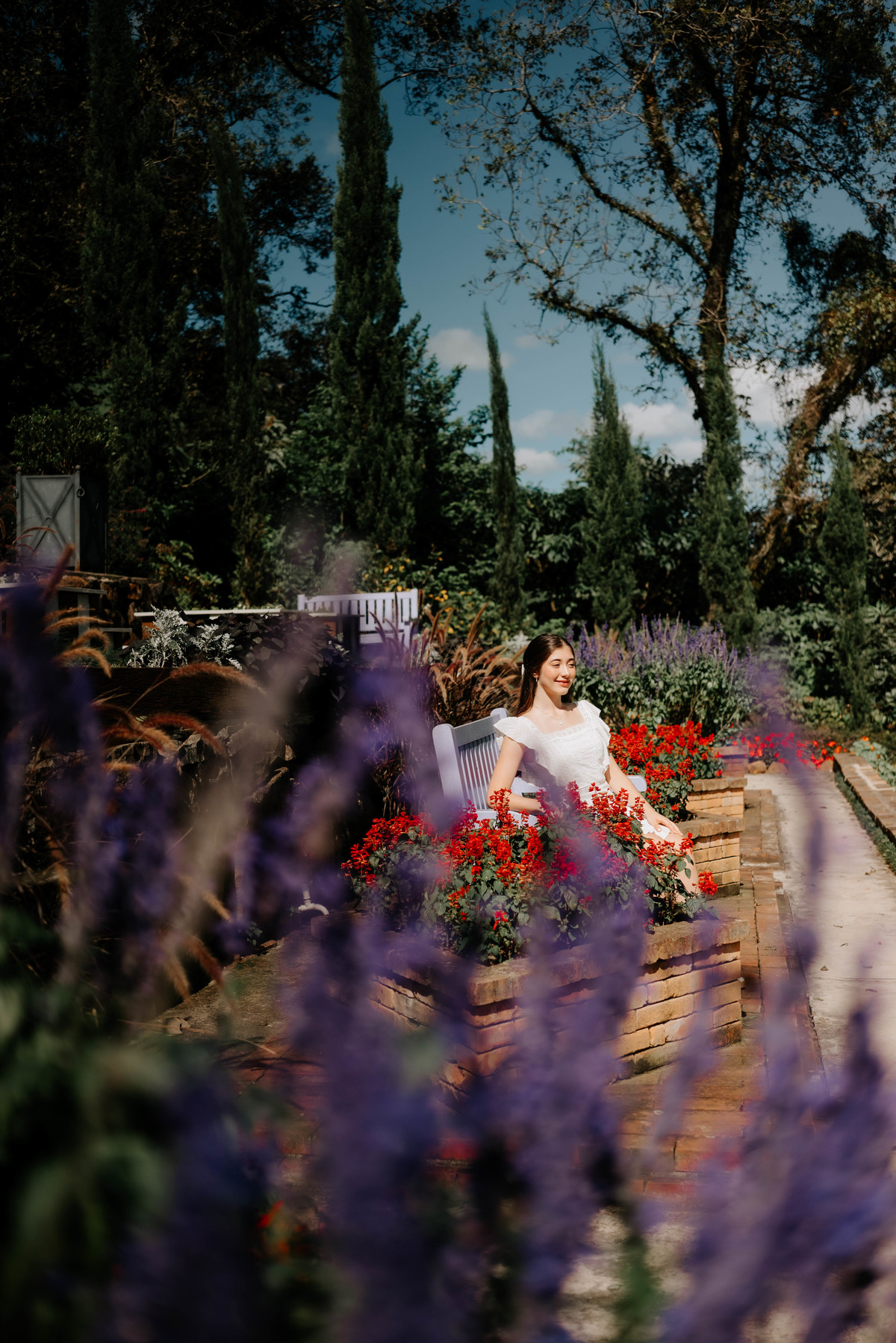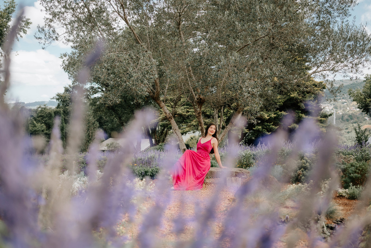O Le Jardin é conhecido pelos seus campos de lavanda e paisagens únicas, criando o cenário perfeito para um ensaio de 15 anos em Gramado. Cada cantinho do parque contribuiu para compor imagens suaves, elegantes e cheias de personalidade.