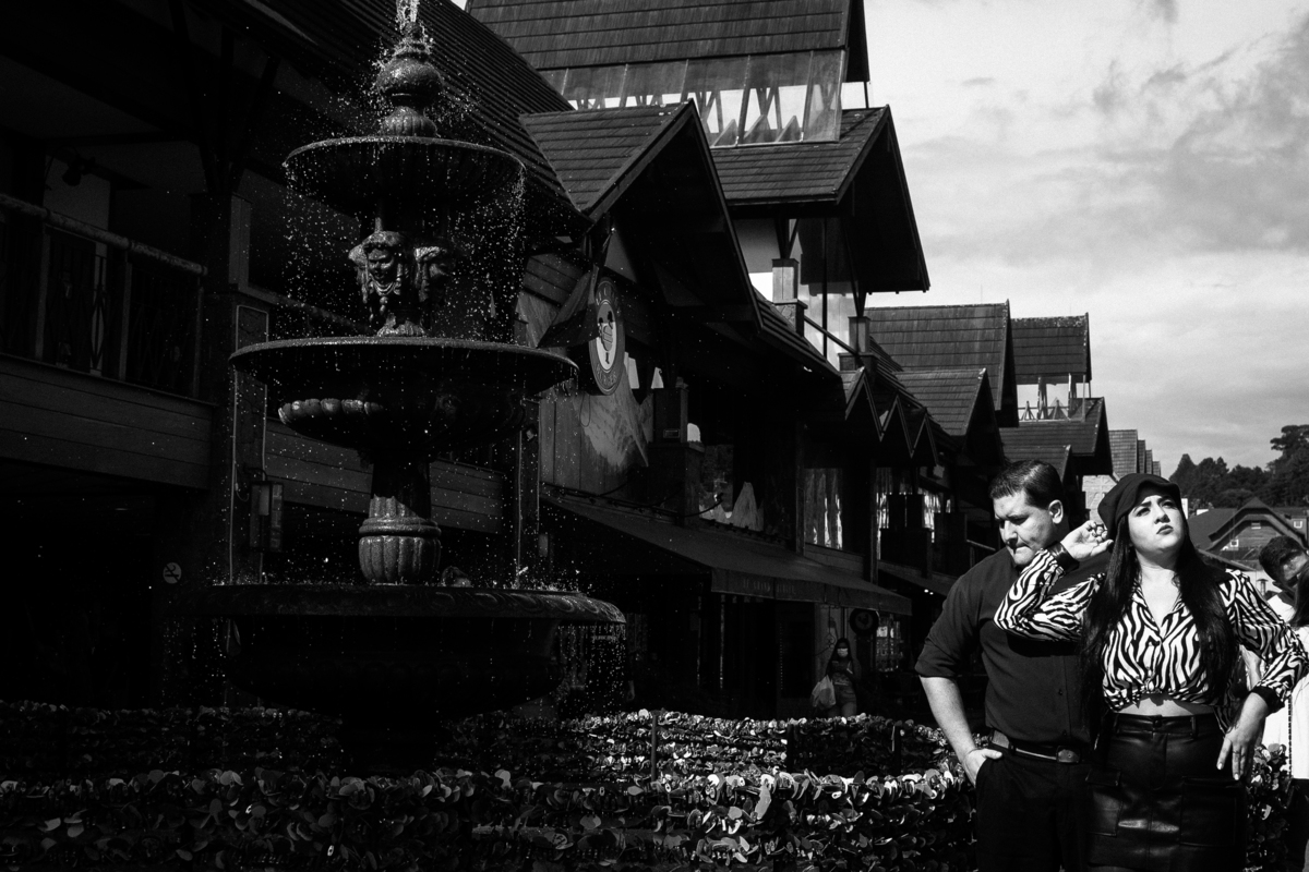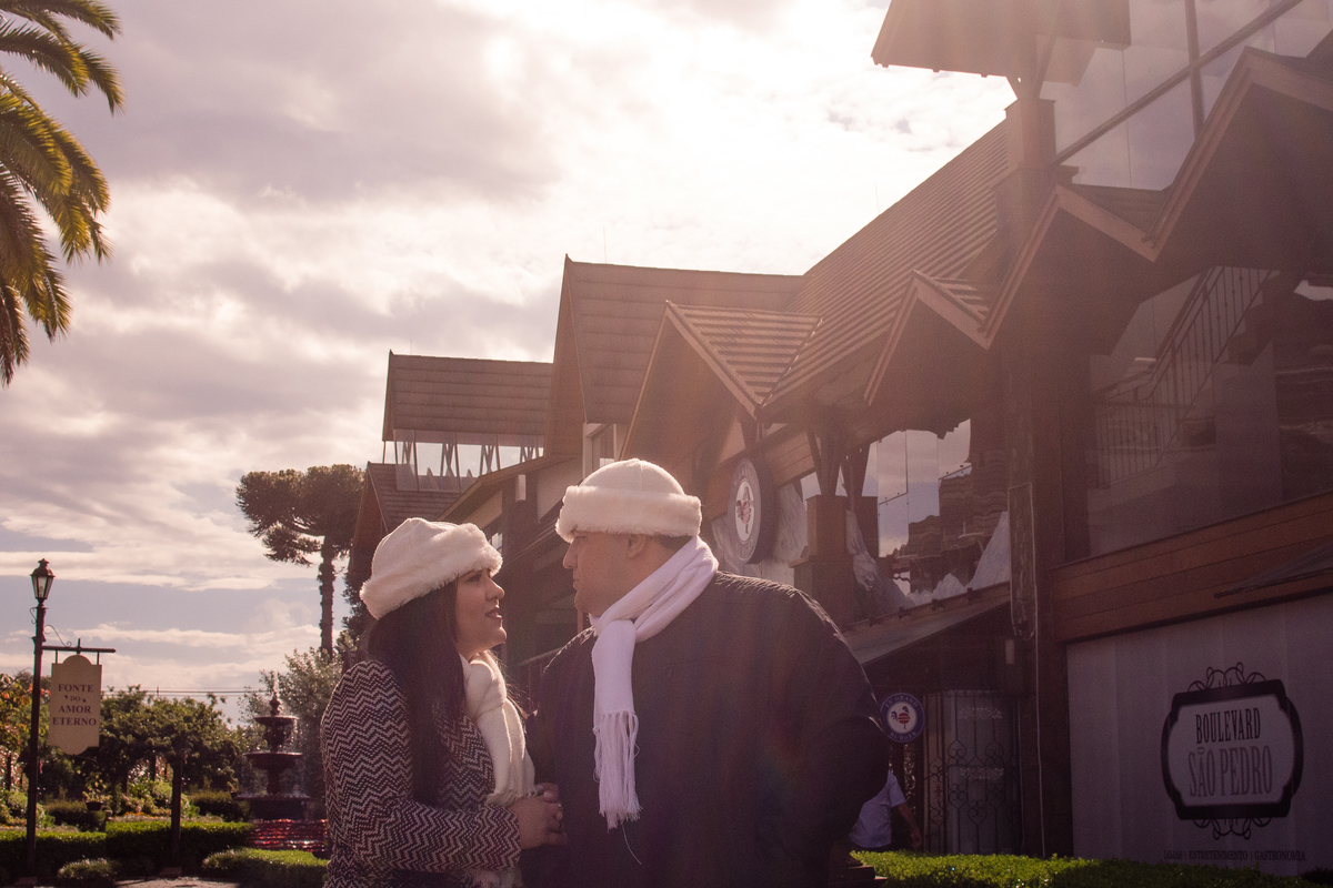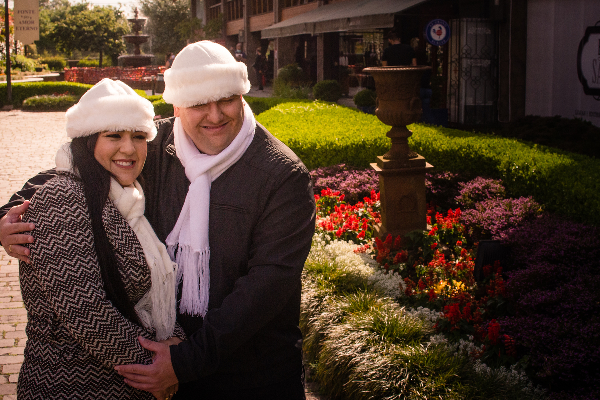 O Danilo e a Amanda vieram super preparados, com looks escolhidos a dedo, entusiasmados e ansiosos pras nossas fotos. Fomos juntos à Fonte do Amor Eterno e, mais tarde, quando a noite já havia chegado, nos encontramos no Centro de Canela pra um ensaio noturno e repleto de personalidade.