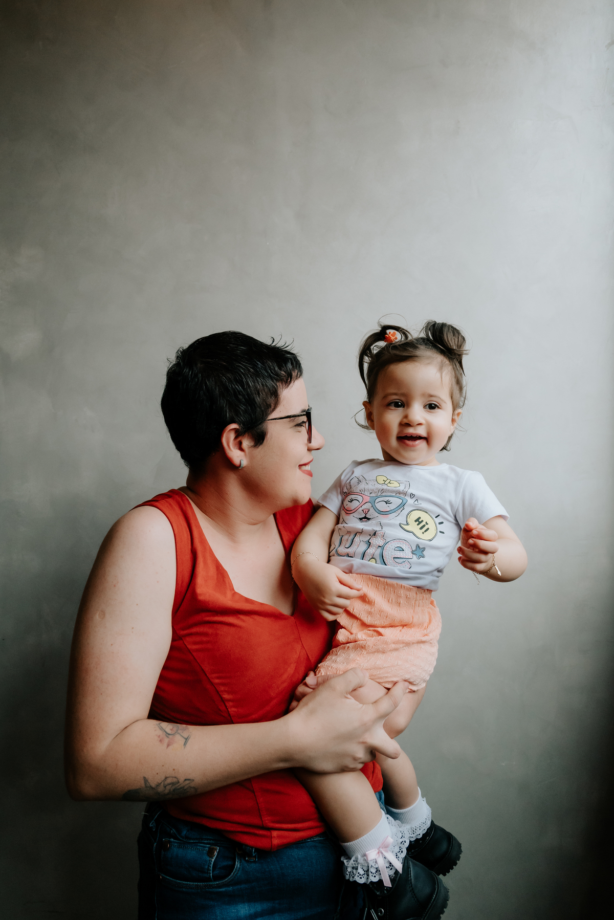 Como fotógrafa nascida e criada em Gramado, compreendo o valor de contar histórias que estão profundamente enraizadas na Serra Gaúcha. Meu estúdio minimalista foi pensado para destacar o que realmente importa: a conexão entre as pessoas. Nesse ambiente clean e acolhedor, pude capturar toda a ternura da Elis, o carinho da Danúbia e a sabedoria presente no olhar da Marlene, criando memórias que elas levarão para sempre.