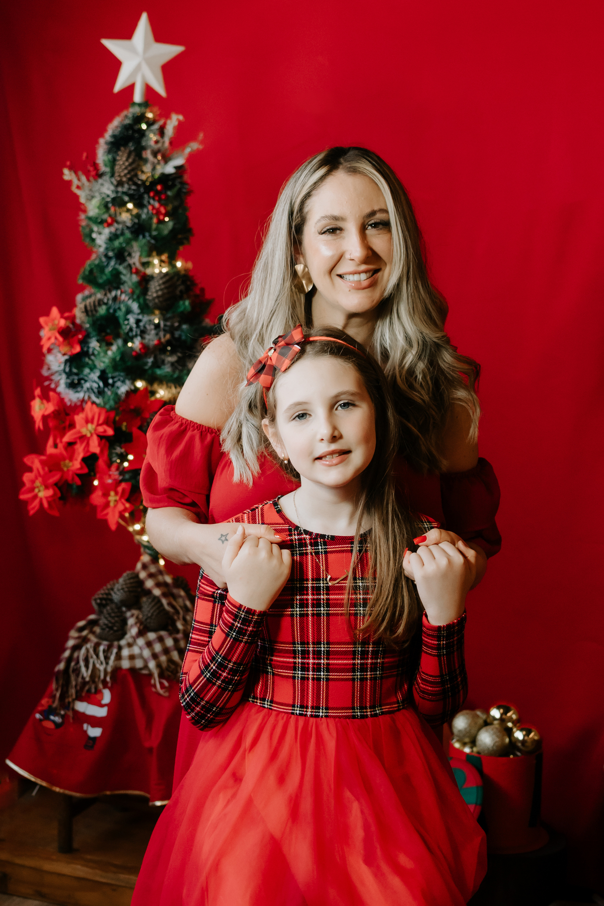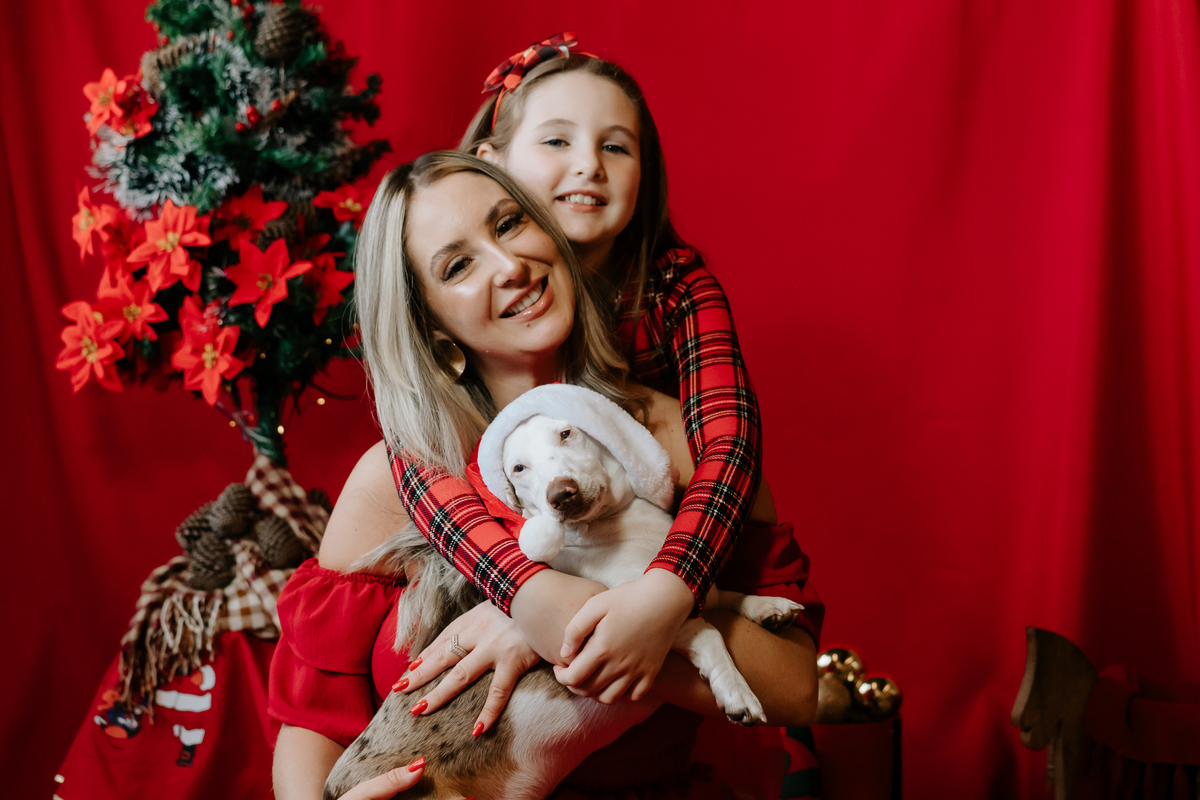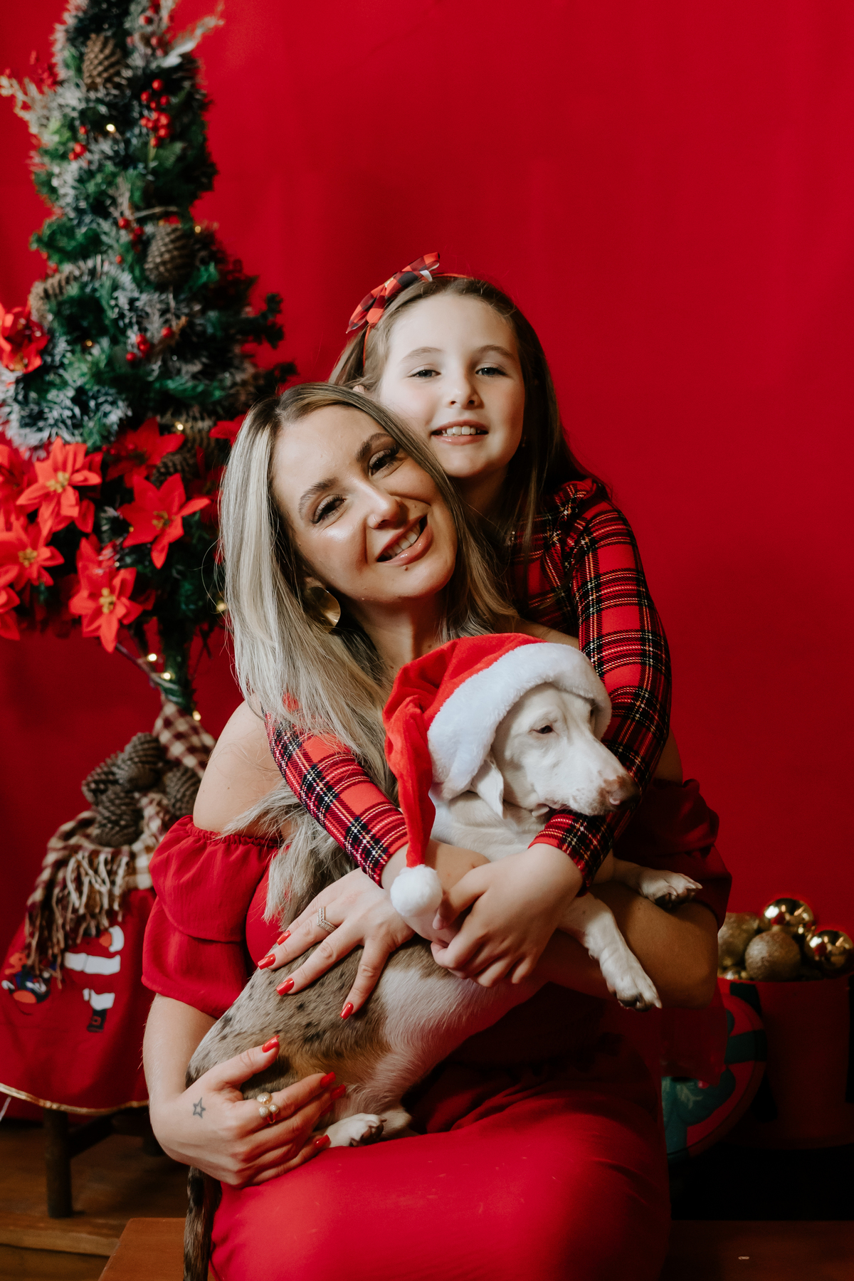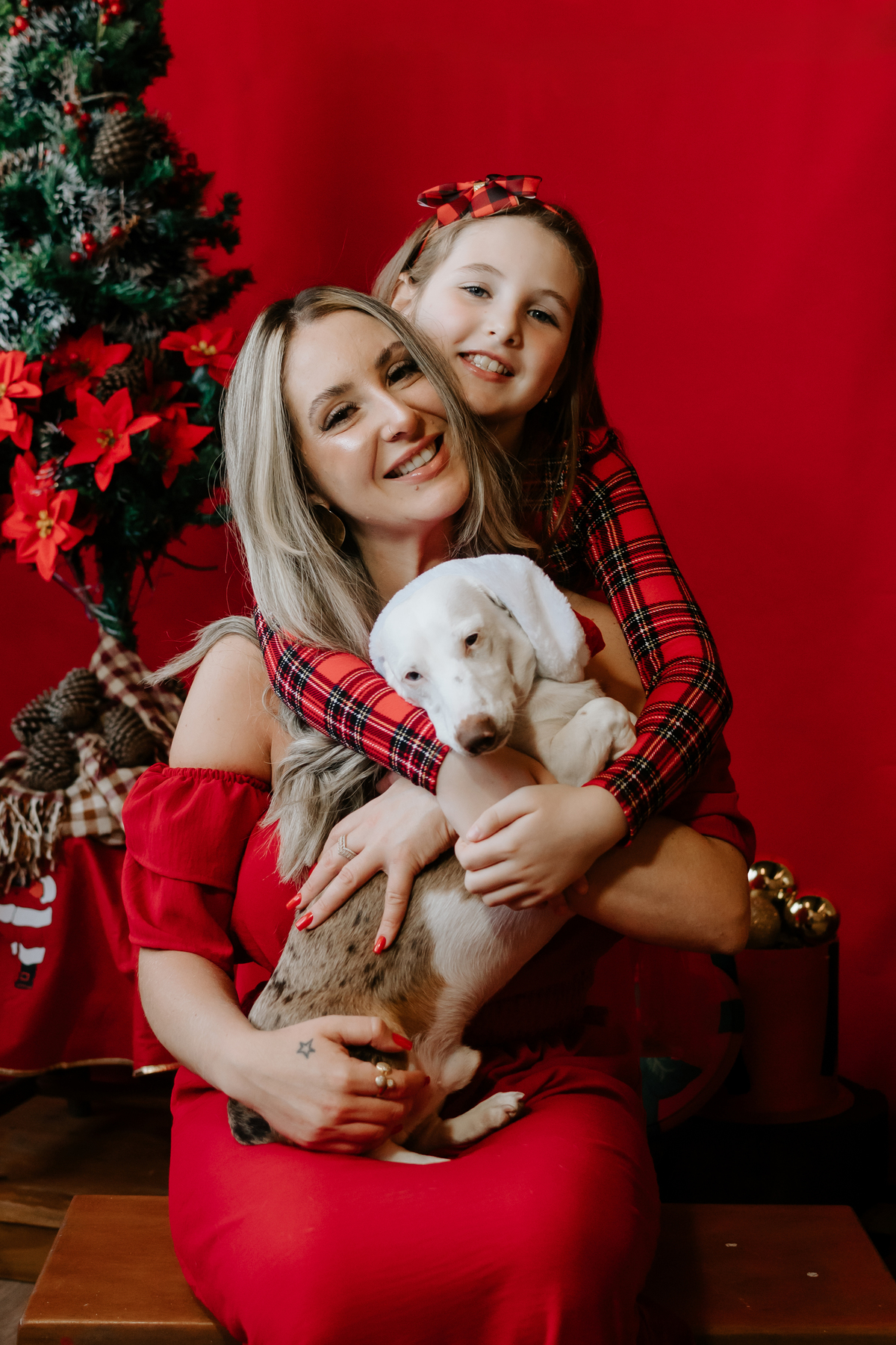 Fotografar famílias é sobre criar memórias que atravessam o tempo. Quando os clientes retornam para novos ensaios, isso reforça não apenas a conexão entre nós, mas também a confiança no meu olhar e no meu trabalho. A Ana Paula e a Júlia já estiveram diante das minhas lentes antes, e neste Especial de Natal, tivemos um novo integrante no ensaio: o Chico, o cachorrinho da família!