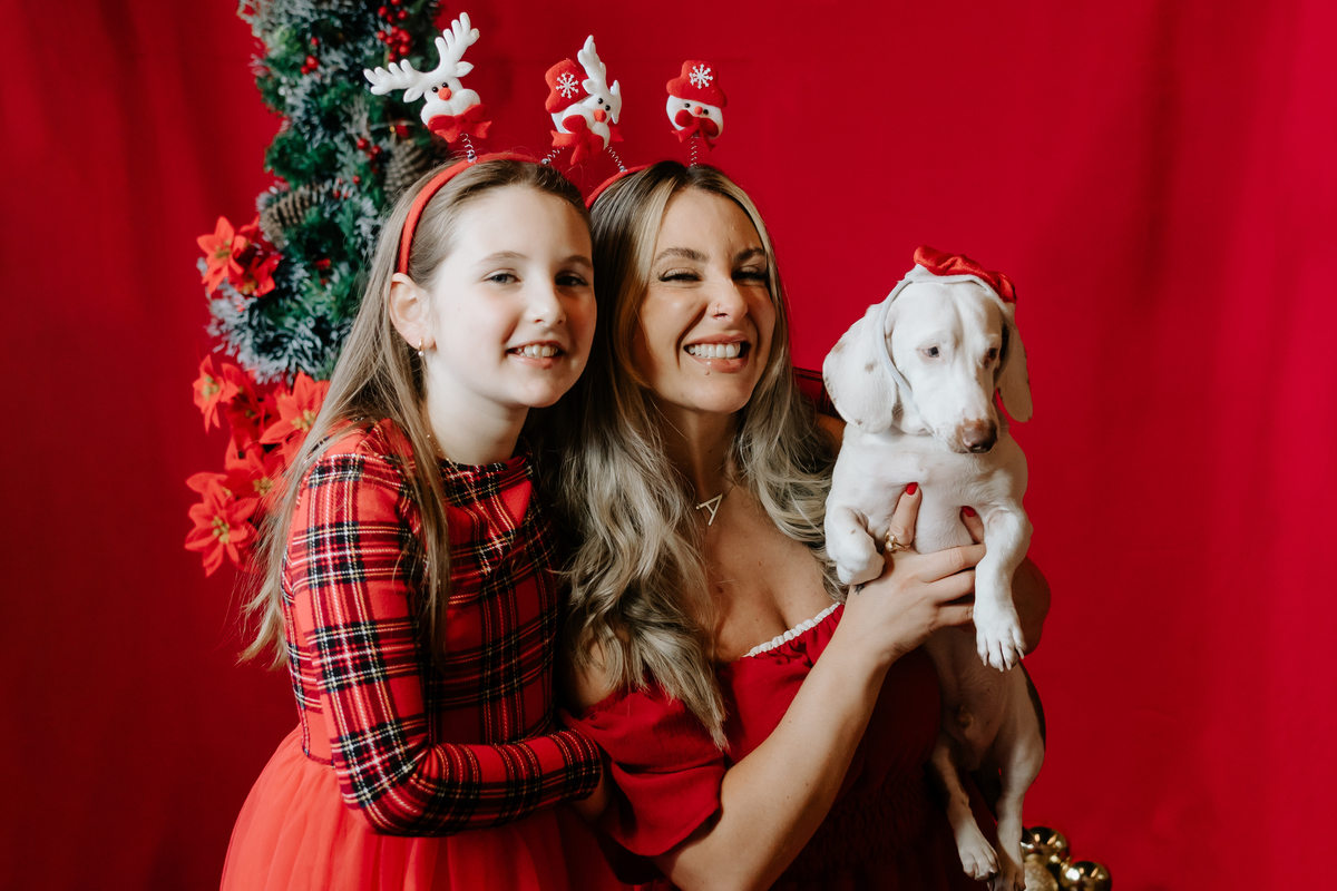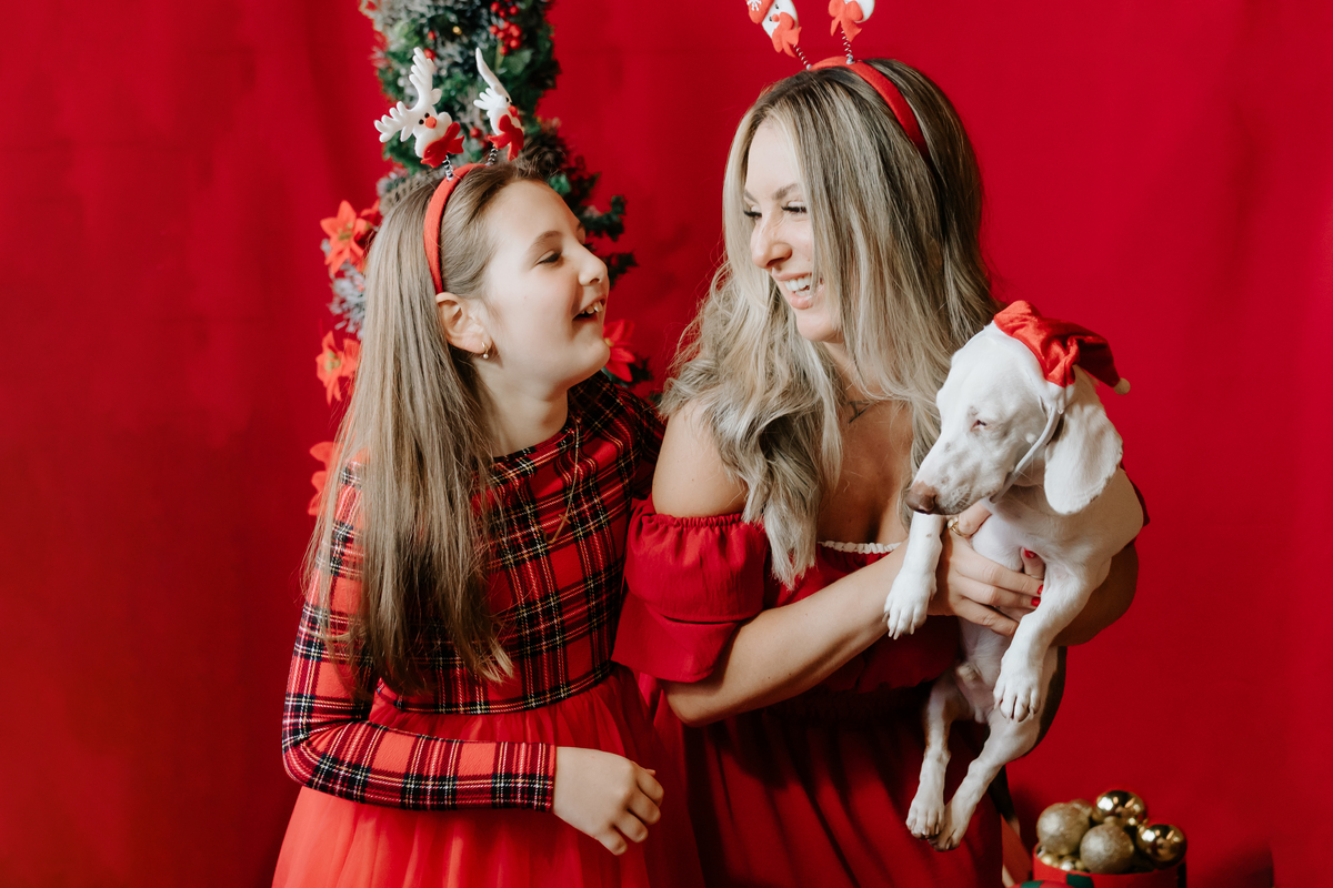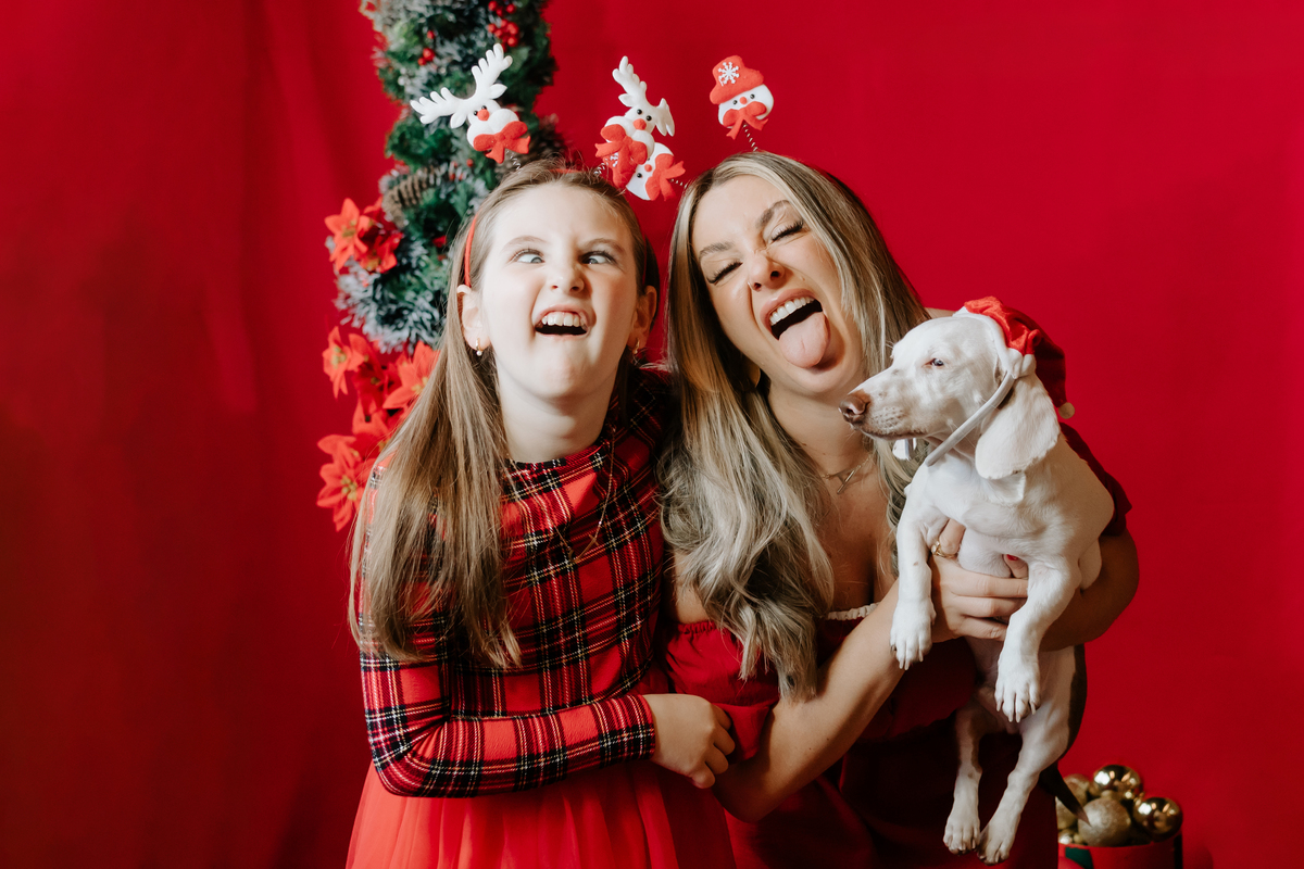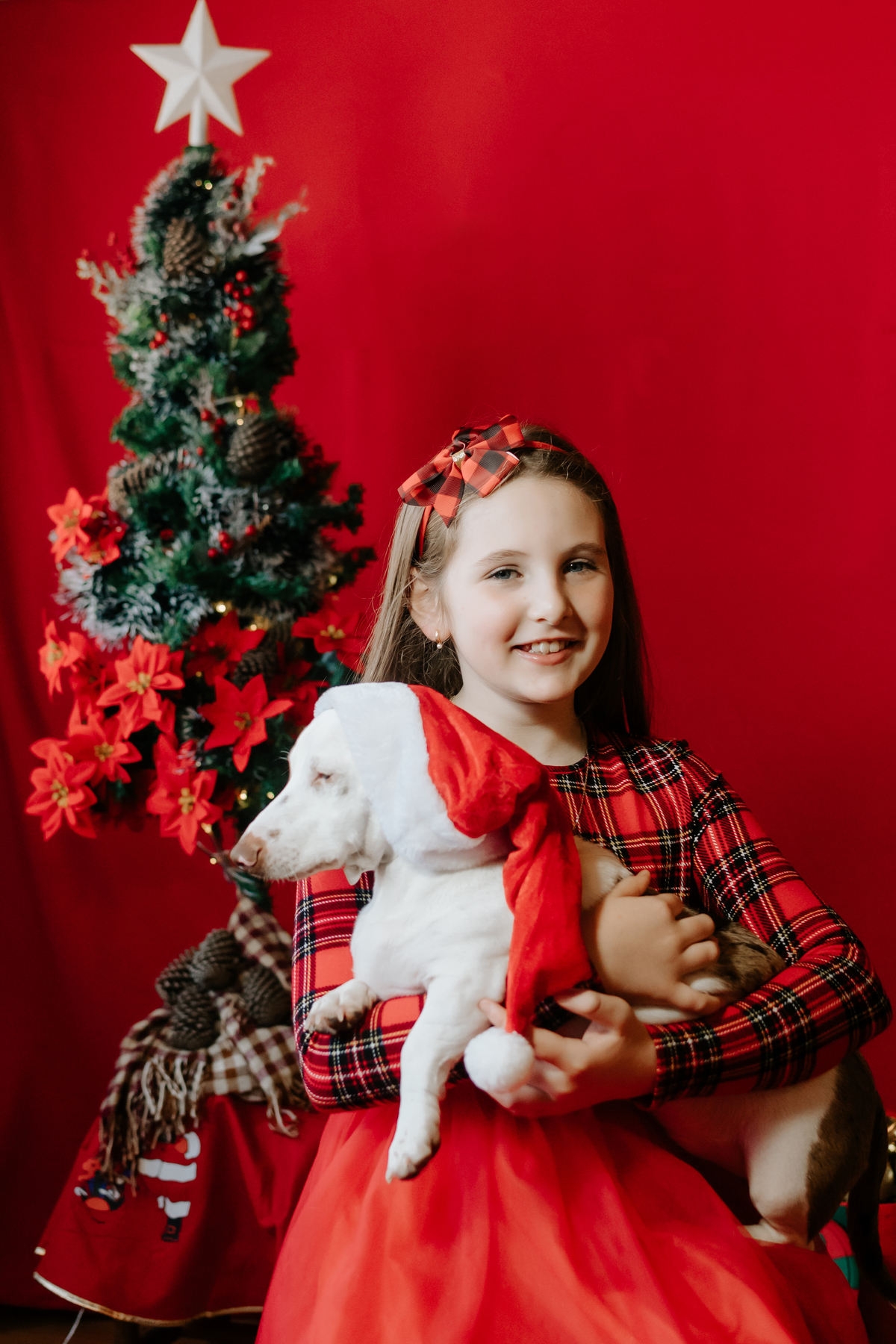 Fotografar famílias é sobre criar memórias que atravessam o tempo. Quando os clientes retornam para novos ensaios, isso reforça não apenas a conexão entre nós, mas também a confiança no meu olhar e no meu trabalho. A Ana Paula e a Júlia já estiveram diante das minhas lentes antes, e neste Especial de Natal, tivemos um novo integrante no ensaio: o Chico, o cachorrinho da família!