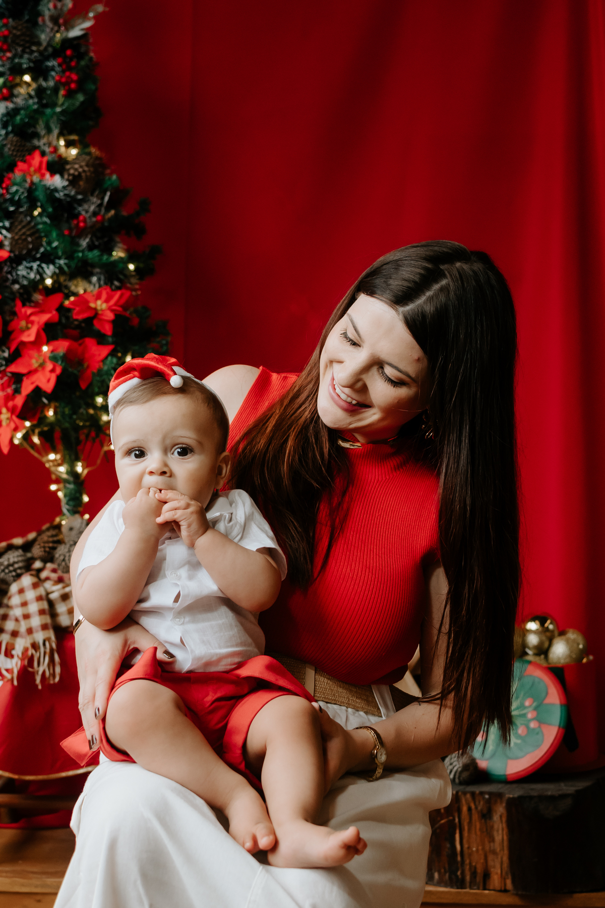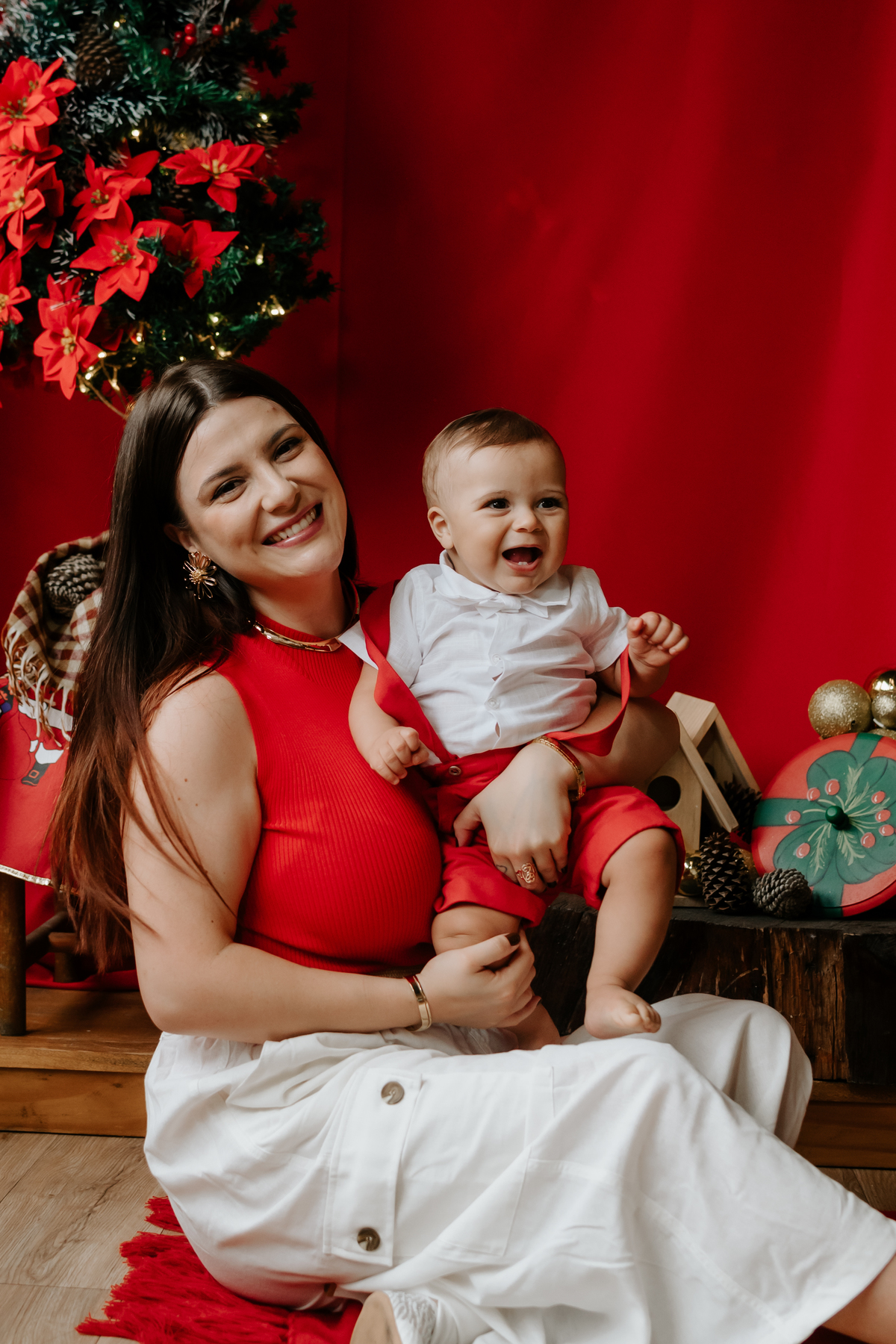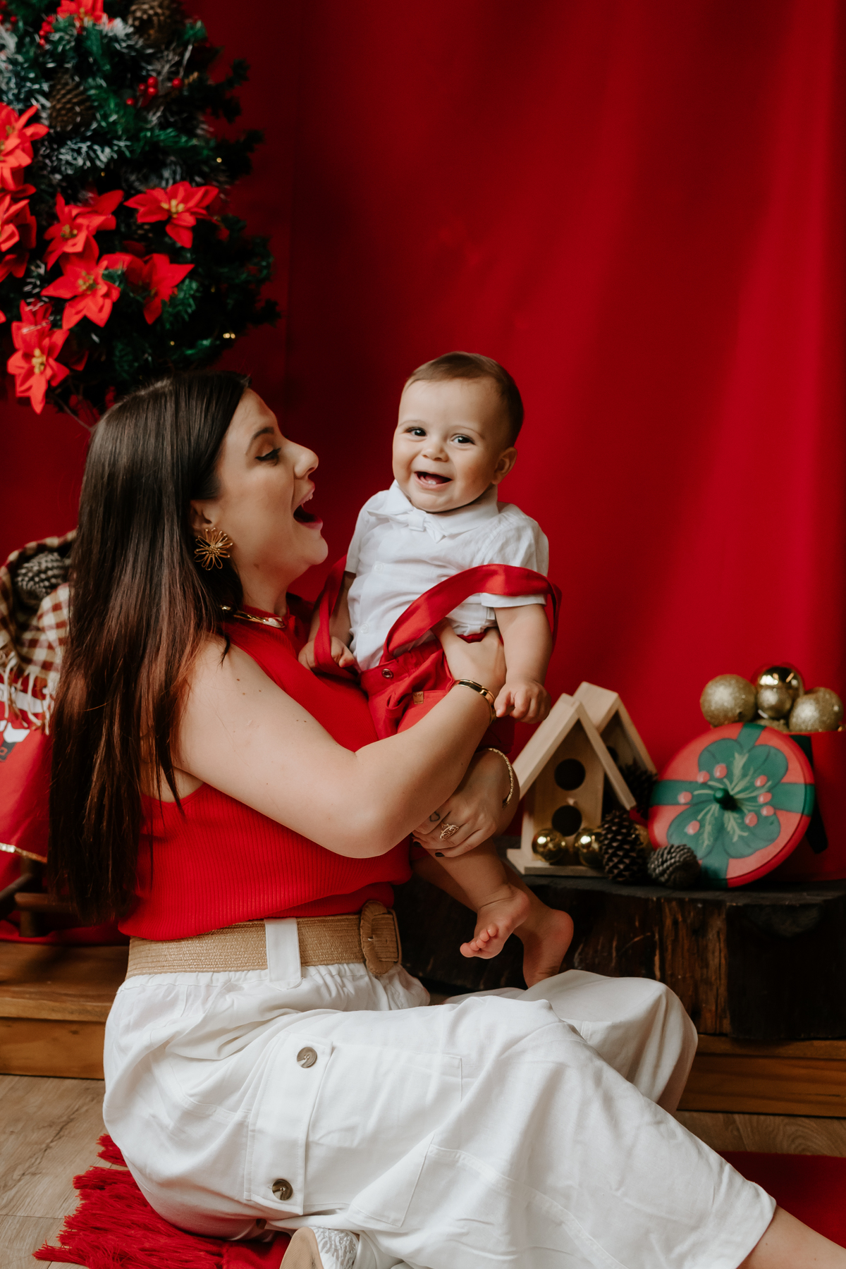 Durante o ensaio, Romeu e sua mãe compartilharam instantes de pura conexão, em um ambiente acolhedor e repleto da magia do Natal. Cada sorriso, cada toque e cada olhar traduziram a essência dessa relação única, criando memórias que irão durar para sempre.