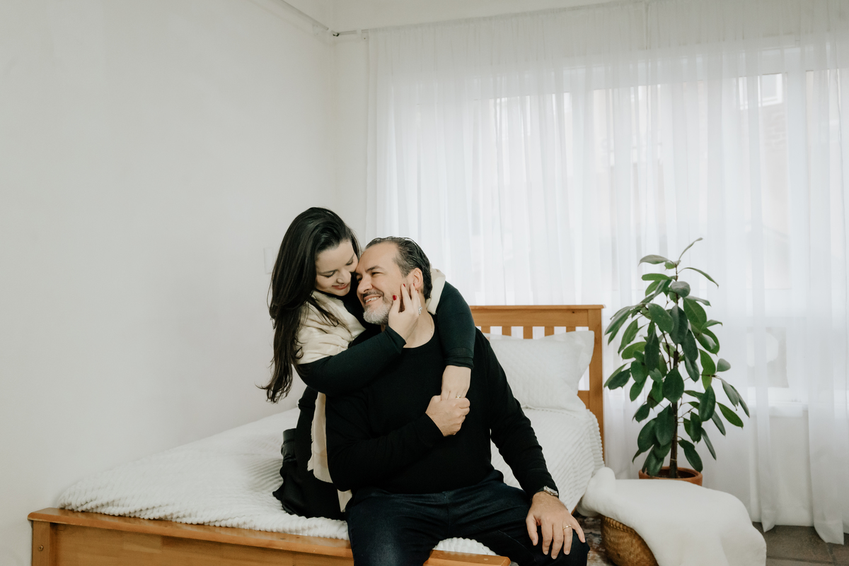 O plano inicial era fazer as fotos ao ar livre, mas o clima da Serra Gaúcha decidiu brincar com a gente. E, sinceramente, não poderia ter dado mais certo. O ensaio aconteceu no meu novo estúdio em Gramado, que trouxe um toque intimista e acolhedor às imagens. Entre olhares apaixonados, risadas e abraços apertados, conseguimos retratar exatamente o que esse primeiro ano significou para eles: amor, cumplicidade e parceria.