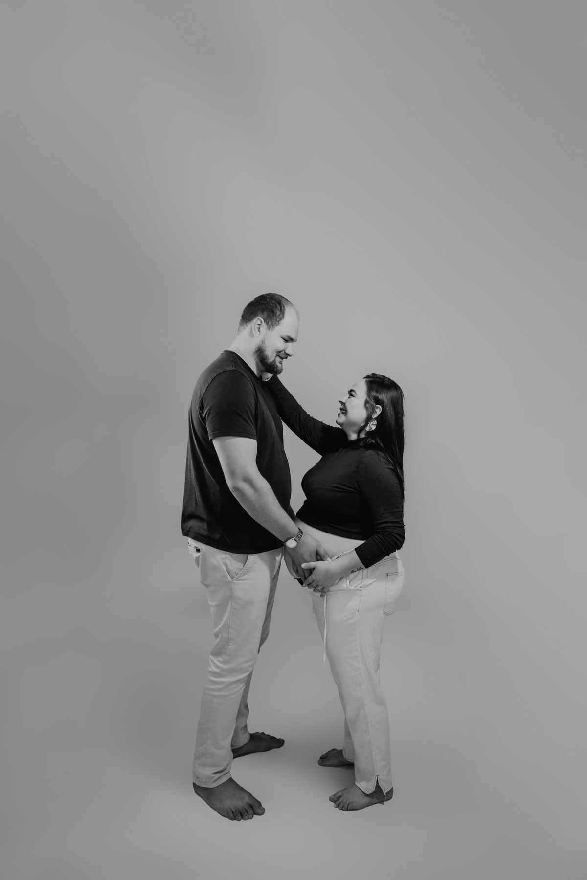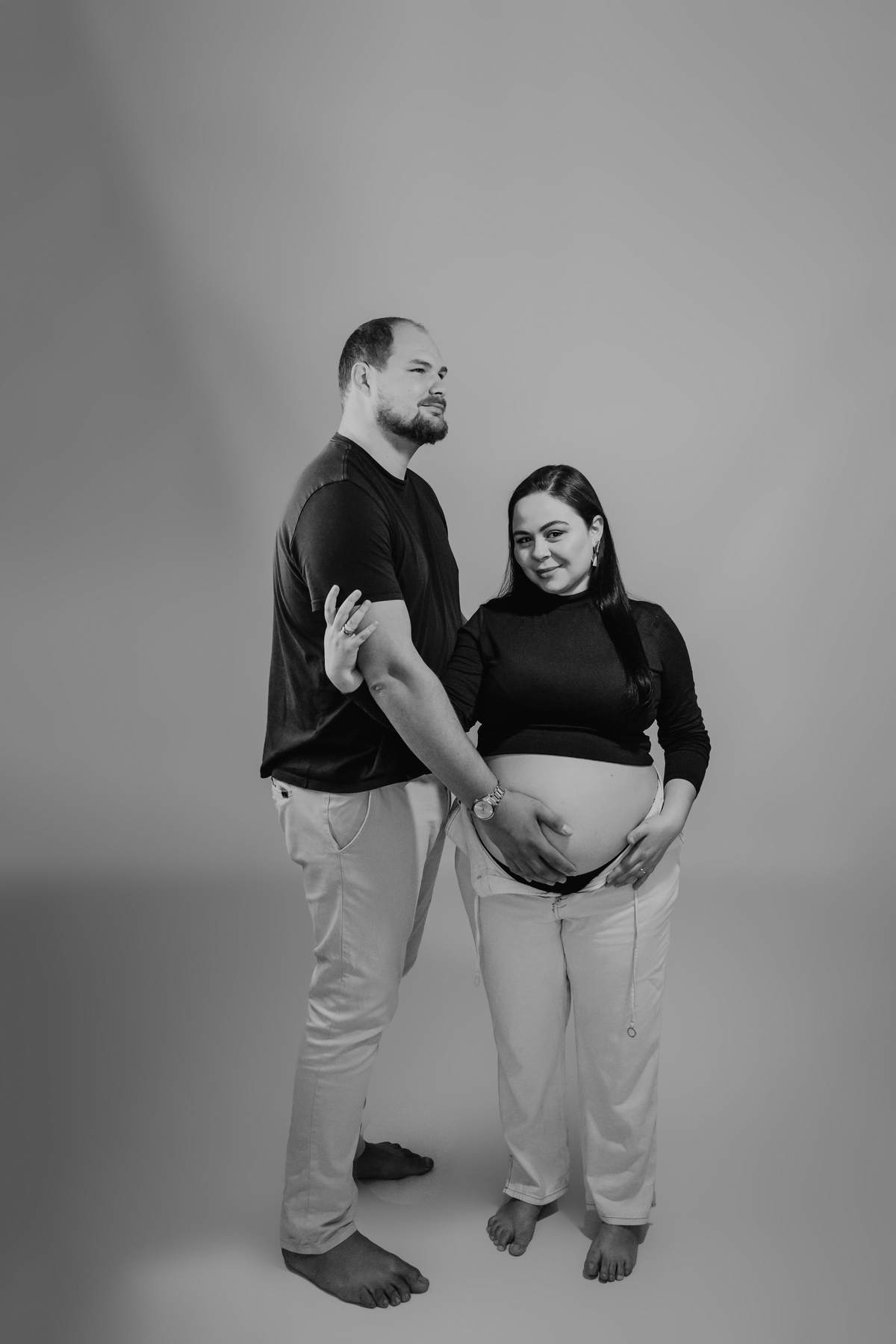 Cada ensaio de gestante carrega uma história única, e o da Emily e do Eric foi ainda mais especial. Realizamos as fotos no meu estúdio em Gramado, inaugurando o novo fundo infinito que criei com uma lona – um toque minimalista que deixou o resultado ainda mais atemporal e elegante.