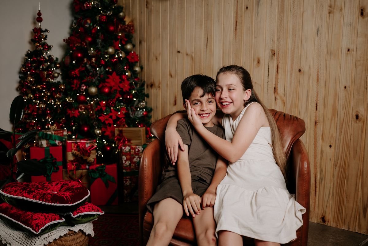 Algumas crianças não passam pelo meu estúdio apenas uma vez. A Alice e o Bento são irmãos que eu fotografo há alguns anos, e vê-los voltar para mais um capítulo da própria história — agora no especial Natal com Afeto — é uma das partes mais bonitas do meu trabalho. Porque quando existe vínculo, a fotografia muda. No dia do ensaio, a Alice e o Bento não chegaram tímidos. Brincaram, riram, se jogaram no colo um do outro e viveram o Natal do jeito que crianças vivem: com espontaneidade, presença e afeto real. E é nesse espaço de confiança que as imagens mais verdadeiras acontecem. O especial Natal com Afeto foi criado para famílias que querem mais do que uma foto bonita. Quando uma família retorna ano após ano, como a da Alice e do Bento, o ensaio deixa de ser um evento isolado e vira parte da história da infância deles. E isso é algo que não se compra. As crianças mudam rápido. Fotografar o Natal em estúdio permite criar uma linha do tempo emocional, onde cada ano revela um novo capítulo. Daqui a algum tempo, essas fotos vão contar muito mais do que como eles eram. Se você está em Gramado, Canela ou na Serra Gaúcha e quer um ensaio de Natal em estúdio que valoriza vínculo, espontaneidade e história, eu vou amar te receber. Me chame no WhatsApp e vamos guardar juntos mais um capítulo da sua família.