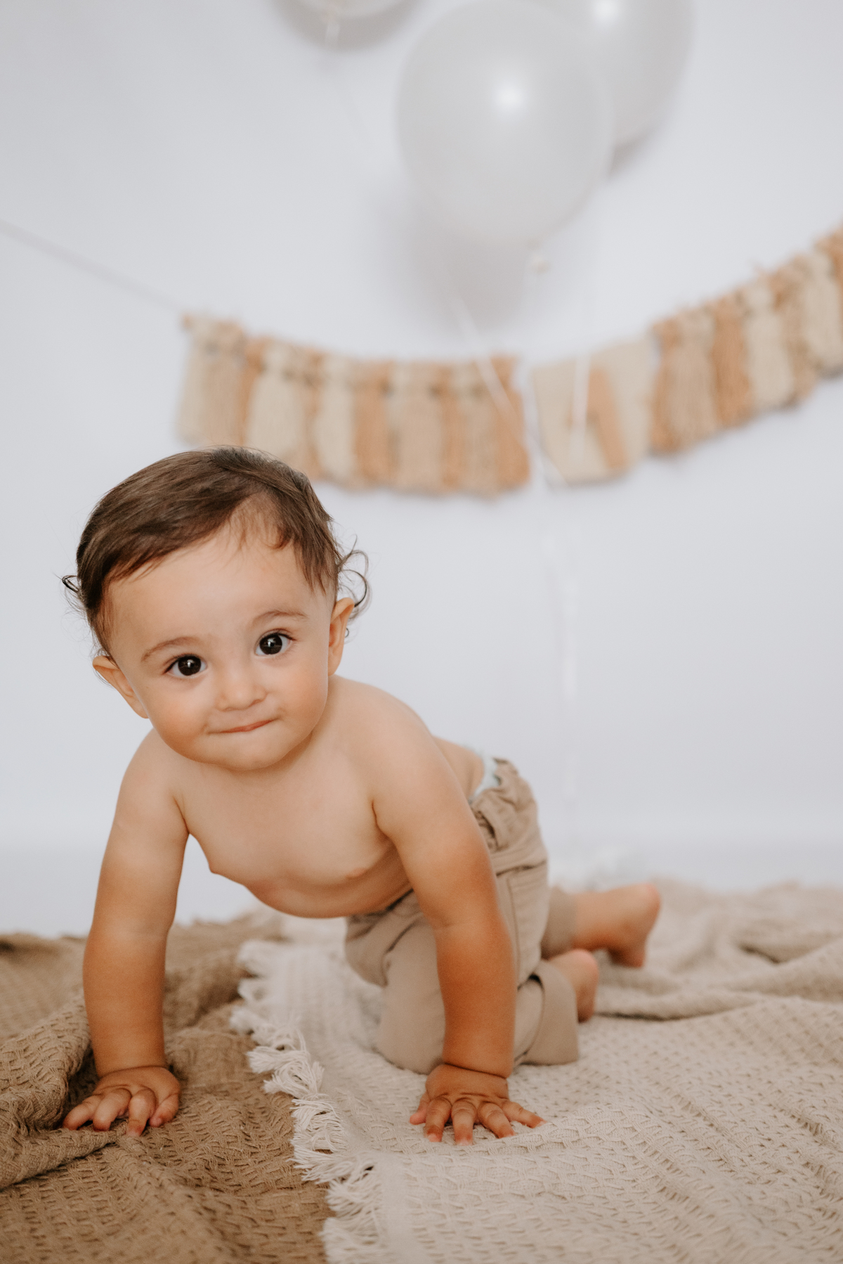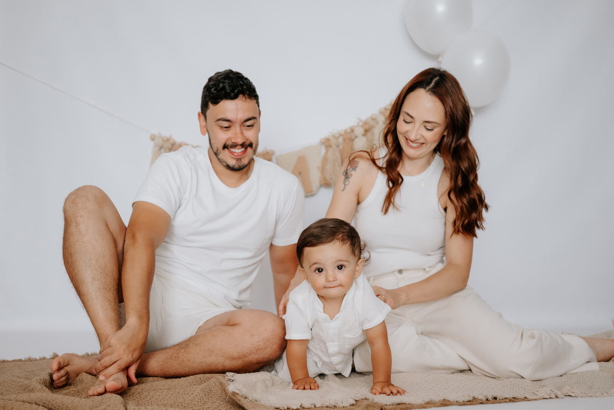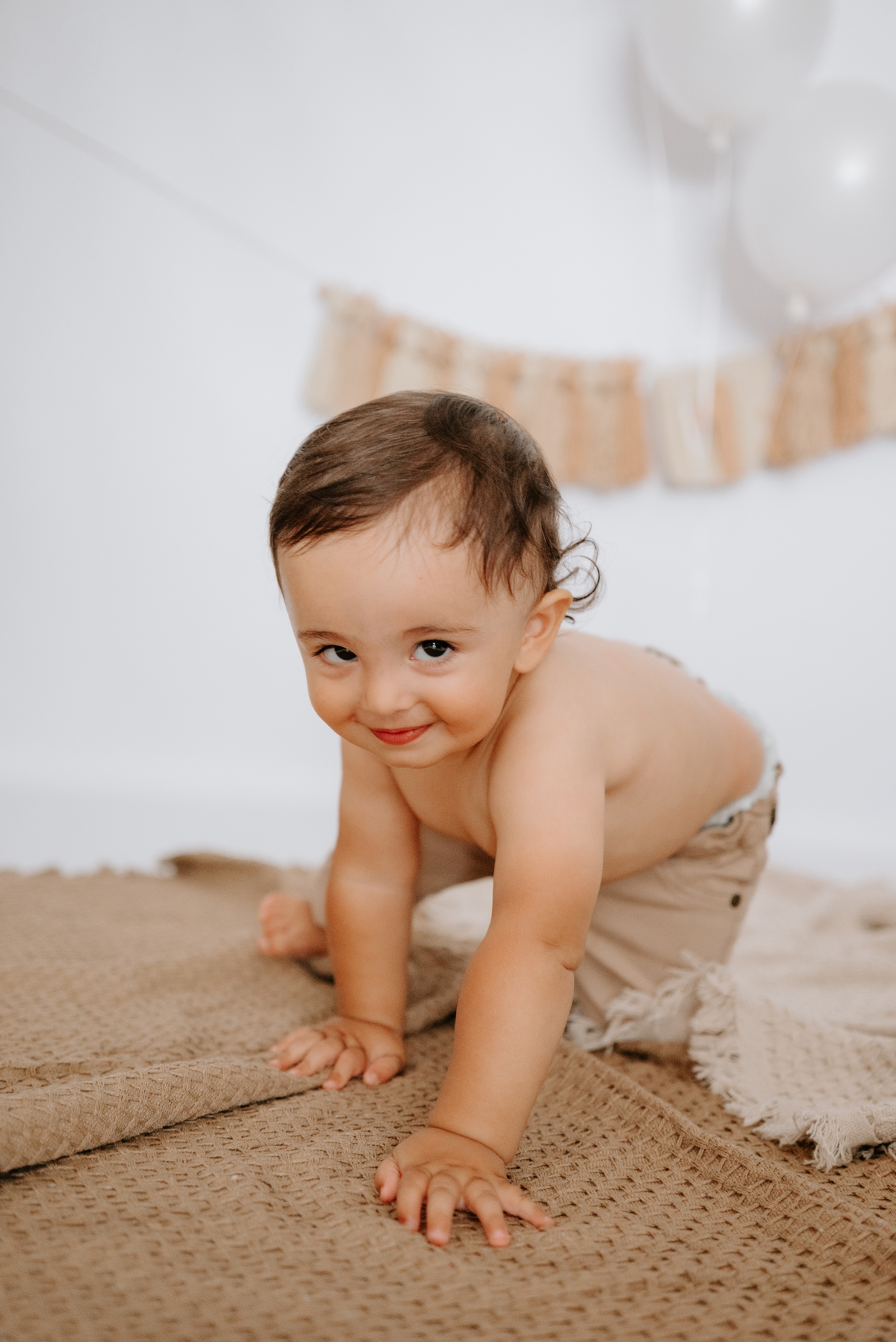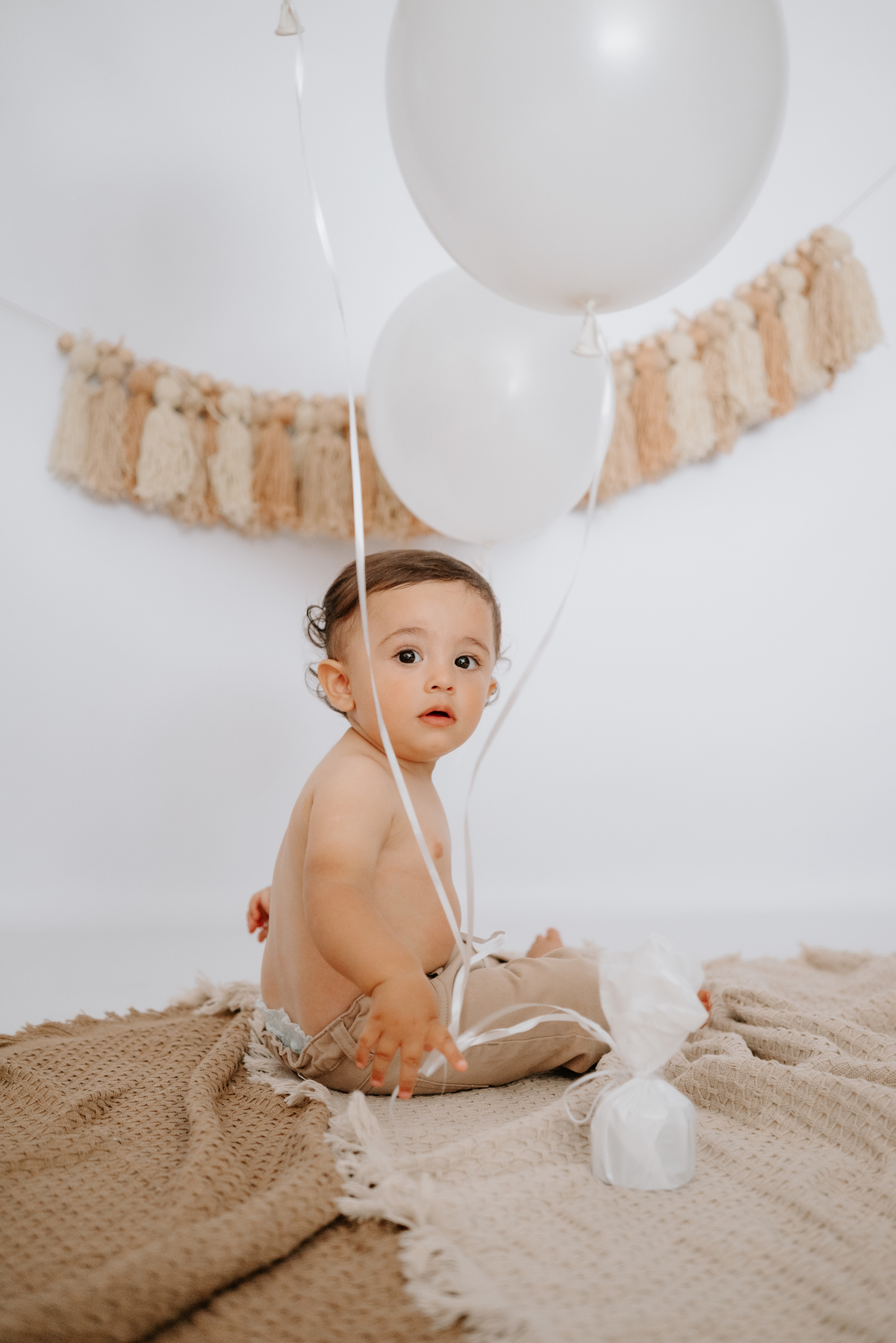 O Luca veio ao meu estúdio acompanhado dos pais, Valeska e Leonardo, para viver essa experiência antes do seu primeiro aniversário. Um ensaio minimalista, sem excessos, onde o protagonista era apenas ele.