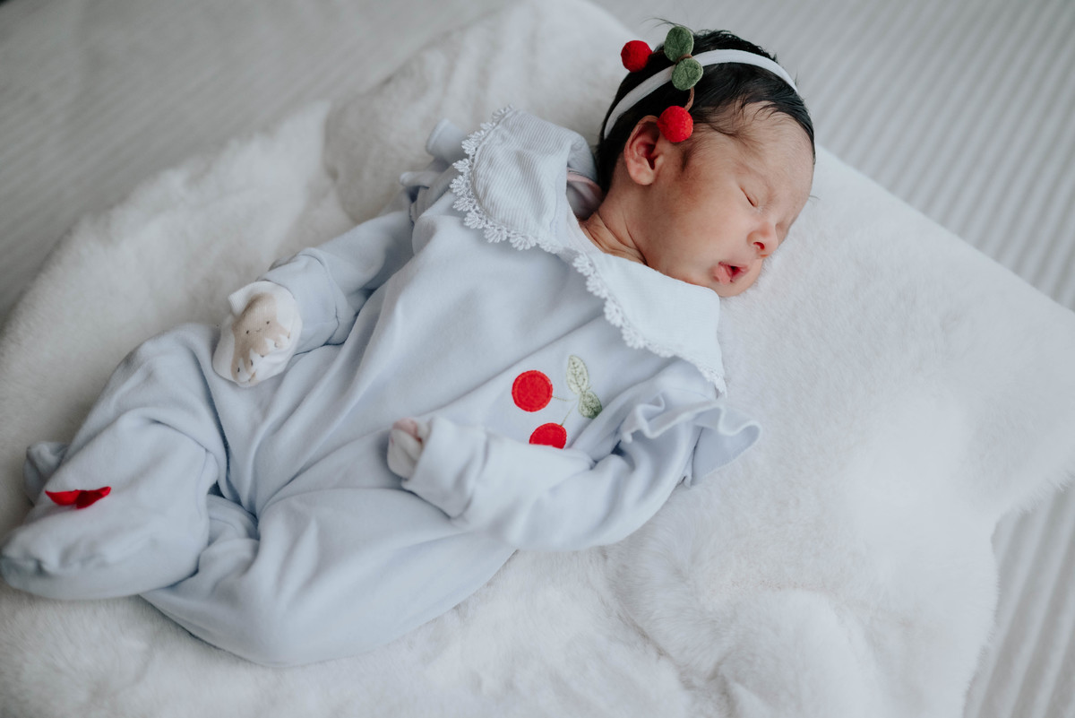Muitas famílias pensam apenas no newborn, mas o ensaio de 1 mês tem um charme único — principalmente para bebês que nasceram antes do tempo.