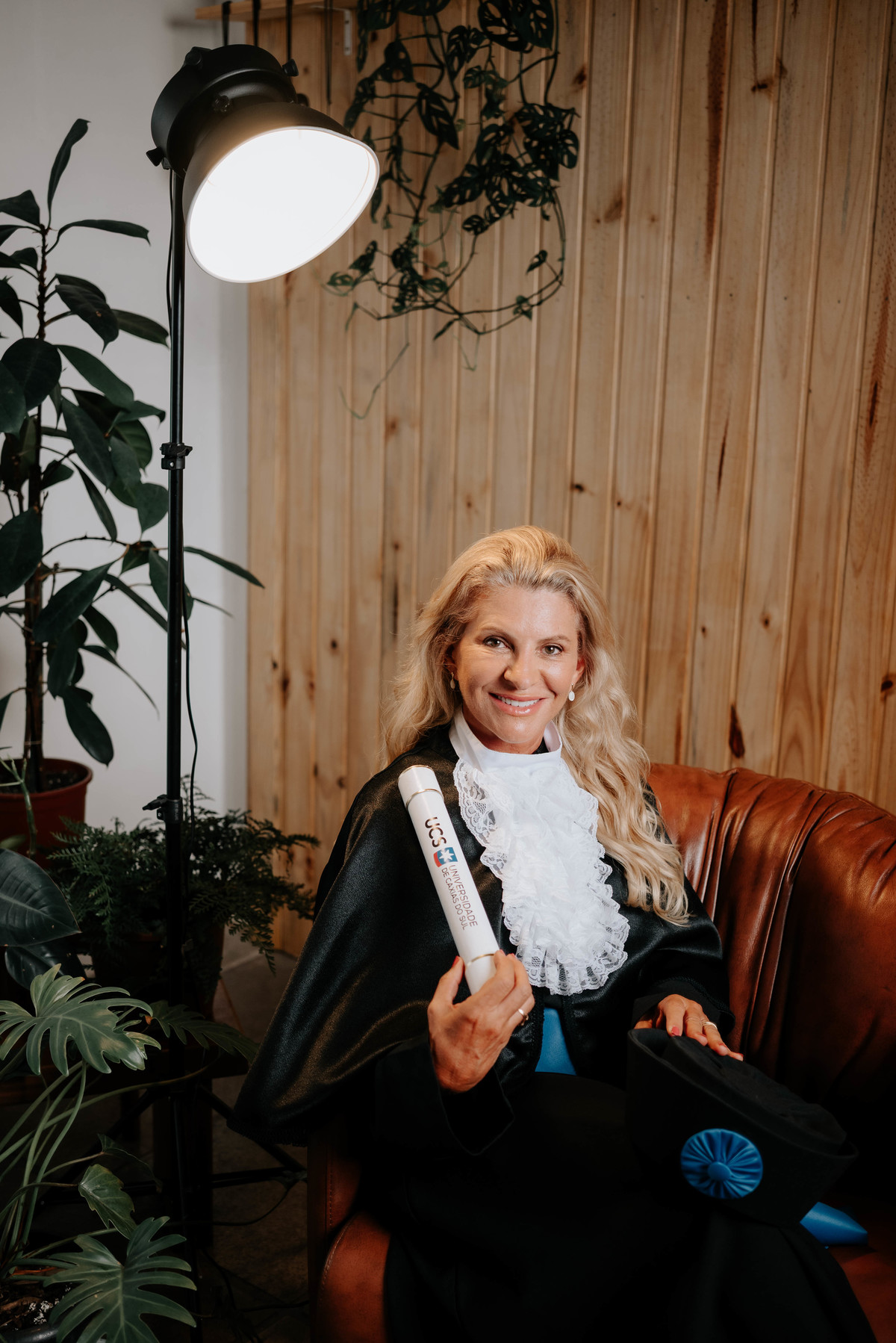 Denise está se formando em Design de Interiores pela UCS, depois de anos de dedicação, estudos e muita criatividade colocada em cada projeto ao longo da graduação. Para celebrar essa conquista, ela quis um ensaio especial, que registrasse esse momento tão significativo da sua trajetória.