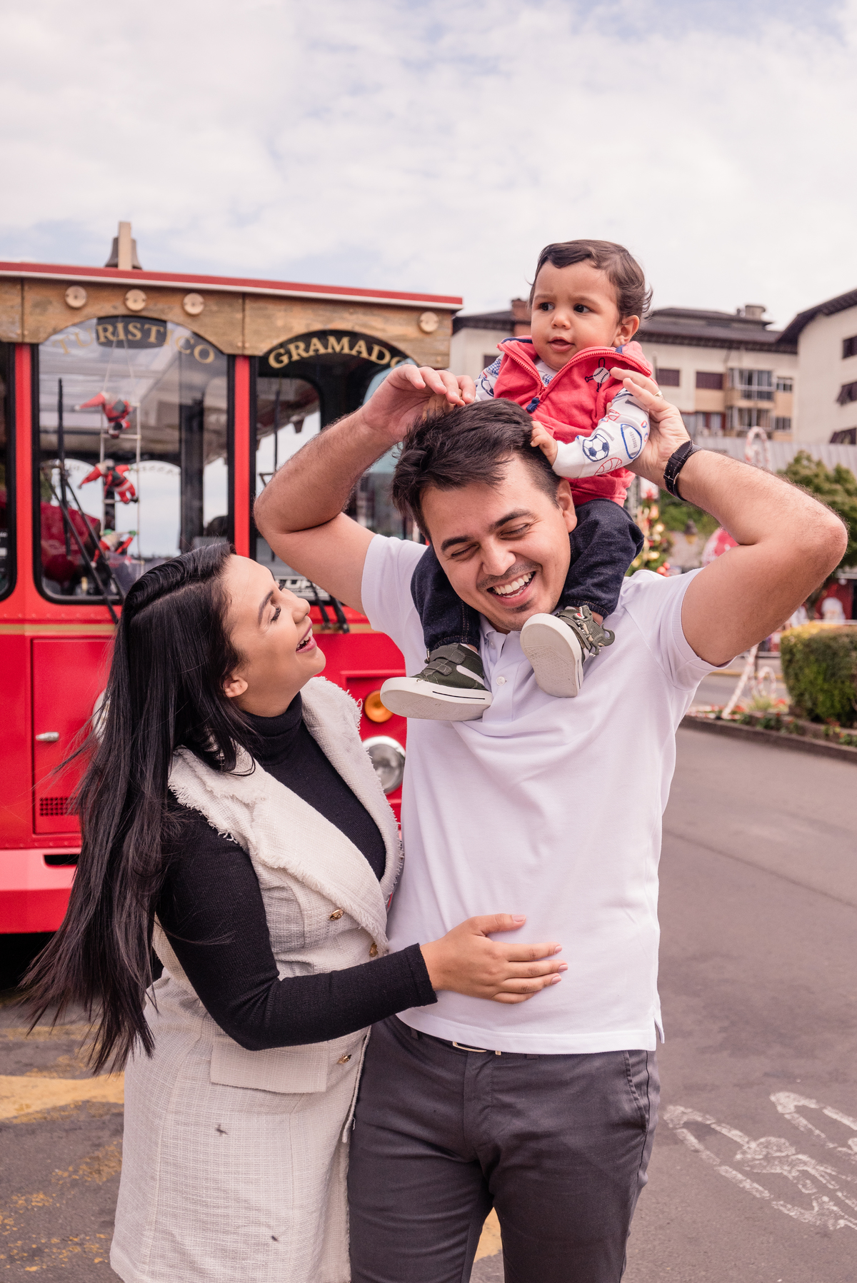 Casal nordestino apaixonado por Gramado, segunda vez que escolhem a cidade como destino mas dessa vez é ainda mais especial - a primeira vez do Benjamin por aqui. O pequeno está com pouco menos de um aninho, mas é super esperto e já imita muitos animais (nosso ensaio foi regado aos sons de leão, cachorro, gatinho e muito mais).