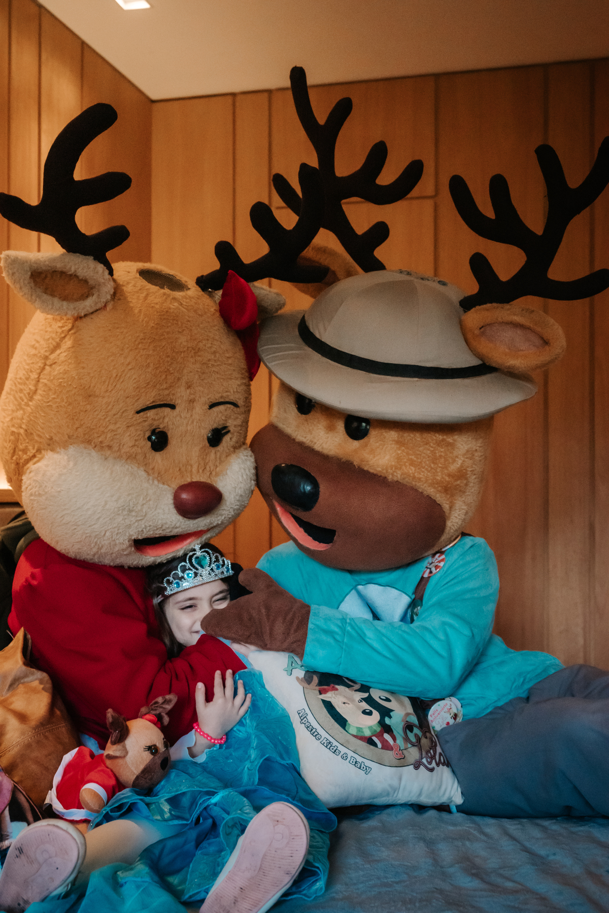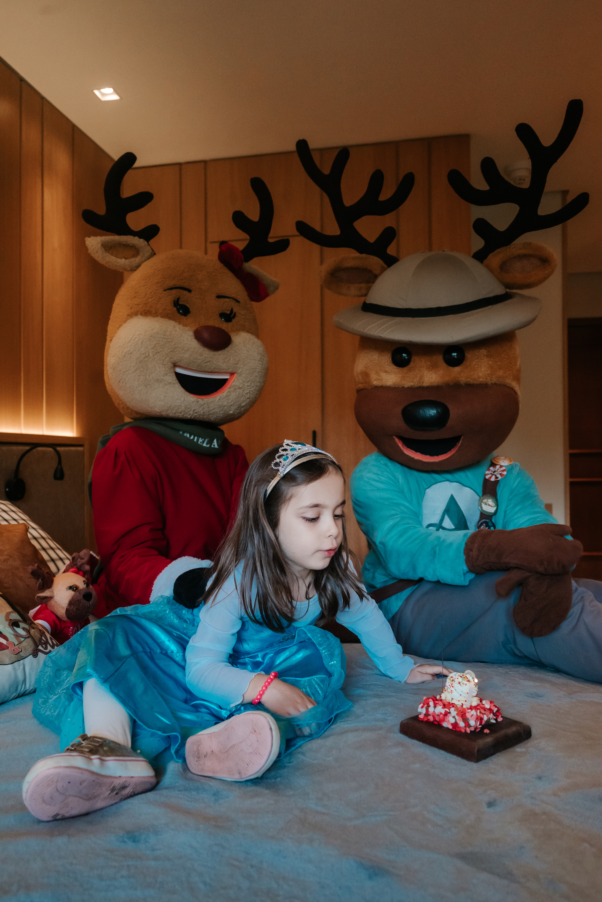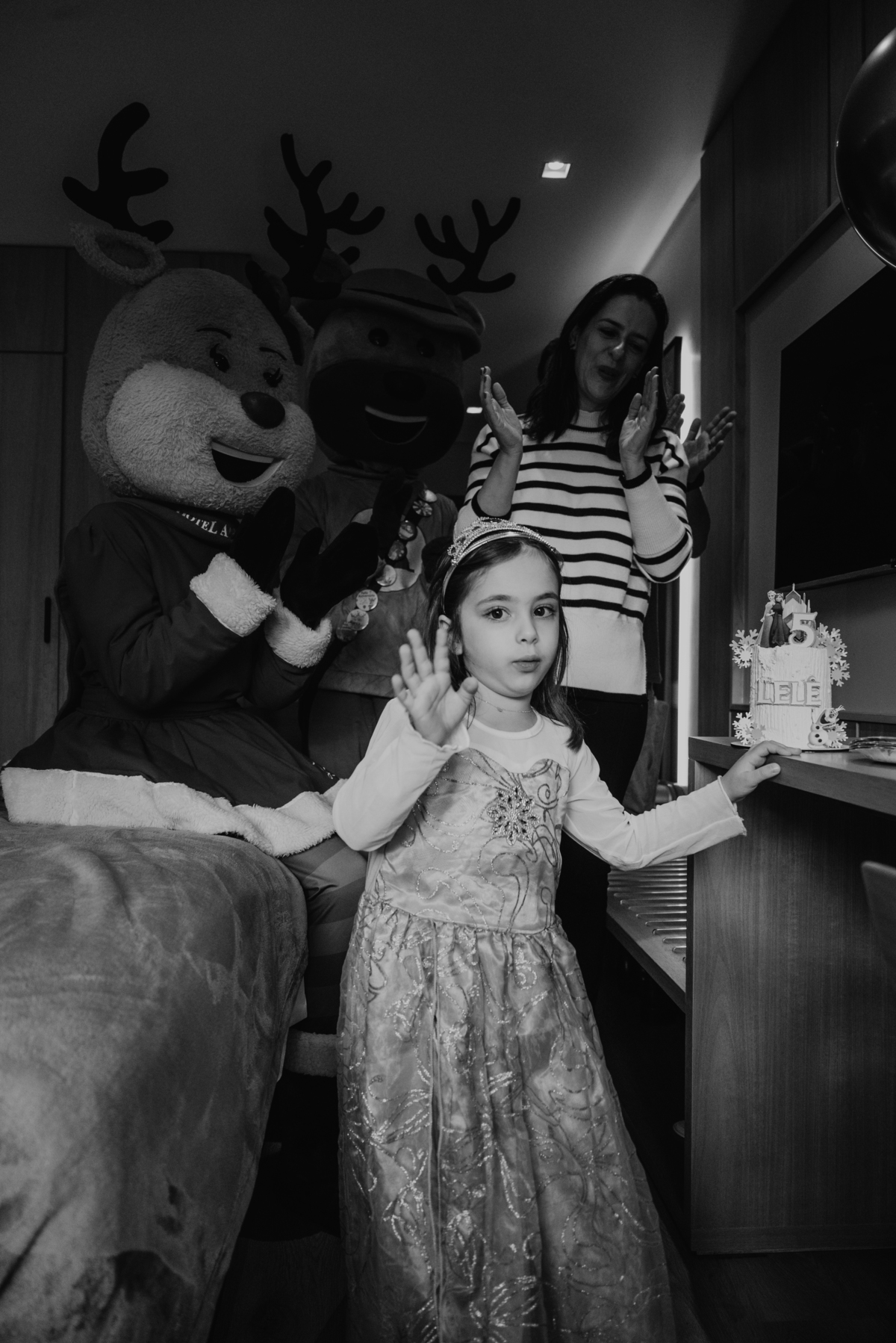 A Lelê, com seu sorriso contagiante, se divertiu ao lado dos adoráveis mascotes do hotel, o Alceu e a Lola. O cenário exuberante dos jardins do hotel e a atmosfera mágica proporcionaram o pano de fundo perfeito para registrar as doces lembranças desse dia especial.
