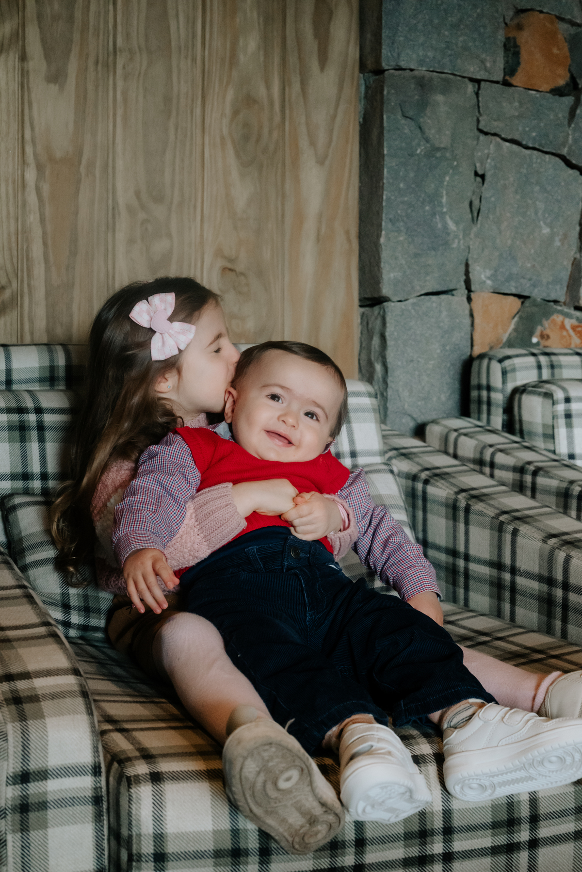Registrar o primeiro aninho do JV ao lado da irmãzinha Estela, dos seus pais e avós foi um momento cheio de alegria e emoção. O ensaio foi realizado no Hotel Alpestre, em Gramado, um lugar especial que reflete a essência da nossa Serra Gaúcha. Como fotógrafa nascida e criada aqui, conheço bem as belezas e encantos que a nossa região oferece, e faço questão de trazer essa conexão para cada clique. Esse vínculo com o local é o que permite que eu capture imagens que vão além da fotografia, transformando-as em verdadeiras memórias afetivas.