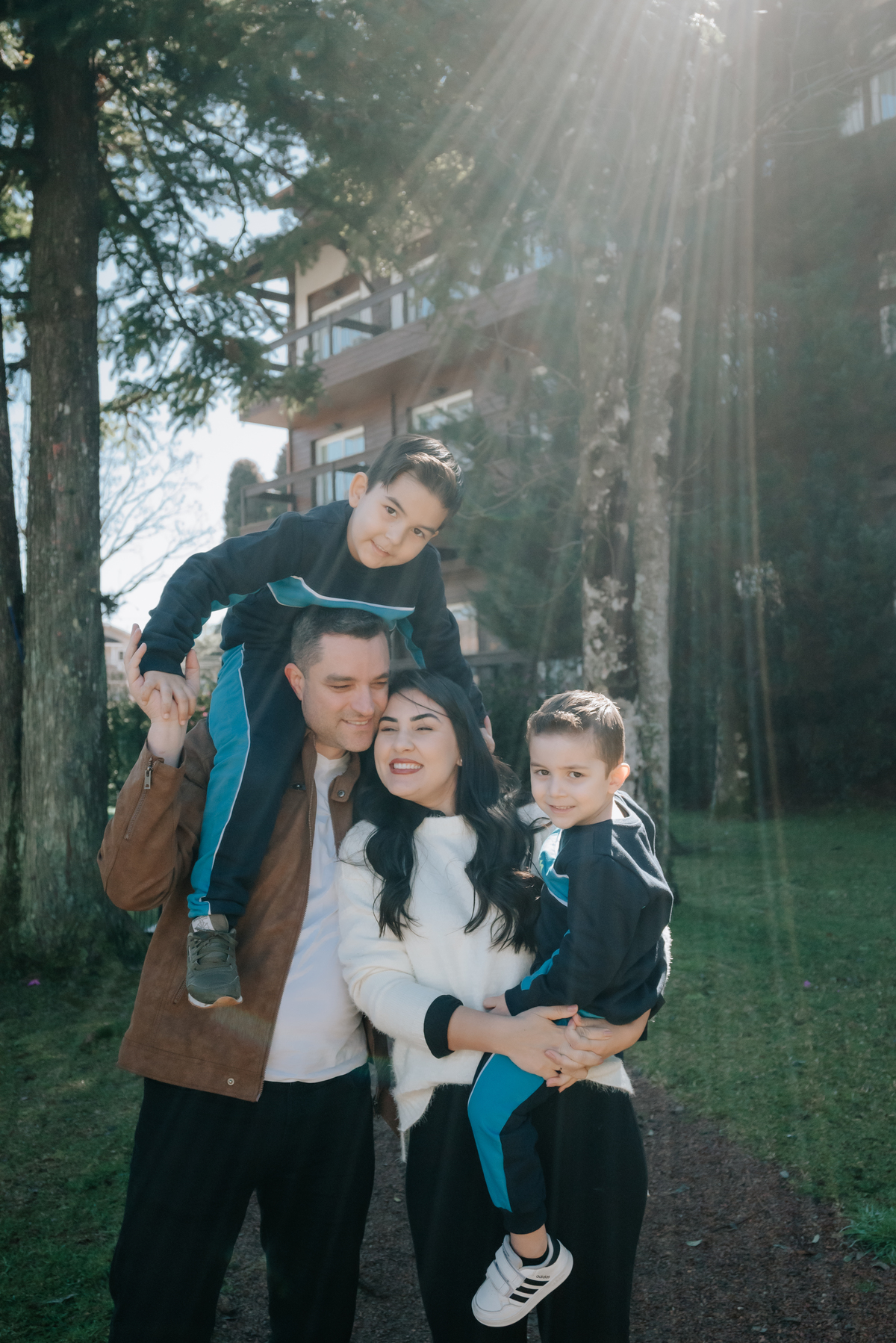 Registrar momentos únicos é a essência da fotografia, e o ensaio que fiz do Willy, da Naara e dos filhos Levi e Lucas foi exatamente isso: especial do começo ao fim. A família, que veio de São Paulo para a sua primeira vez em Gramado, escolheu viver dias inesquecíveis na Serra Gaúcha e não deixou de eternizar essas memórias com um ensaio fotográfico.