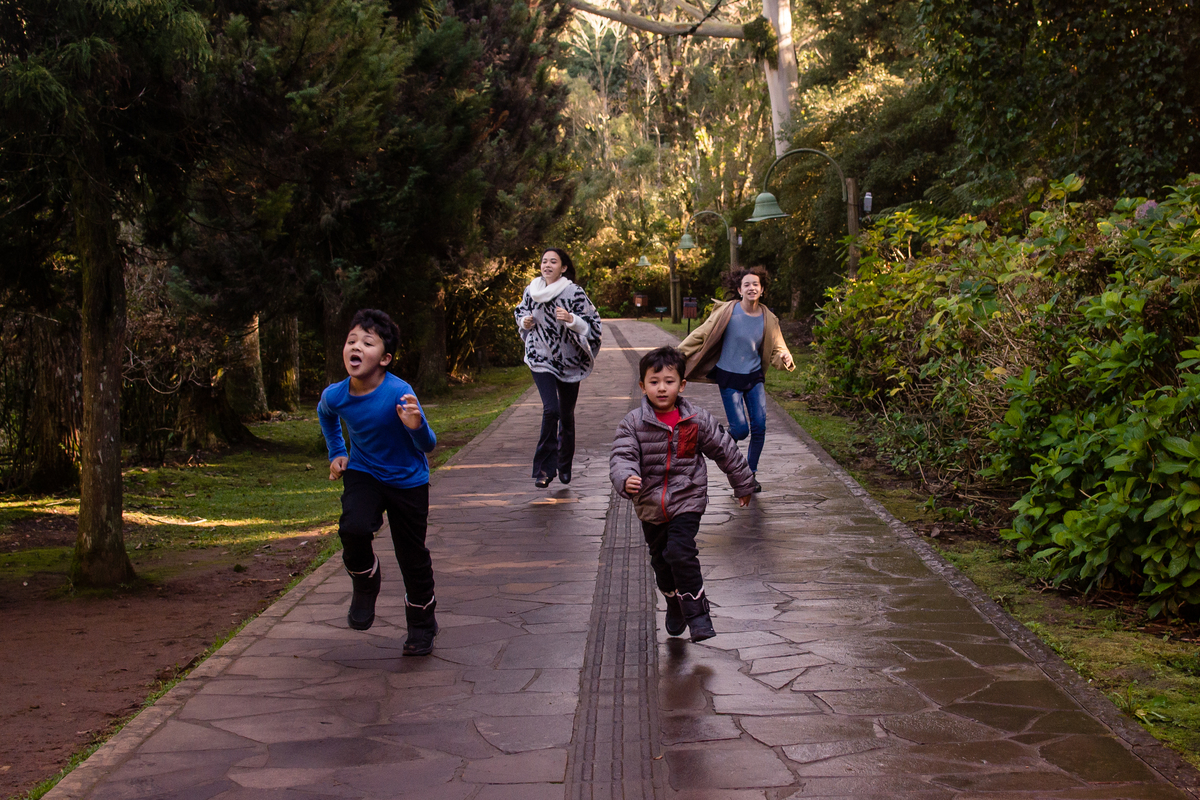 Nosso ponto escolhido foi o Lago Negro, principalmente para que as crianças tivessem mais espaço pra correr e se divertir - bem como deve ser um ensaio envolvendo os pequenos. Quando a bagunça foi permitida, cada clique se tornou ainda mais único.
